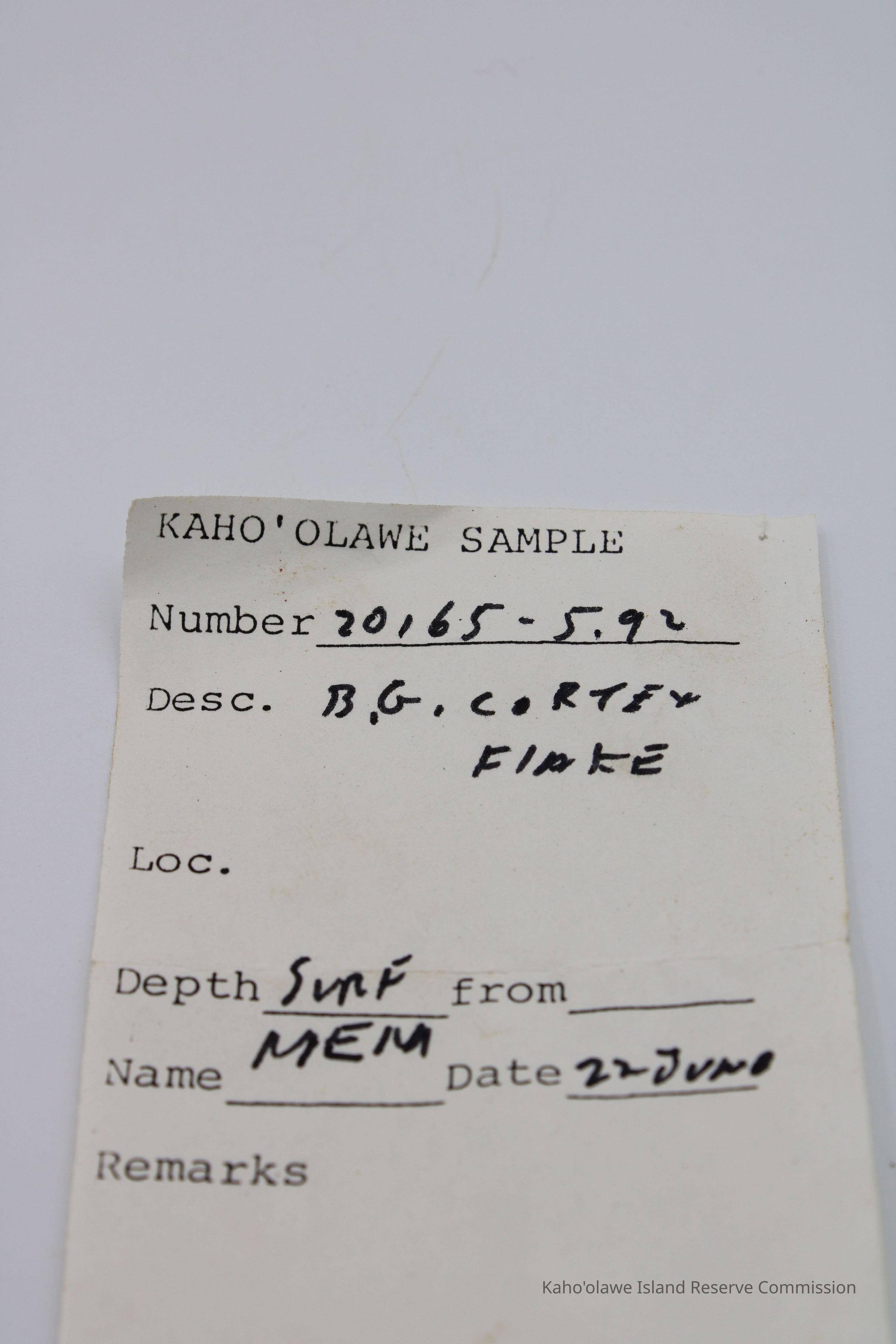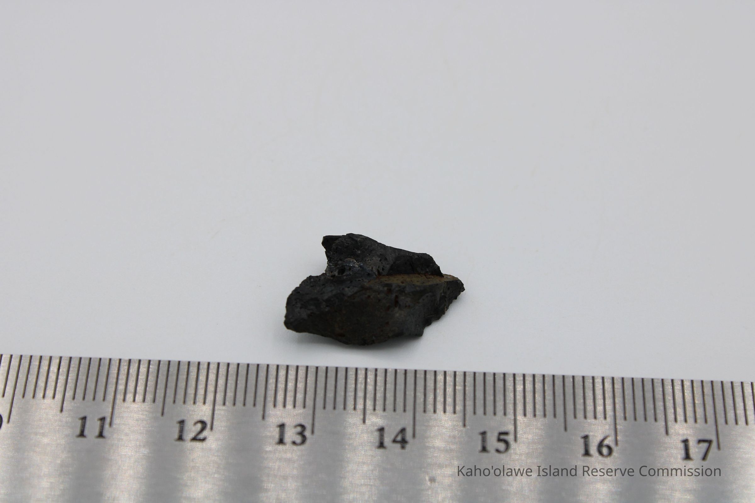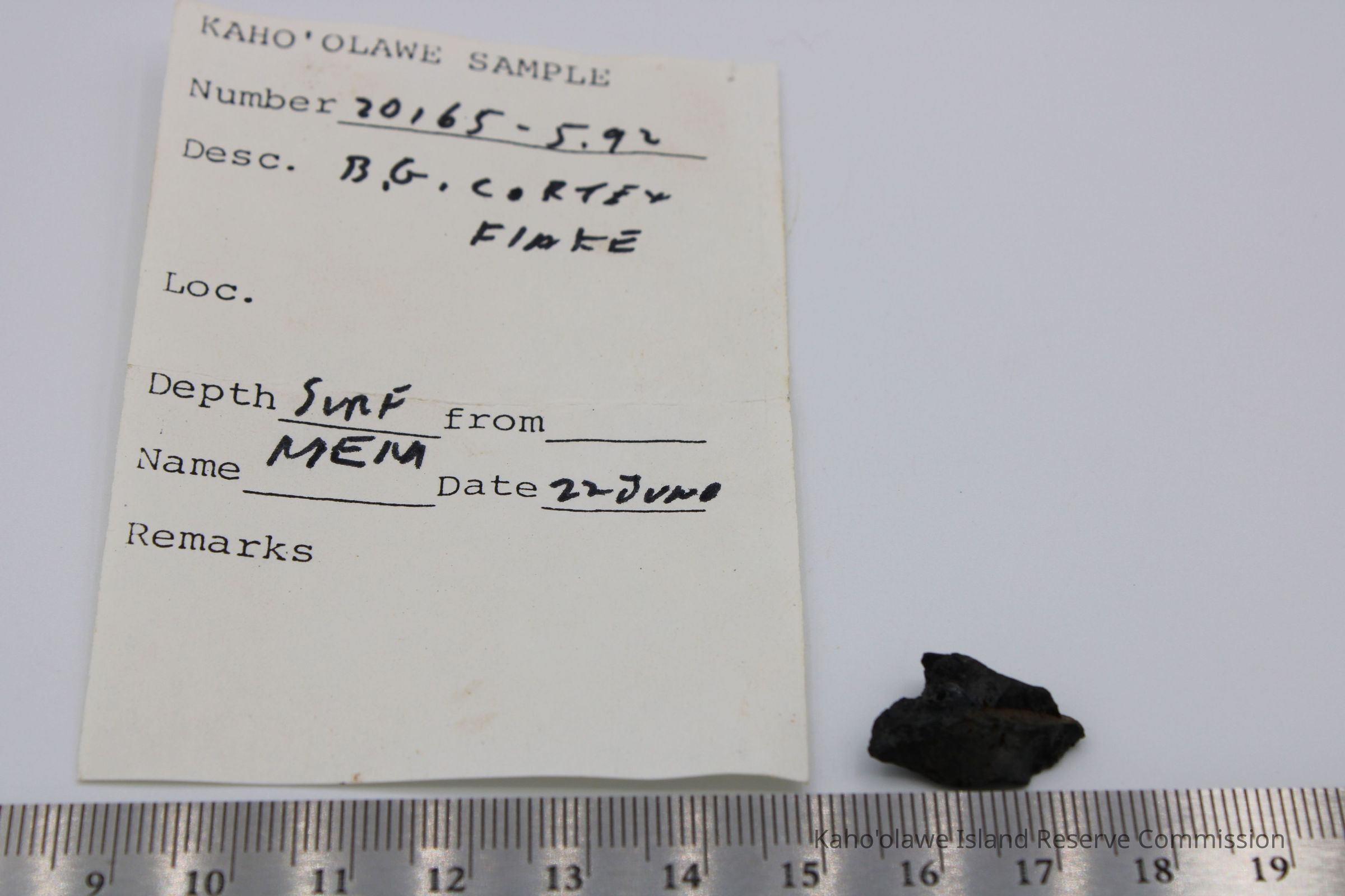 The image shows a sample form labeled "Kaho'olawe Sample" with details, alongside a small cortex flake and a ruler for scale.