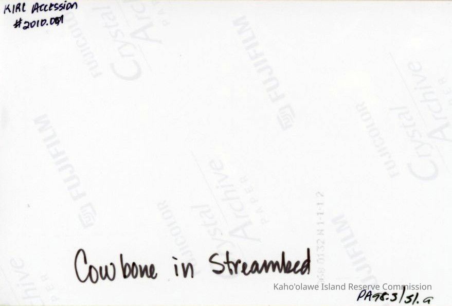 One cow bone in a dry streambed, probably in the Kuheia area.Collection