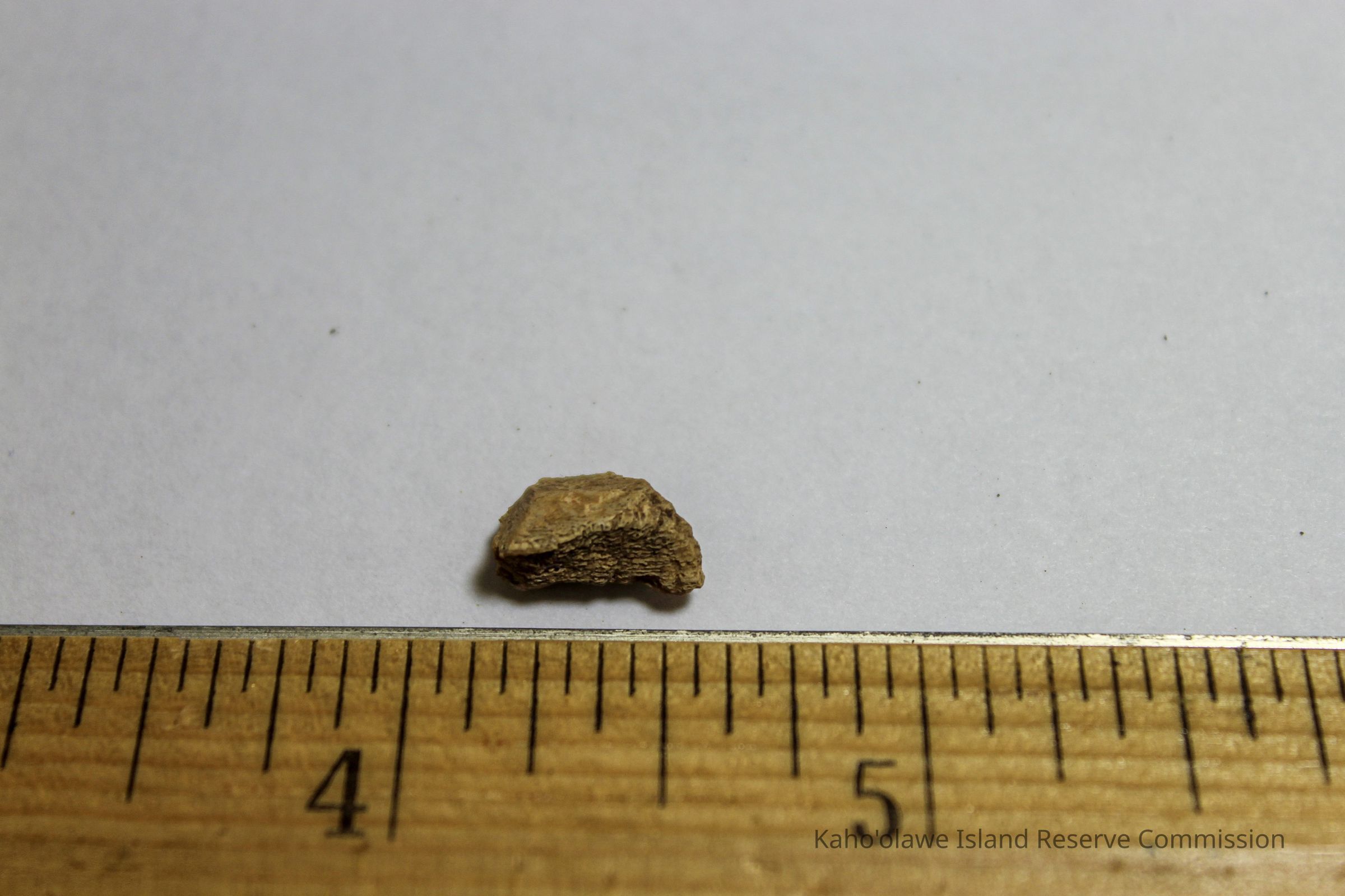 Very small piece of cut bone from a medium vertebrate with one beveled cut edge.Collection