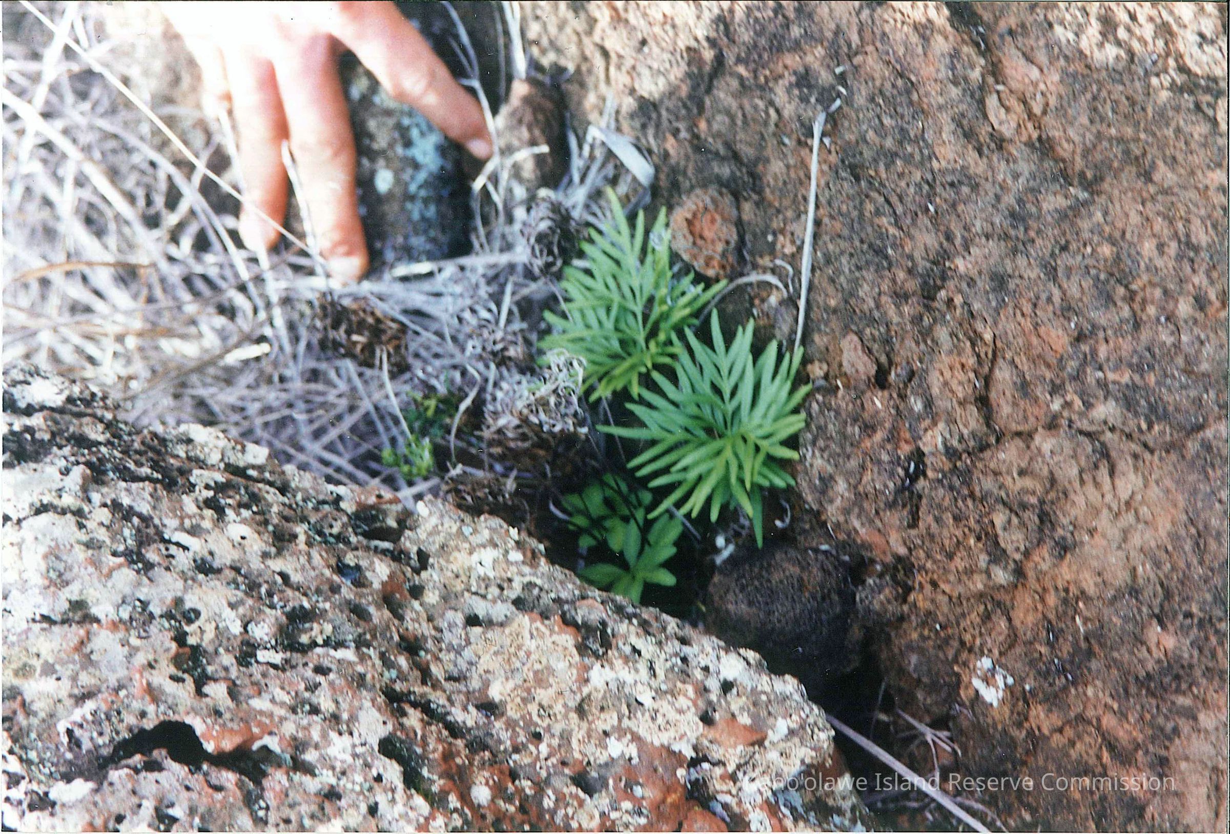 Color (somewhat blurry) photo of triangle leaf lipfern in between rocks in unidentified area.