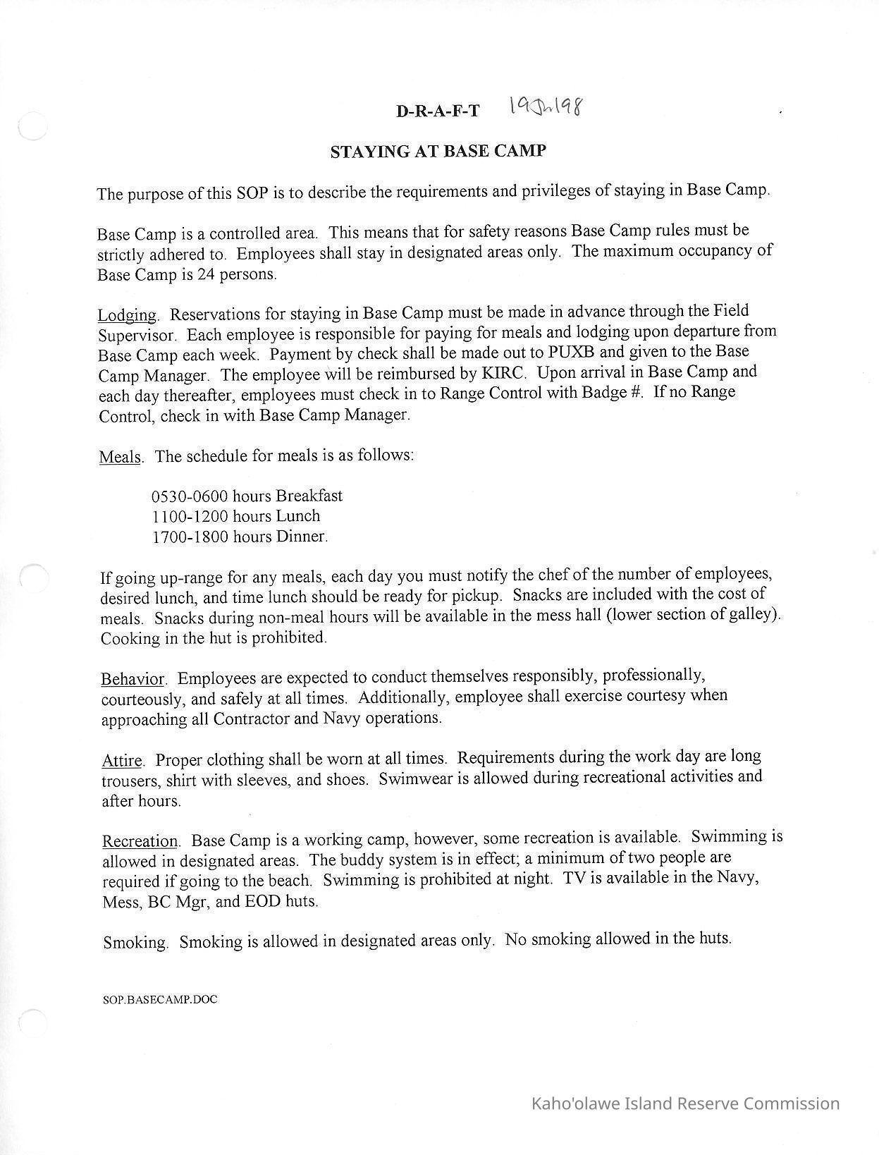 Master copy: \\KIRC-LIB-01\Library Database\Virtual Archive\SOPs\Master\BaseCamp_1998
