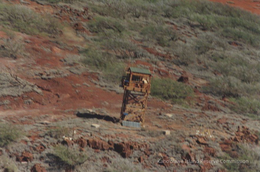 A blurry, aerial photo of Eagle Tower at LZ Eagle near Pu'ukahua in Kunaka/Naalapa 'Ili. There are two prints.Collection