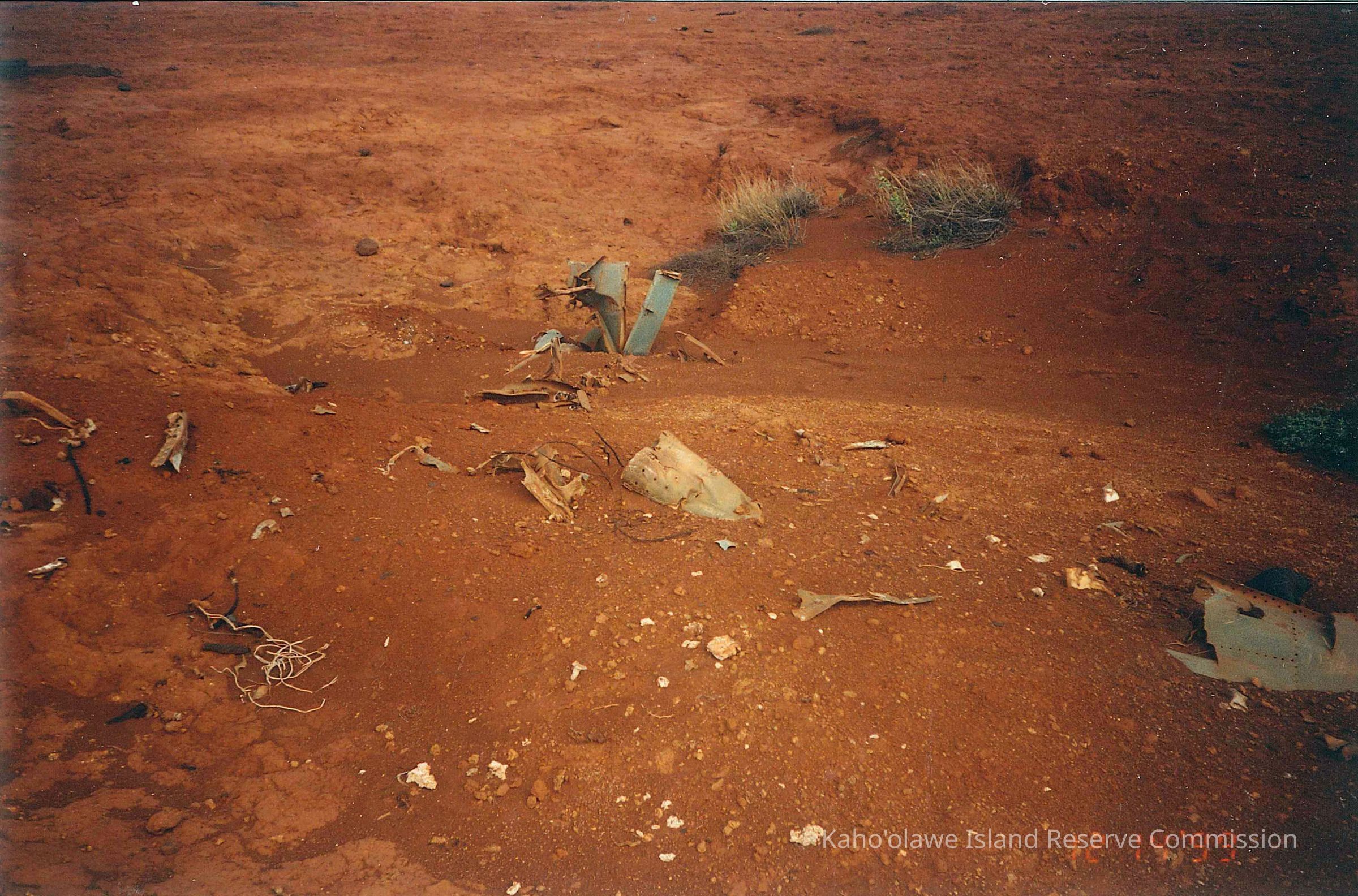 Color photo of explosed plane parts sticking out of the ground at a plane crash site near K-2.Photograph Details
