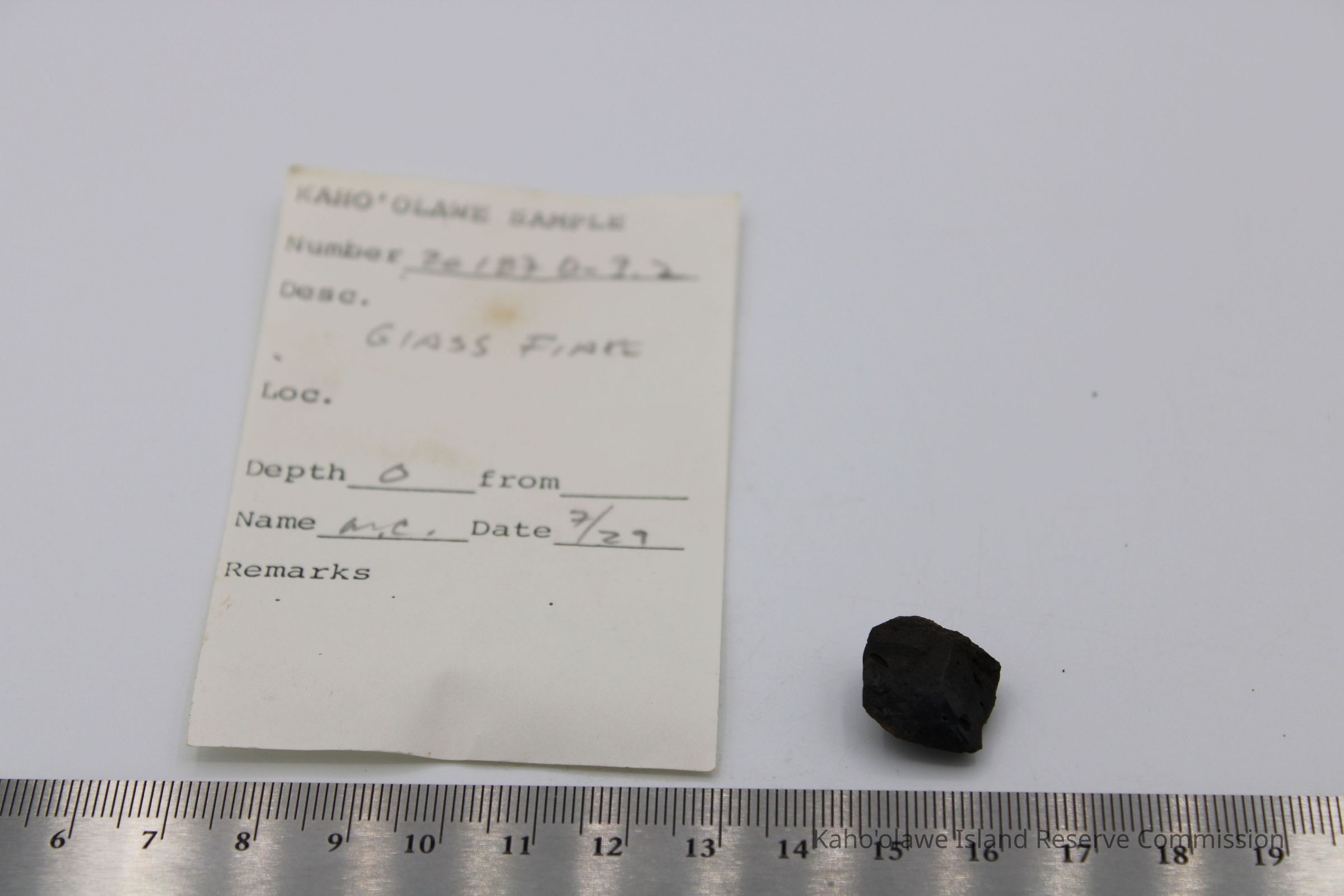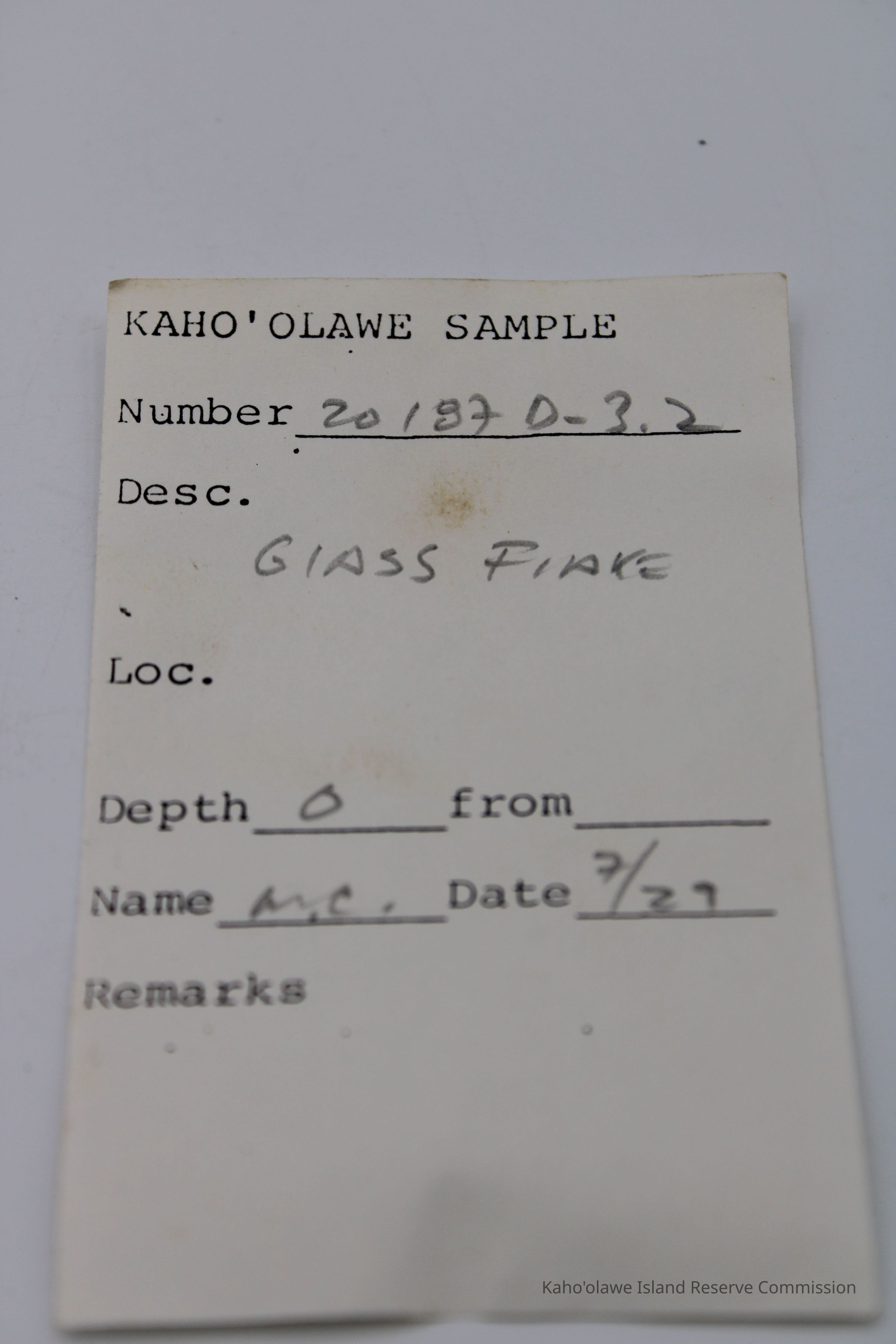 Small squarish glass flake; semi-glossy on one side and jagged edges.Collection