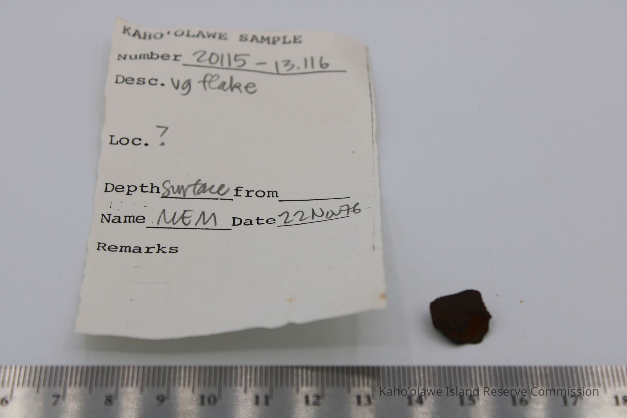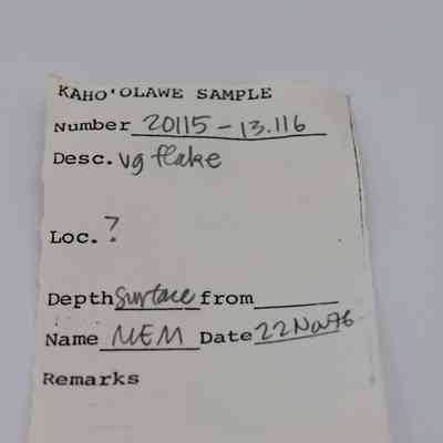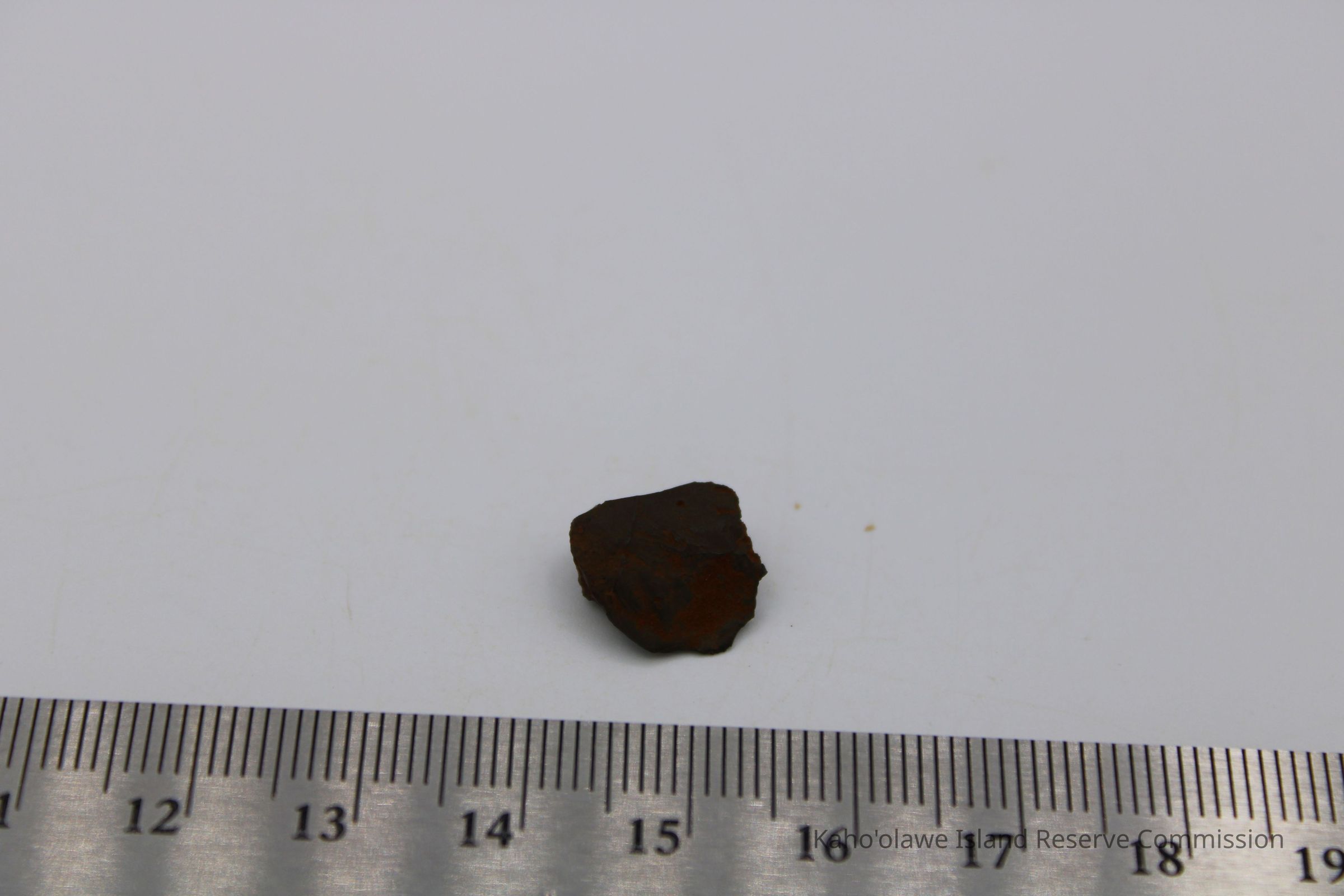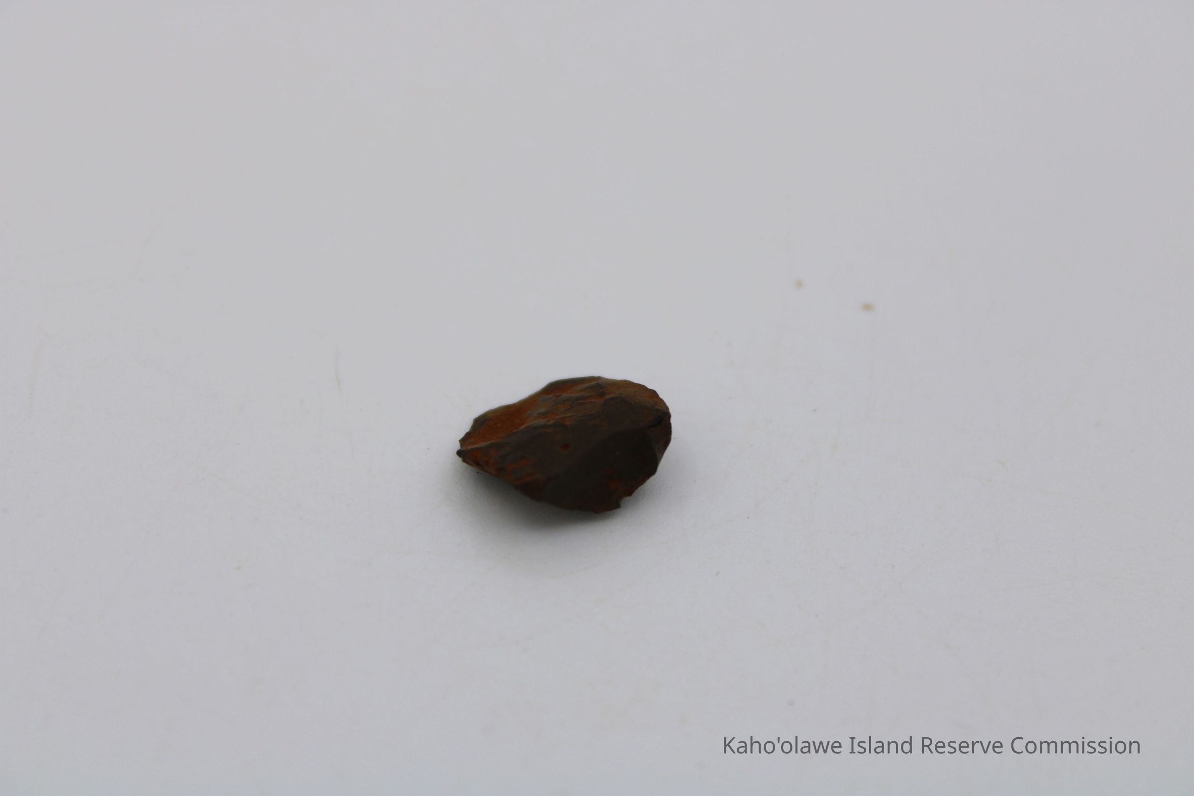 Small, roughly circular-shaped flake of volcanic glass.Collection