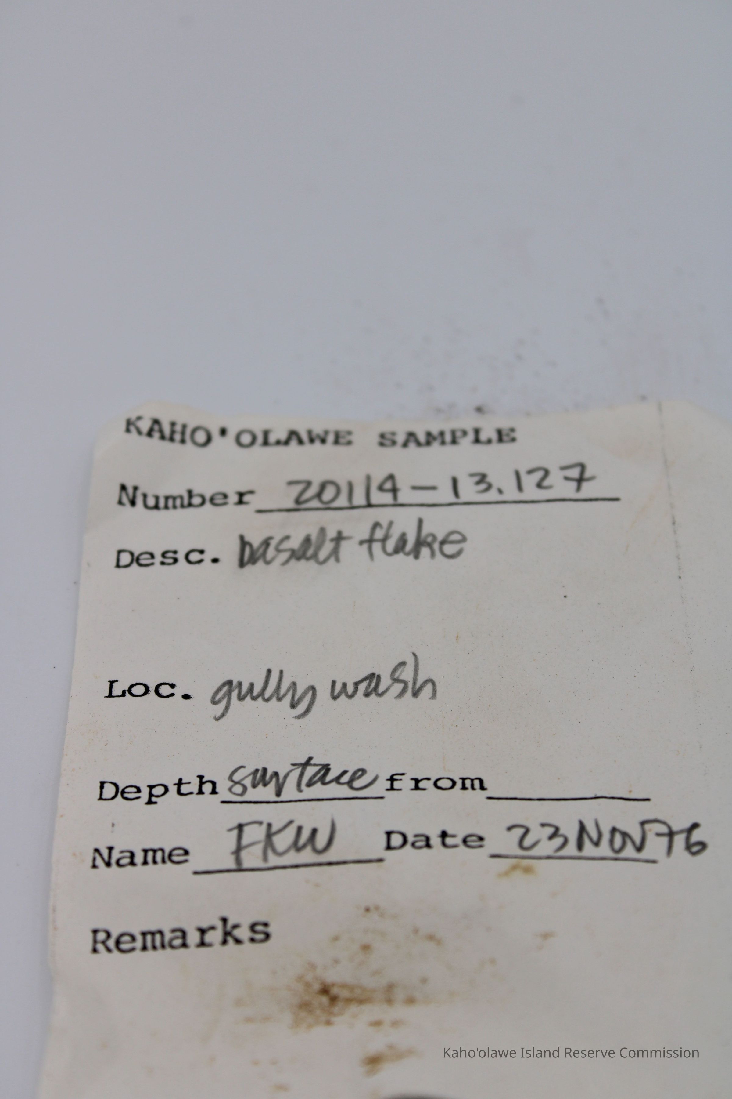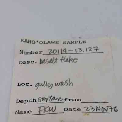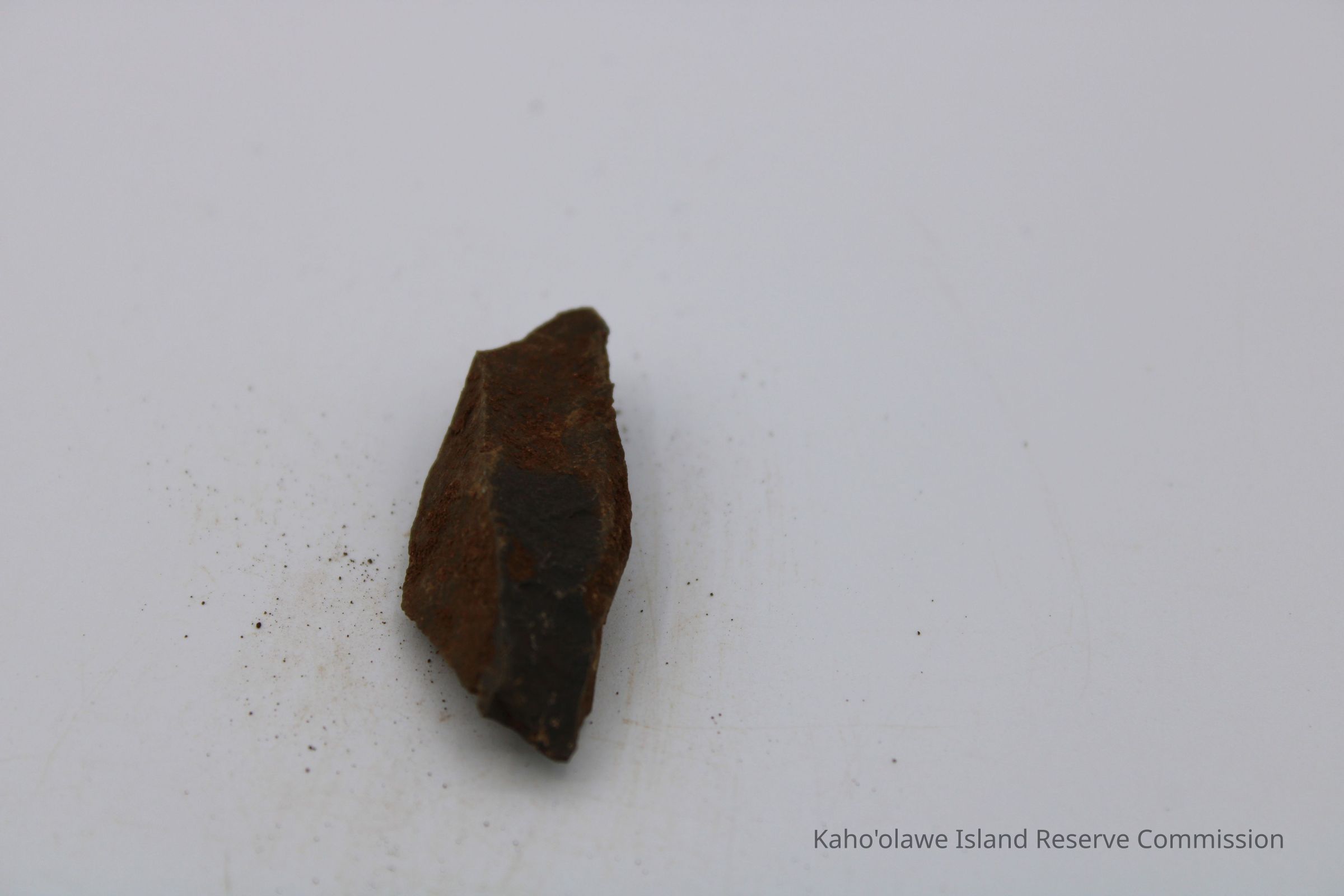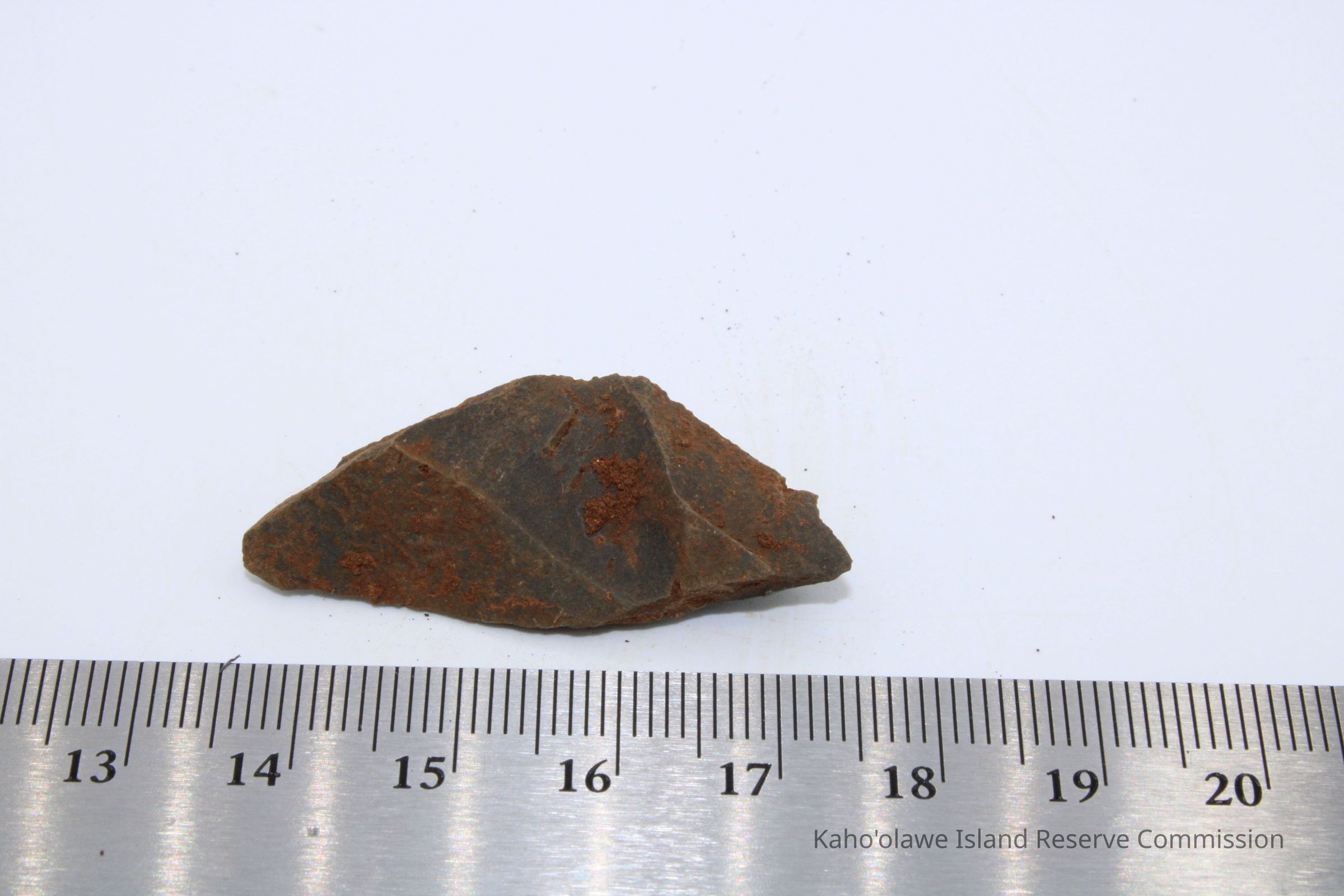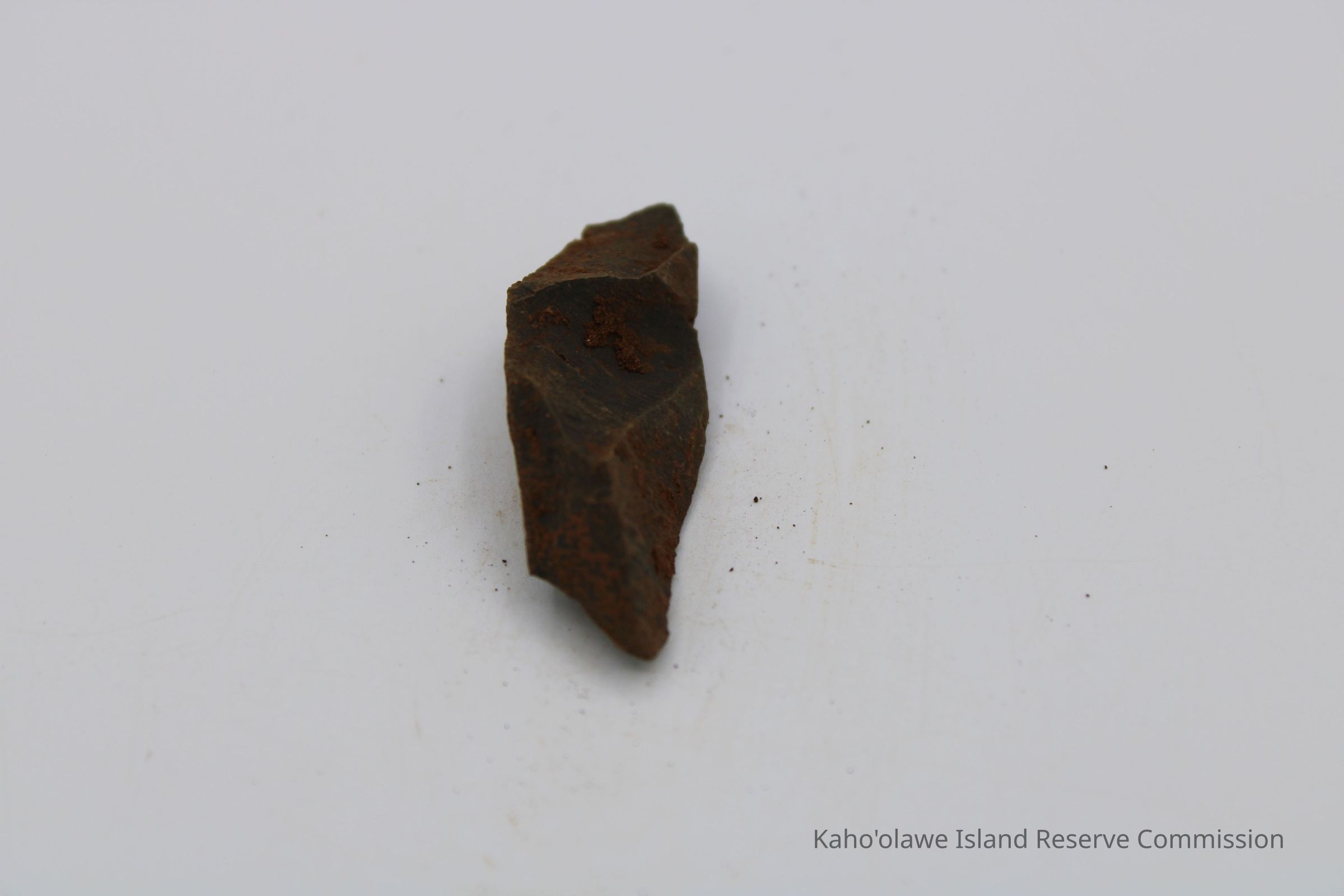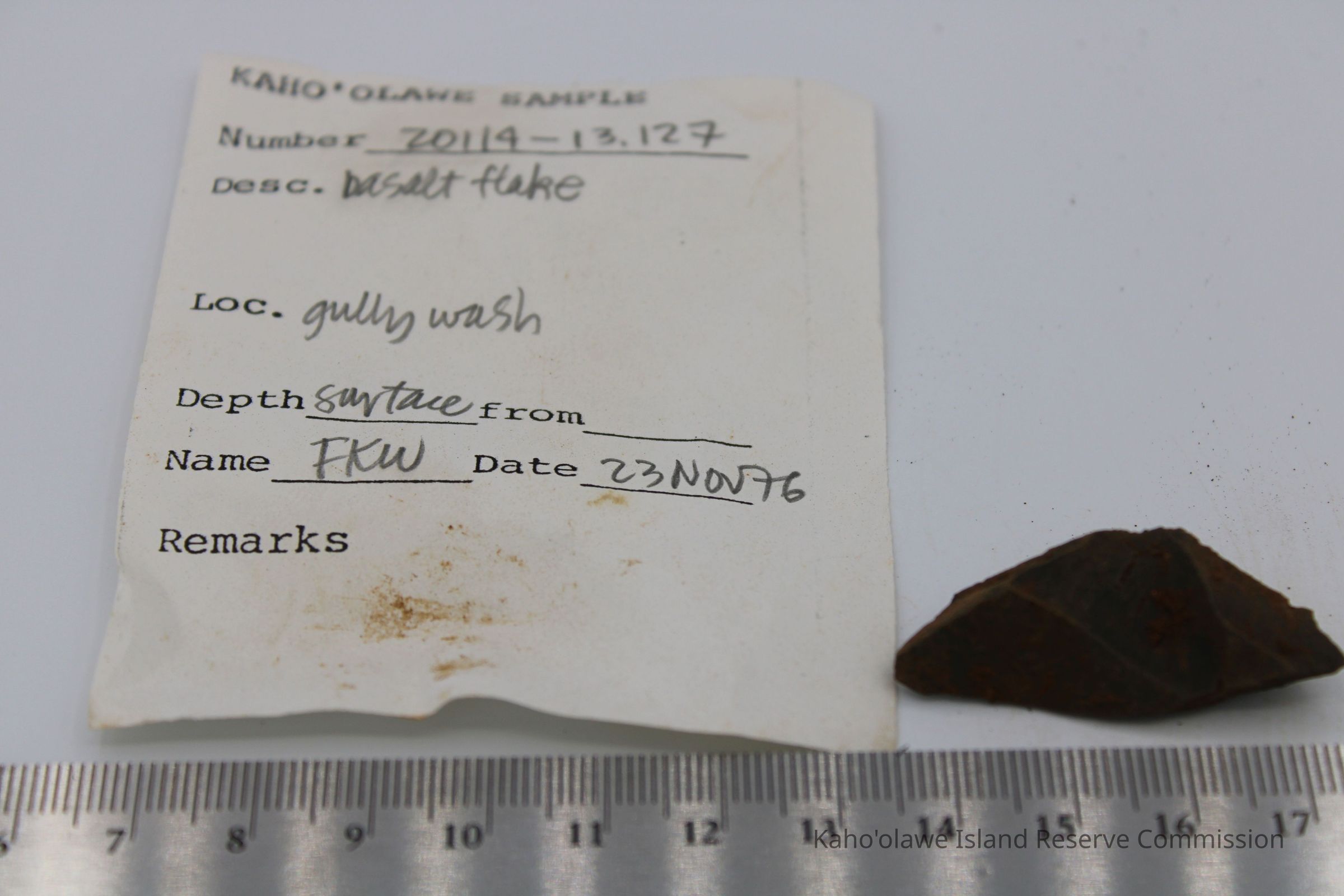 Irregularly shaped flake of basalt collected in gully wash.Collection