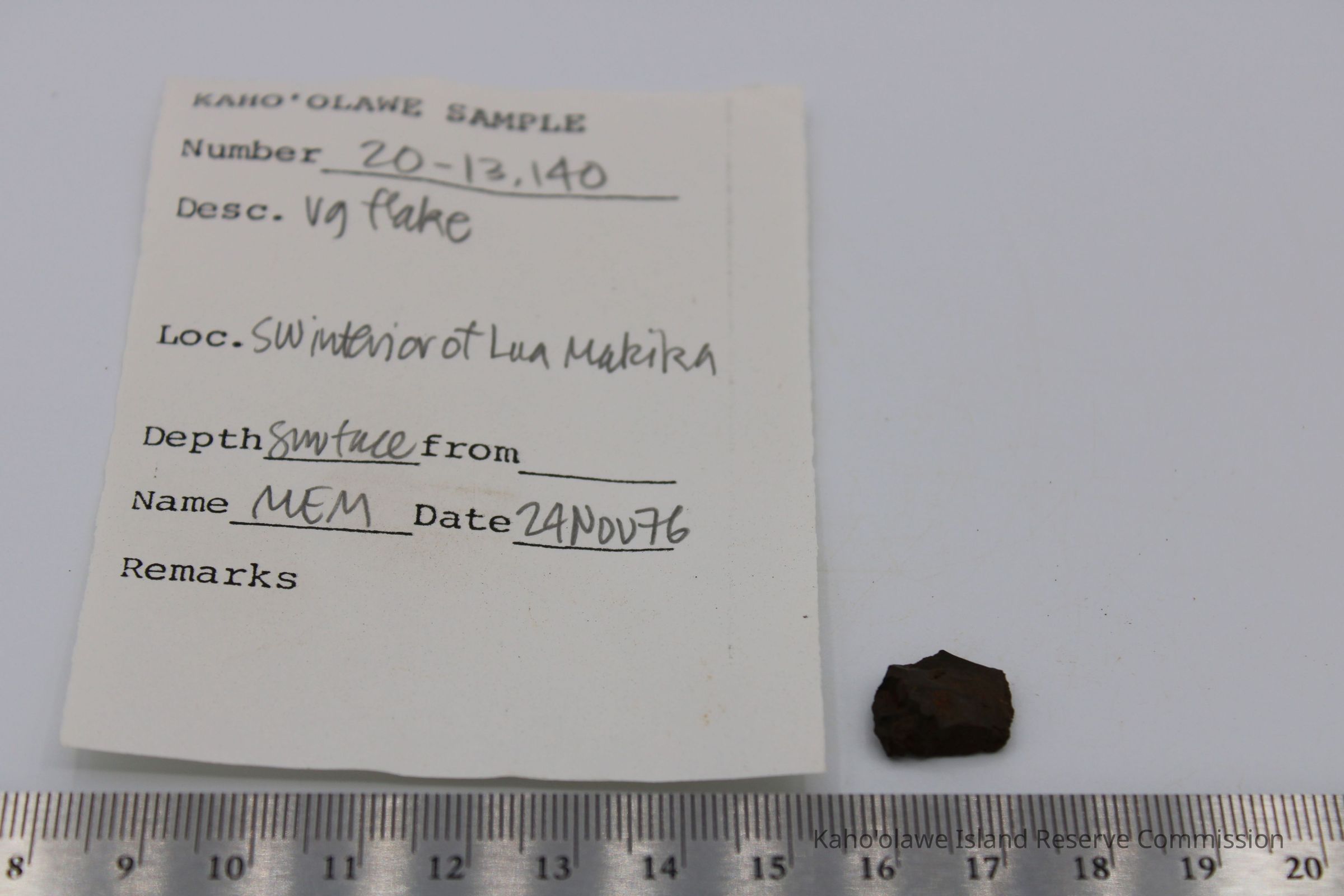 Tiny, roughly oval-shaped flake of volcanic glass.Collection