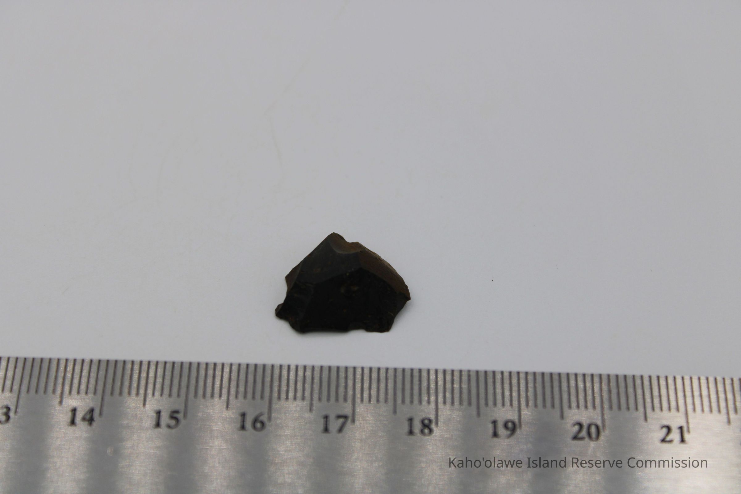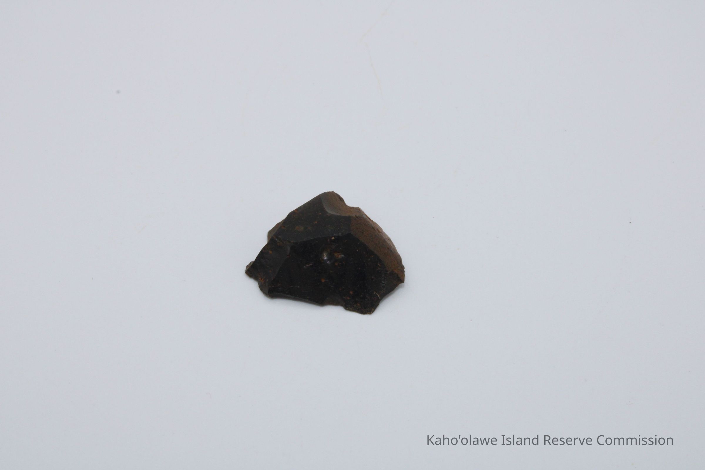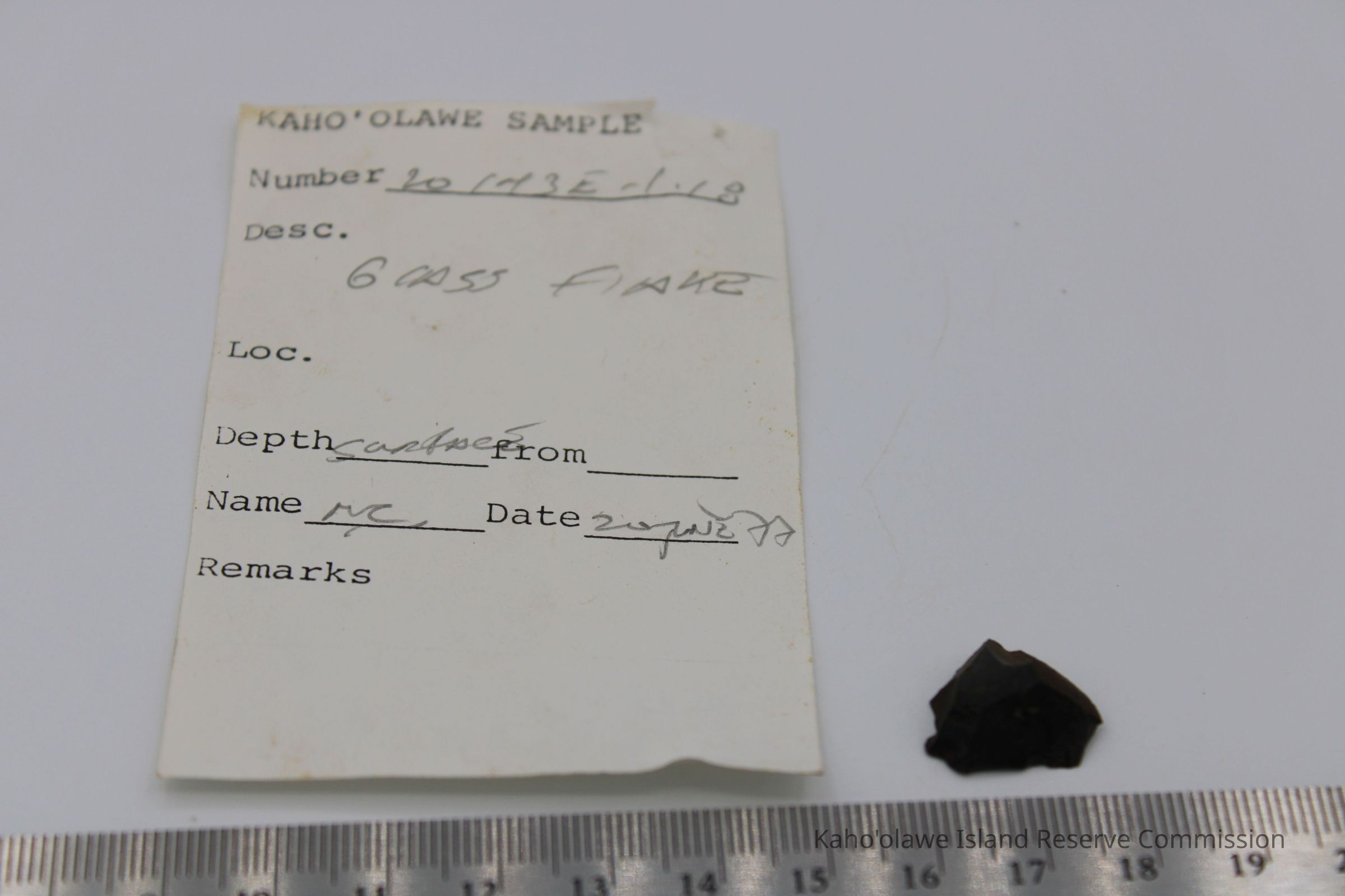 Tiny semi-circular shaped glass flake with jagged, sharp edges and is flat on one sideCollection