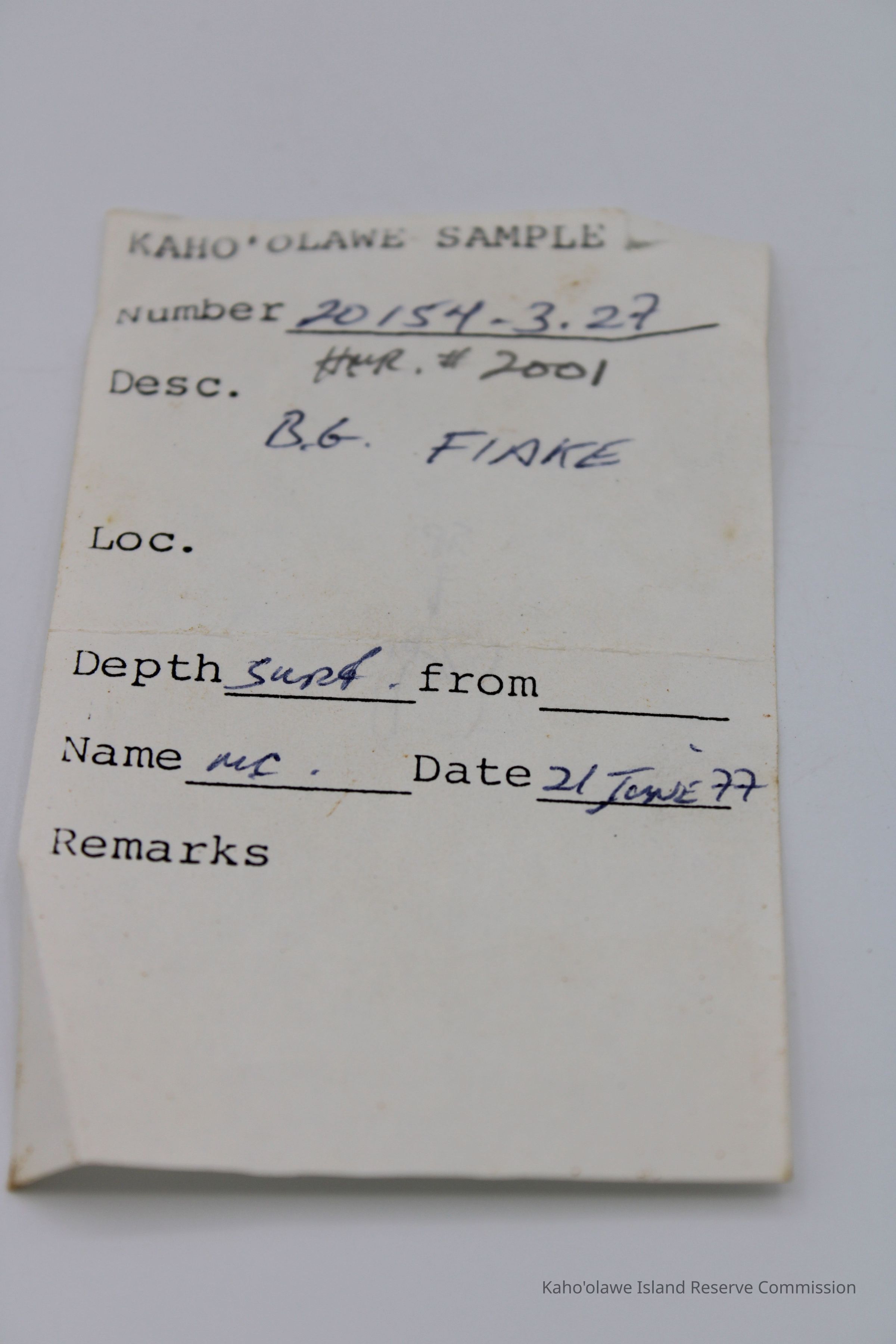 Link to Kaho 1 for Site 154; Task Order 15; link to Sample Collection Record, [Hawai'i] State Historic Preservation Office