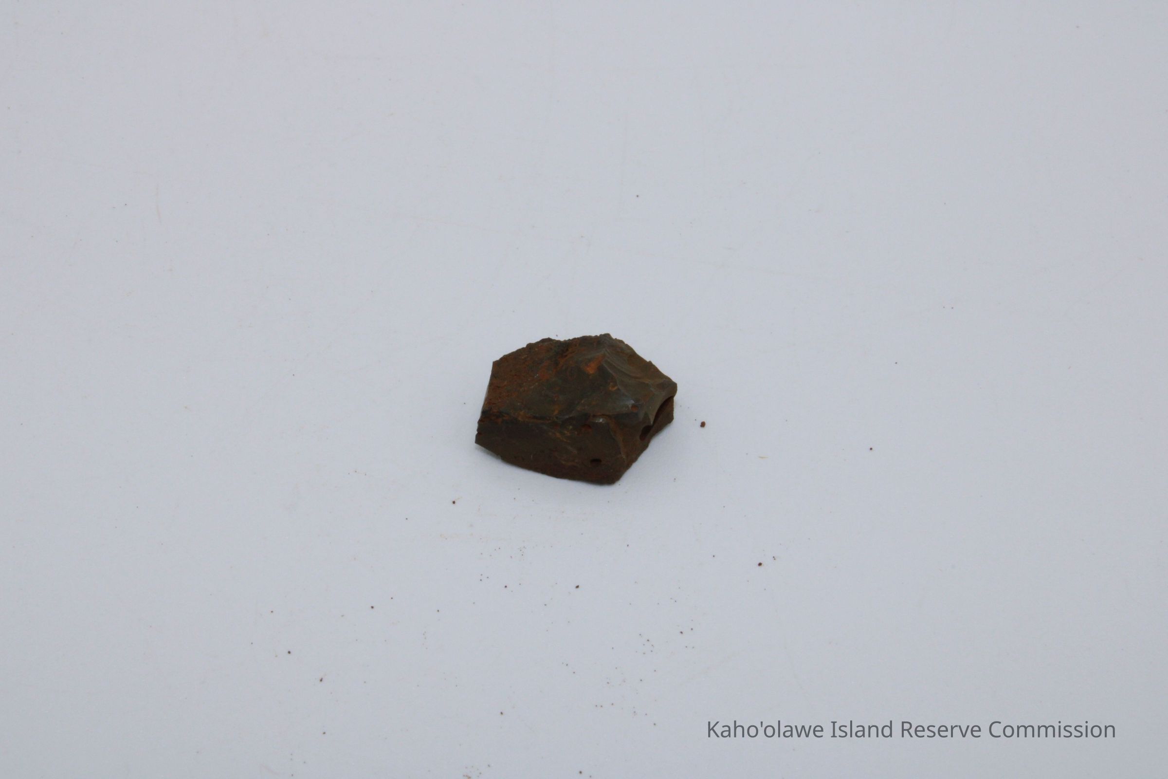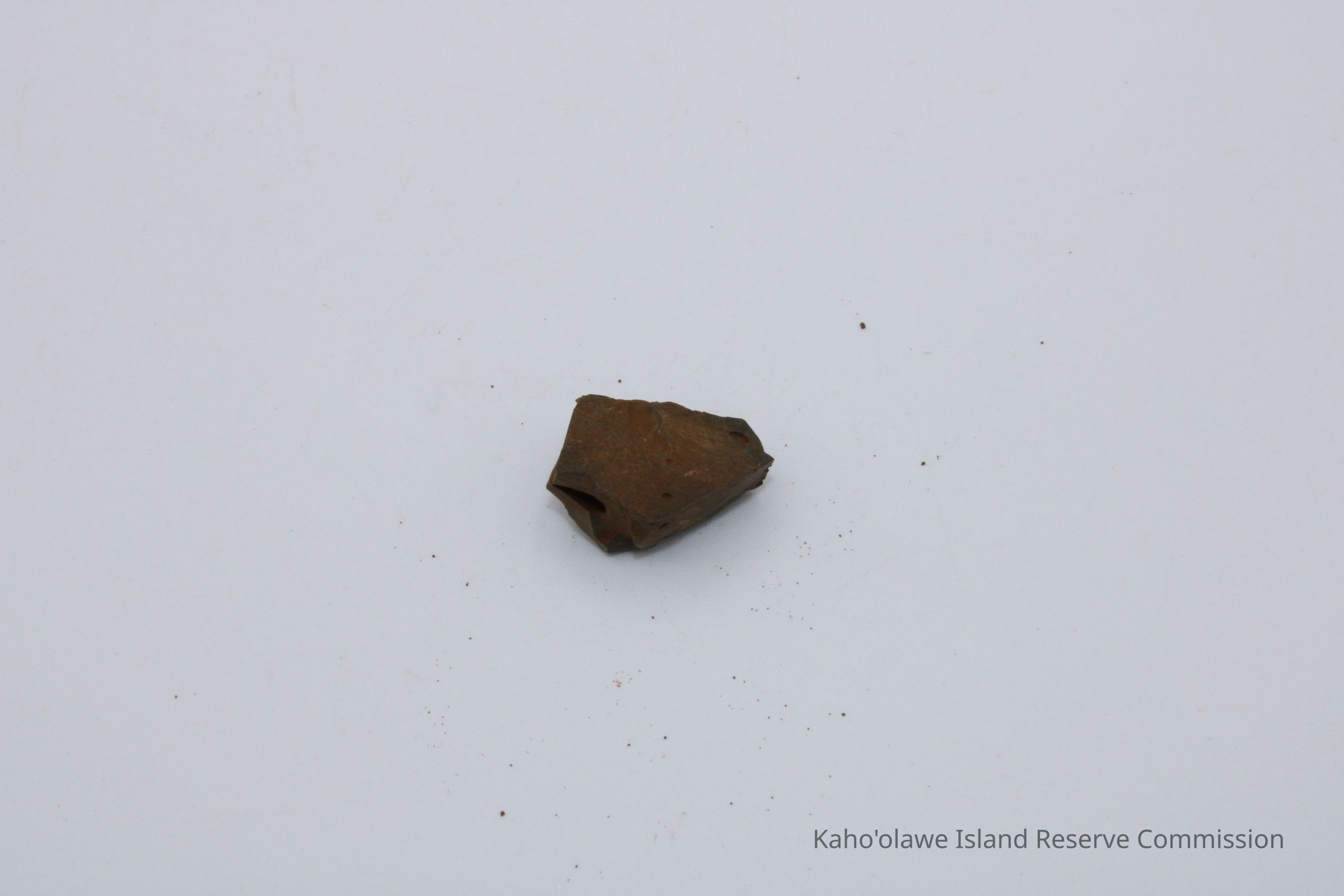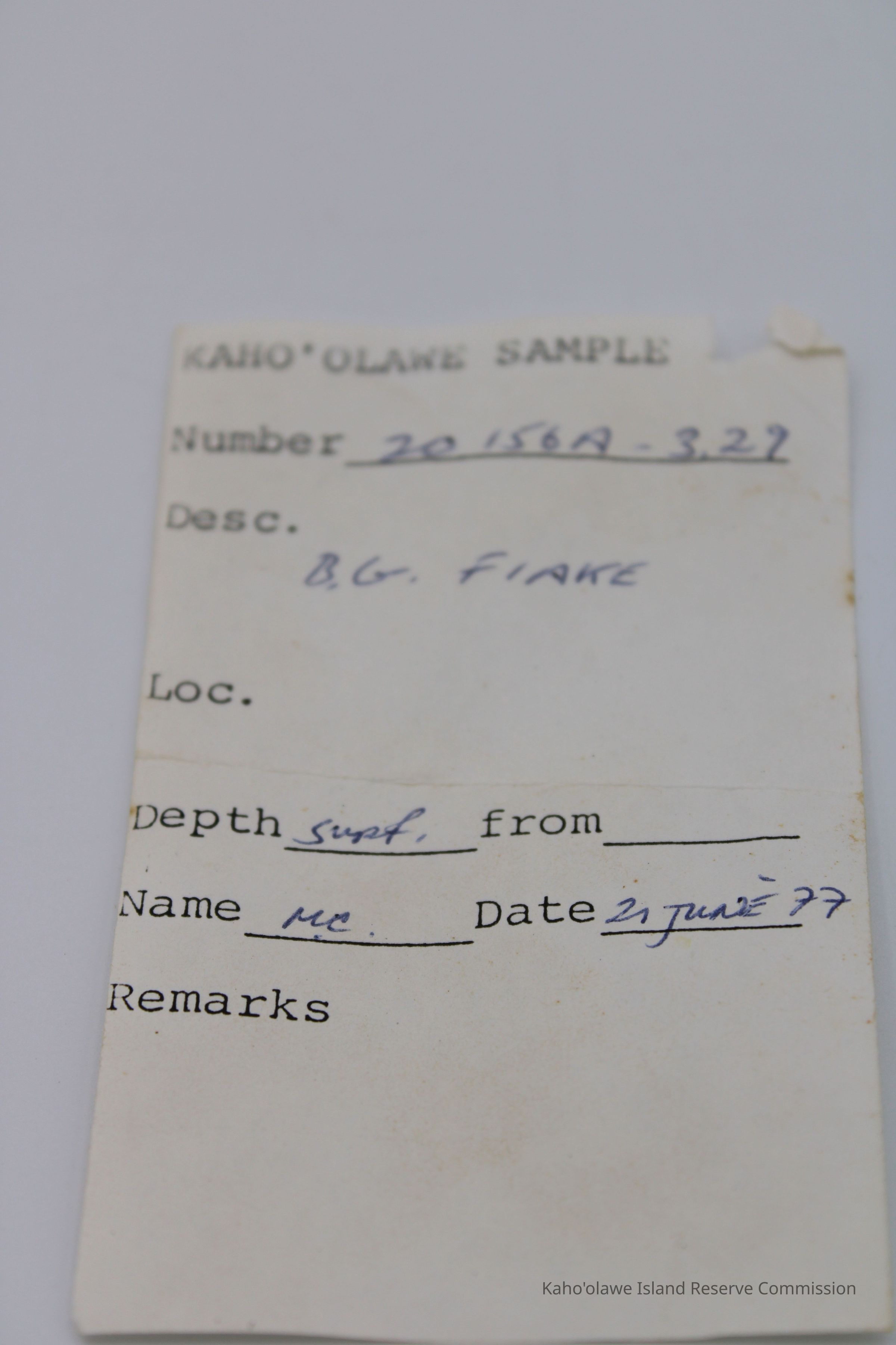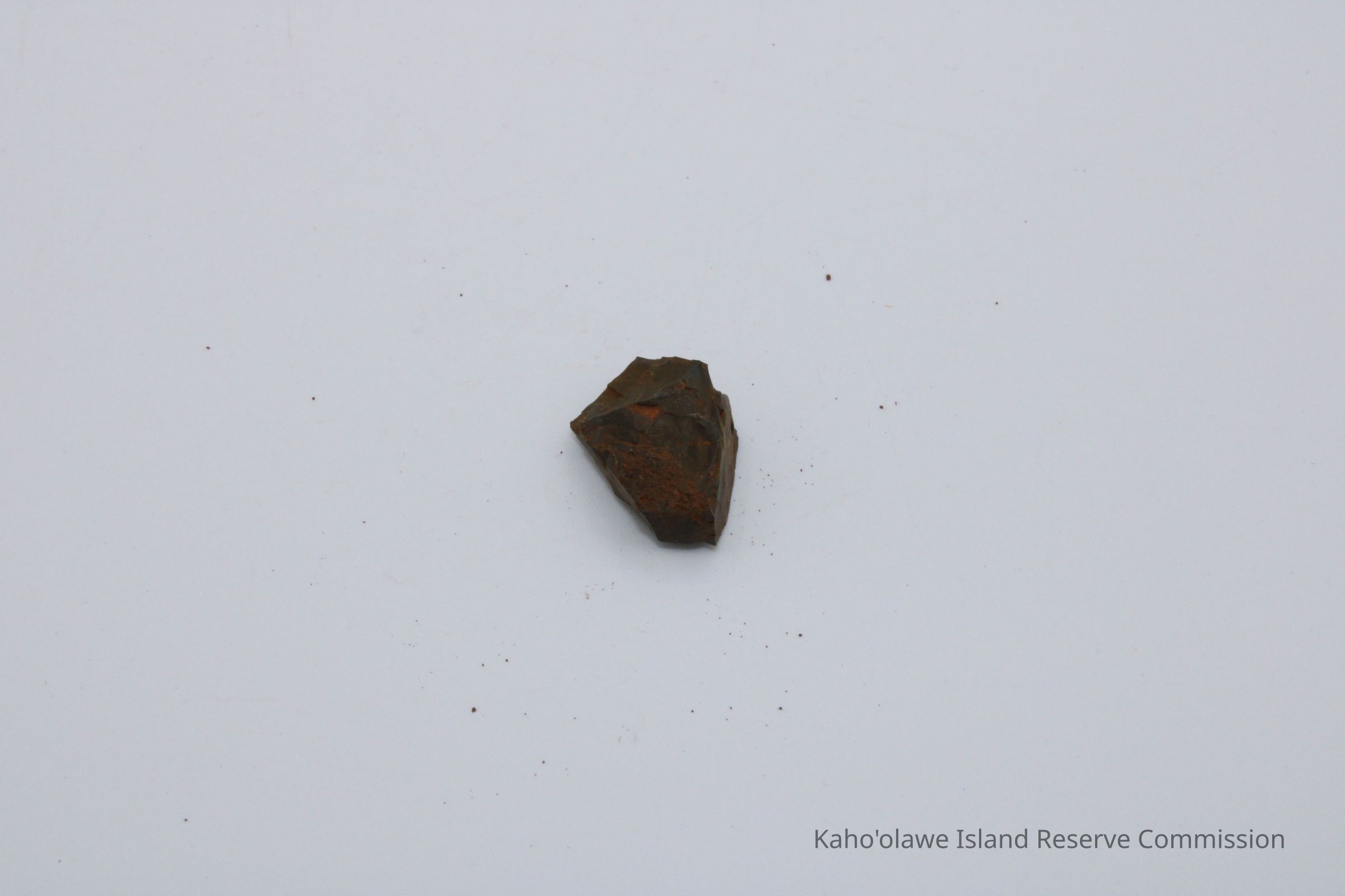 Small, irregularly-shaped flake of basaltic glass; collected at 3:40 pm with soil temperature of 26 degree C per Sample Collection Record, [Hawai'i] State Historic Preservation Office.Collection