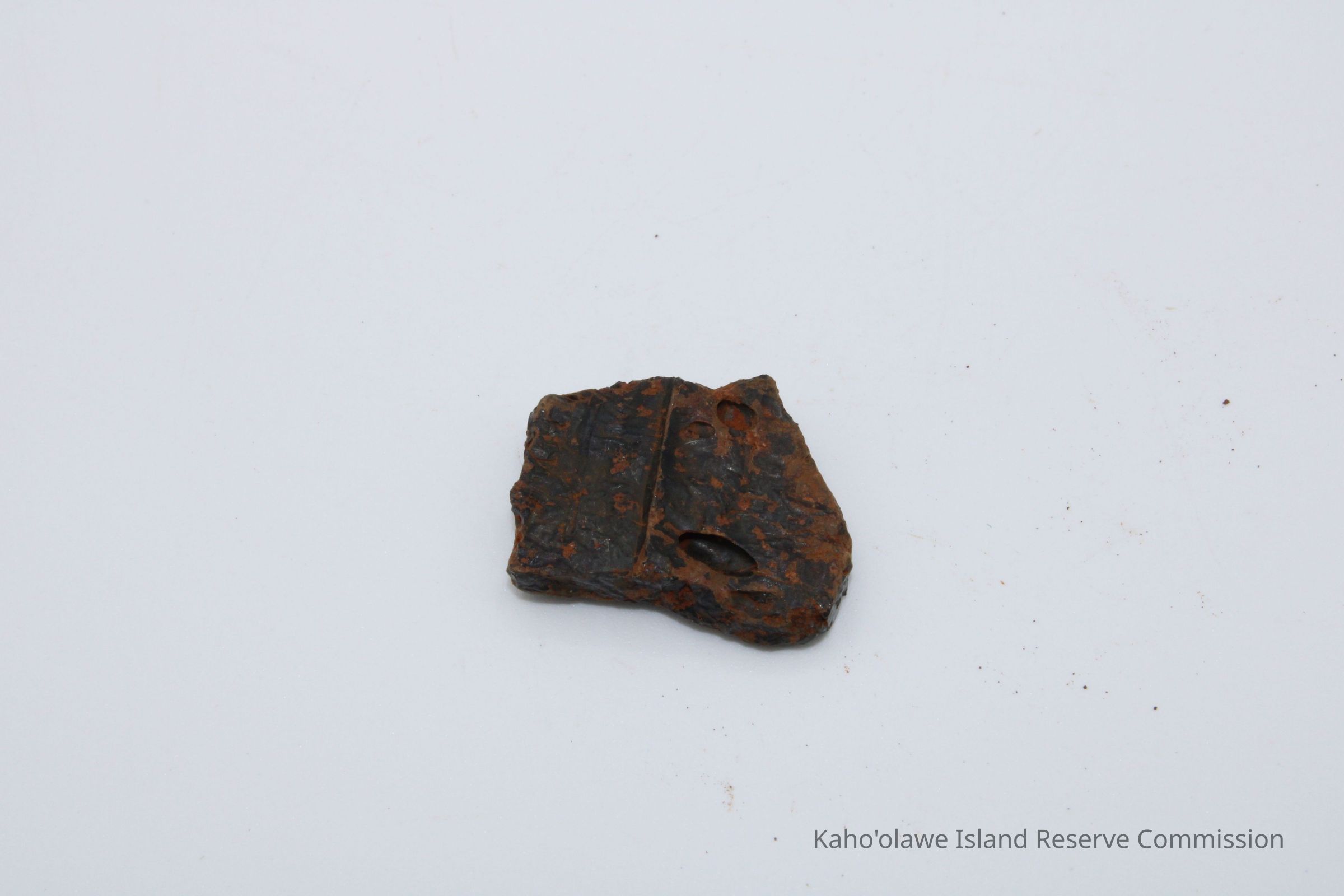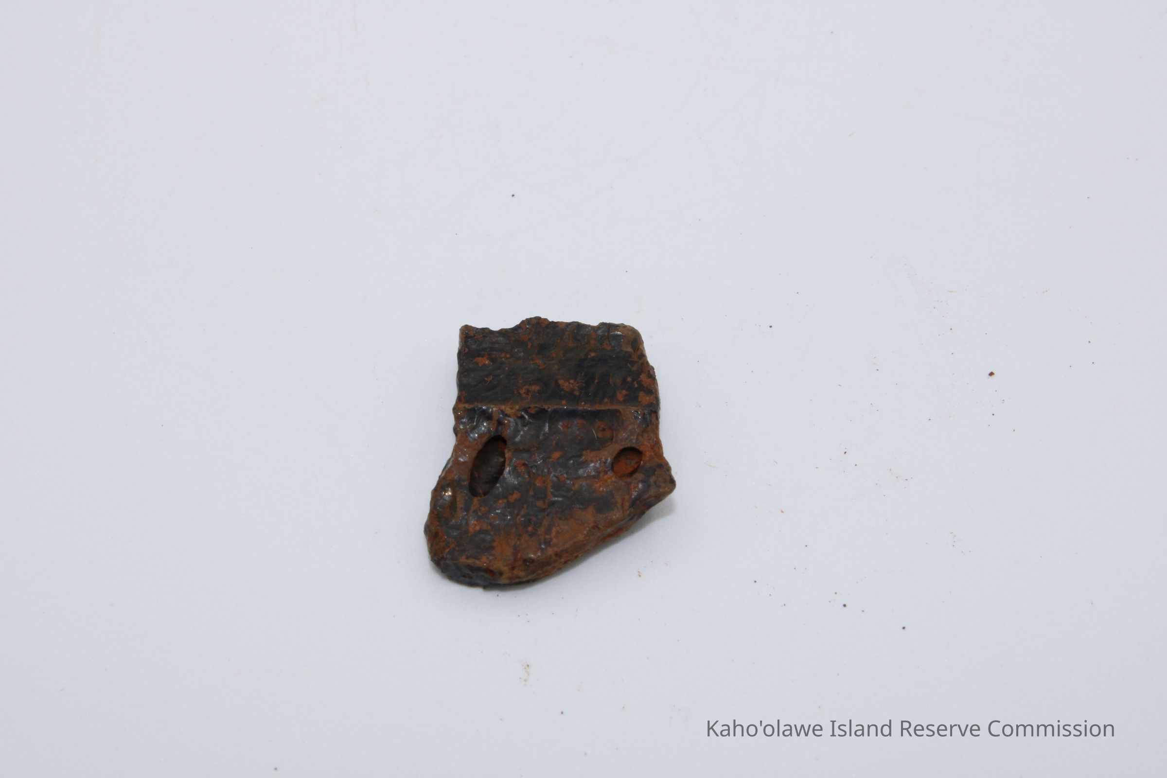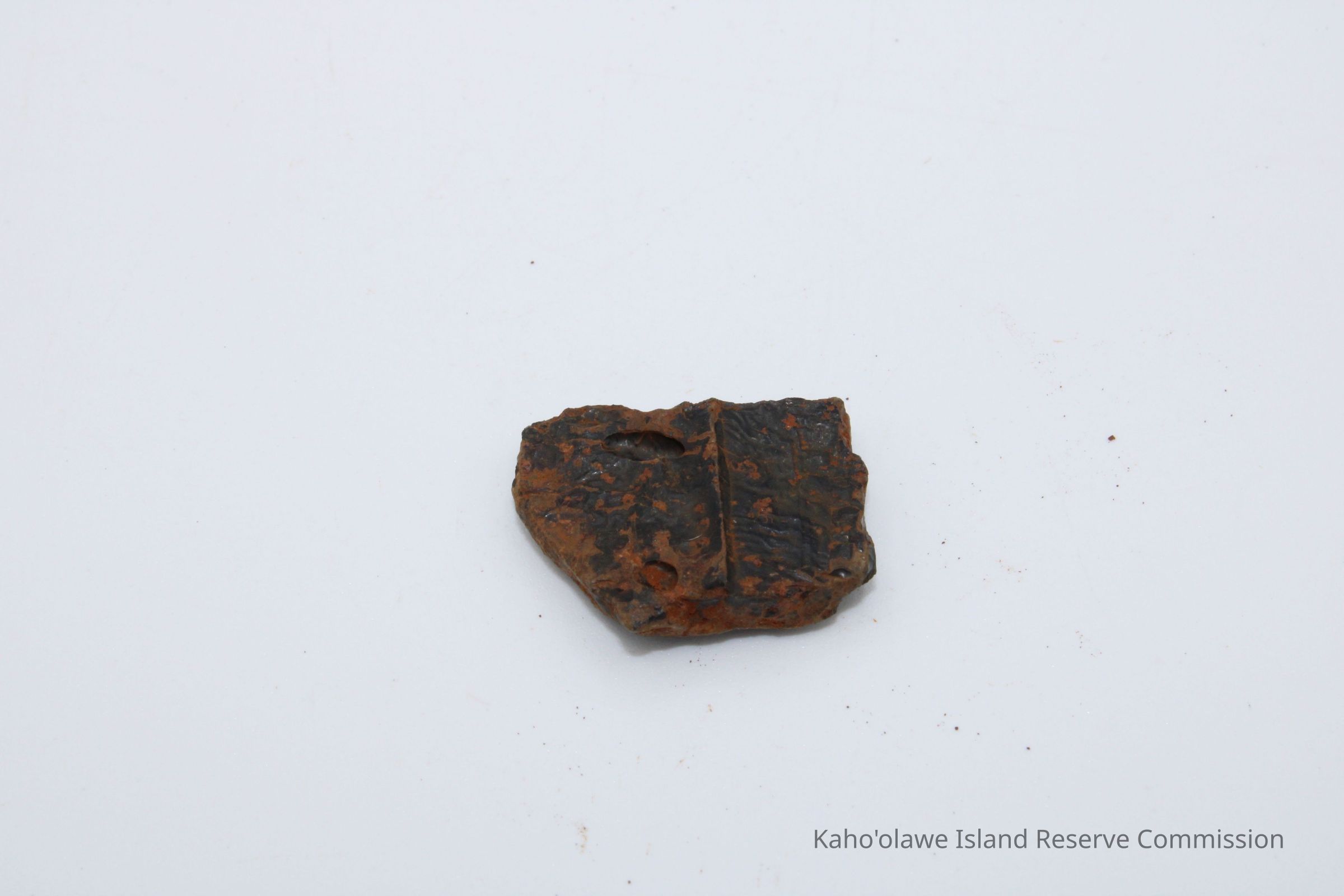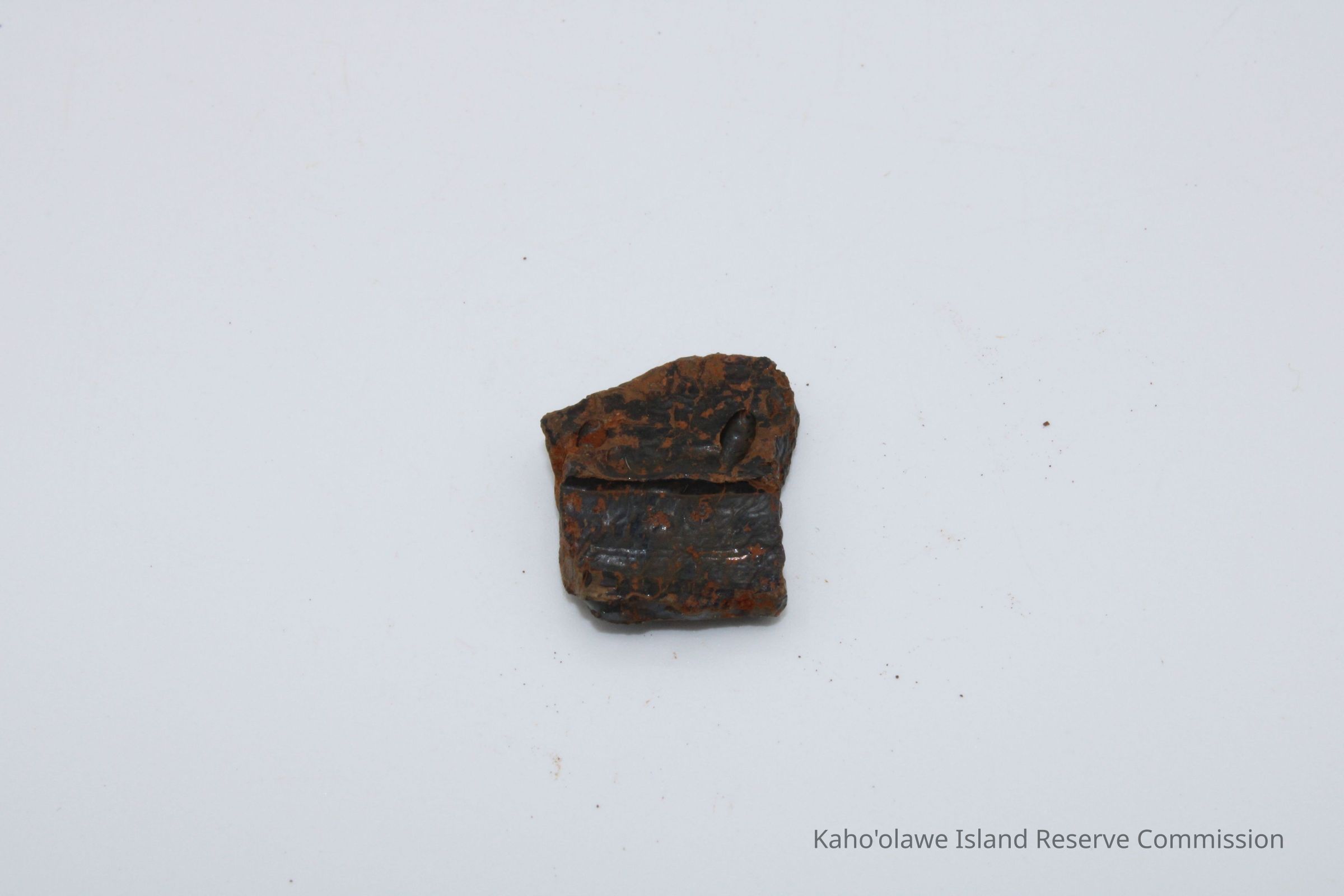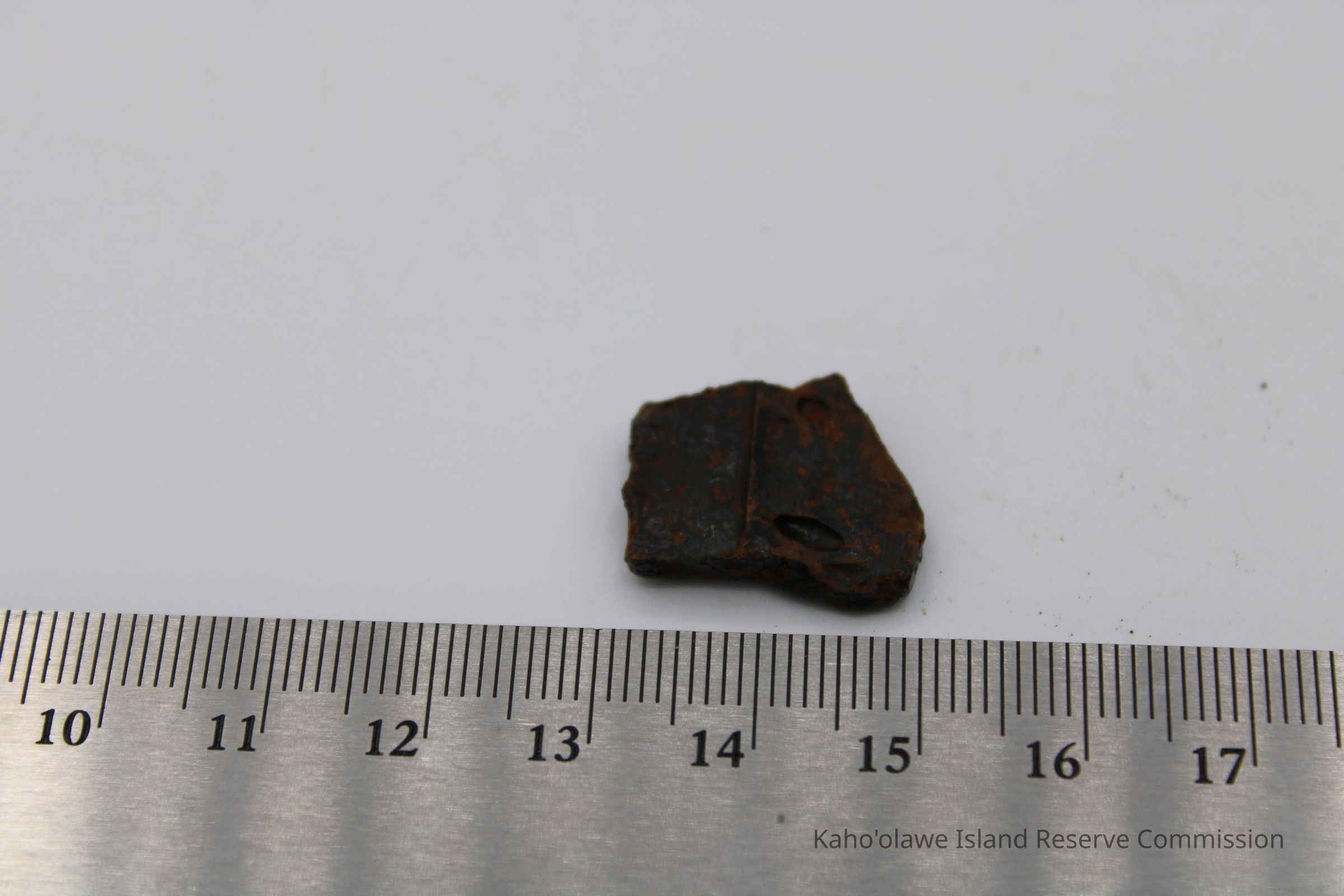Small, irregularly shaped flake of basaltic glass; collected at 3:40 pm with soil temperature of 27 degrees C per Sample Collection Record, [Hawaiʻi] State Historic Preservation Office.Collection