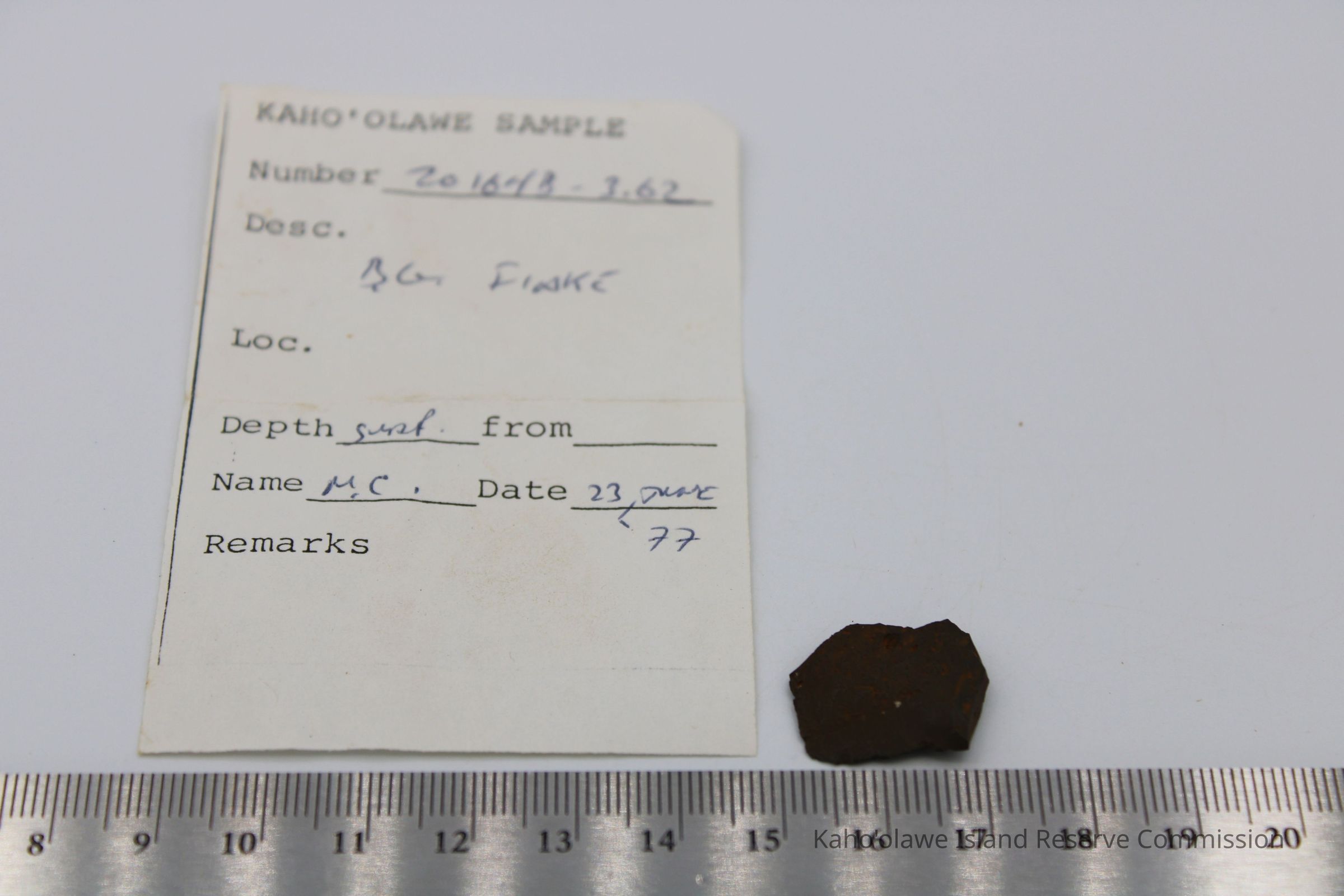 Small, semi-rectangular shaped flake of basaltic glass with thin semi-sharp edgesCollection