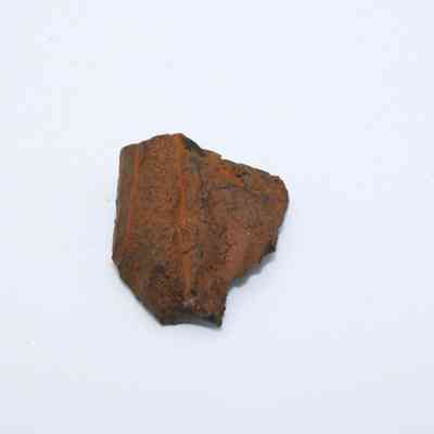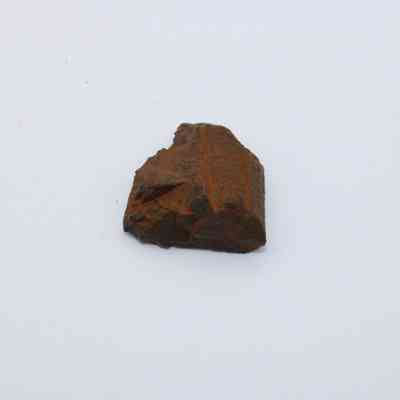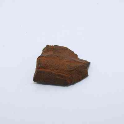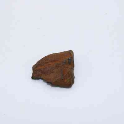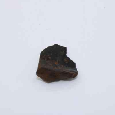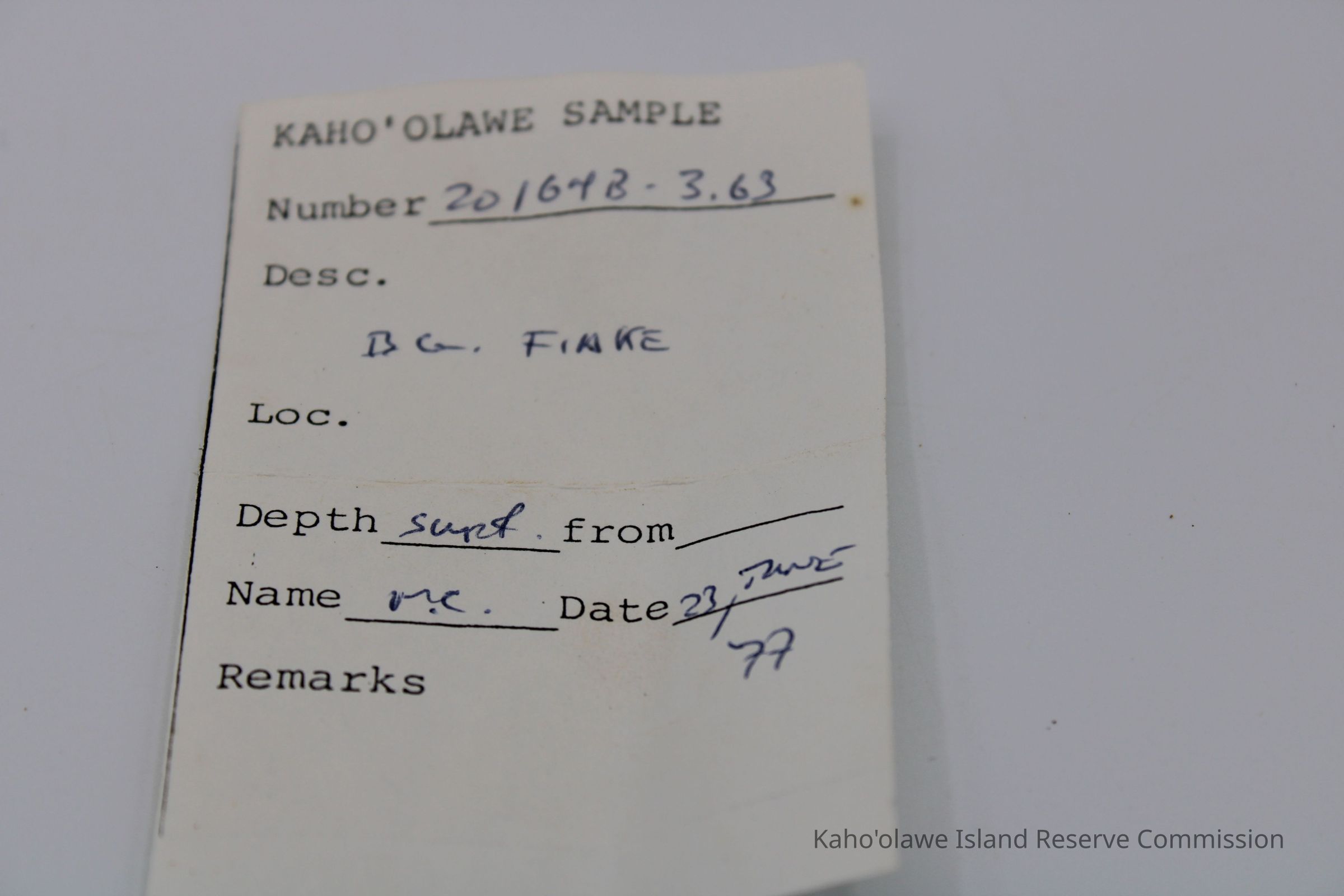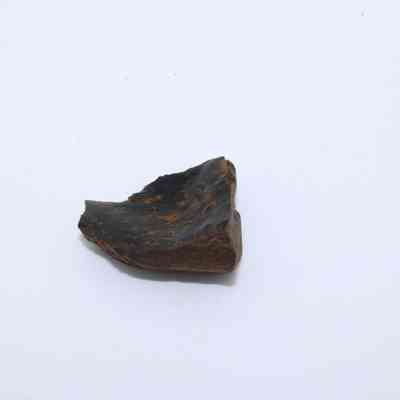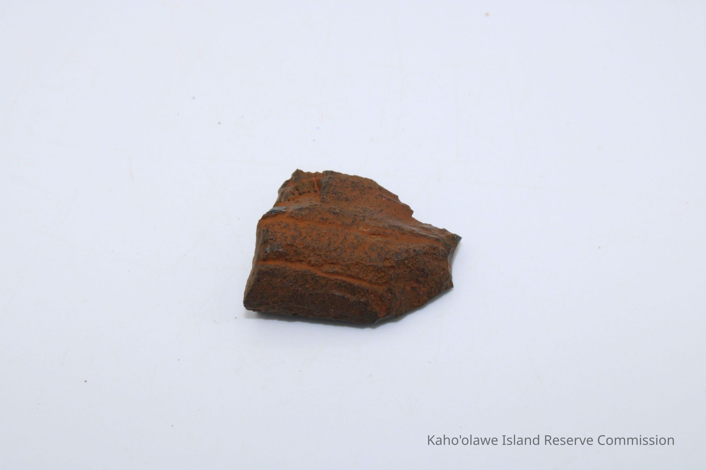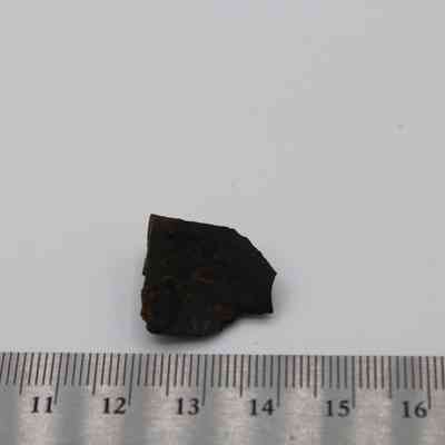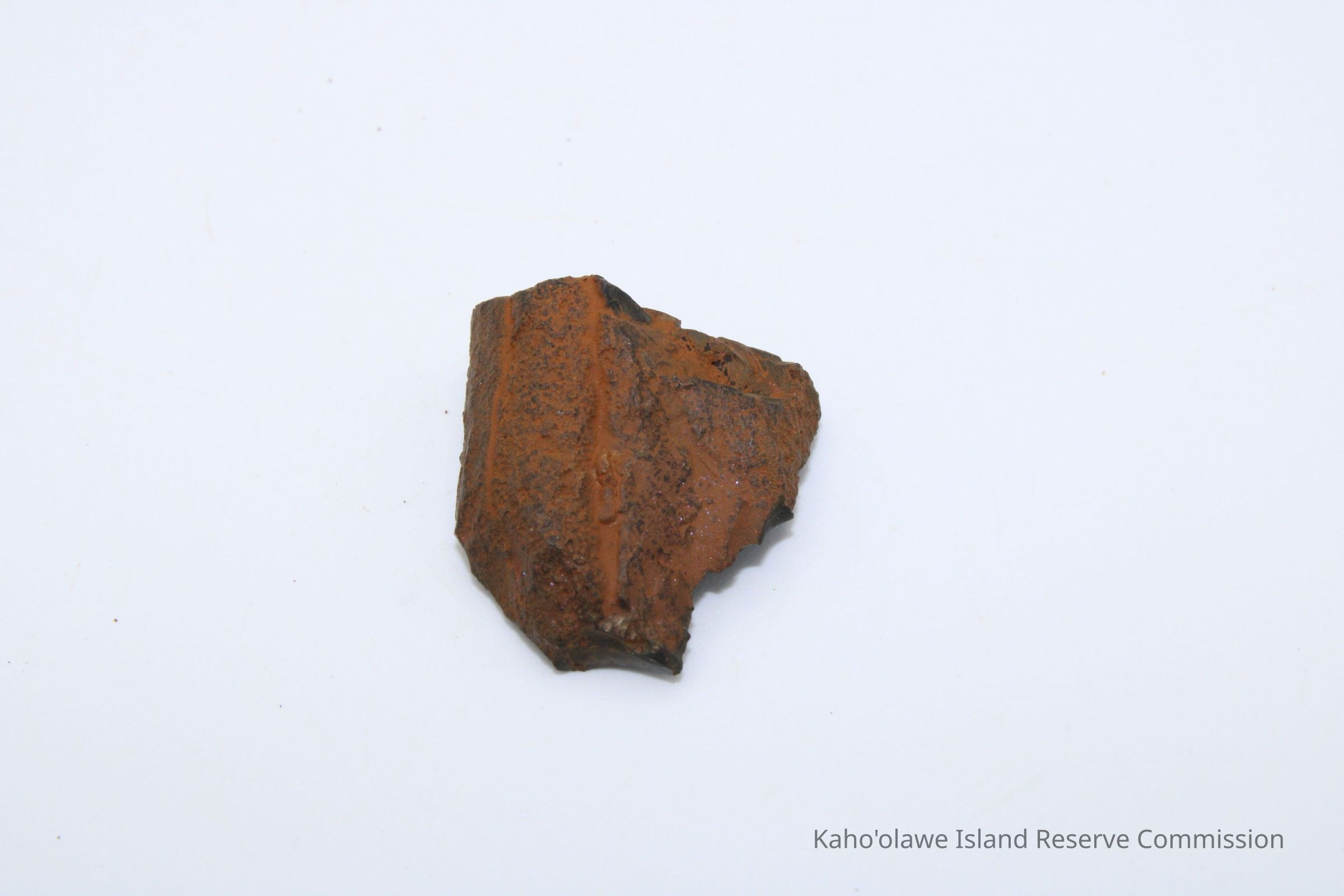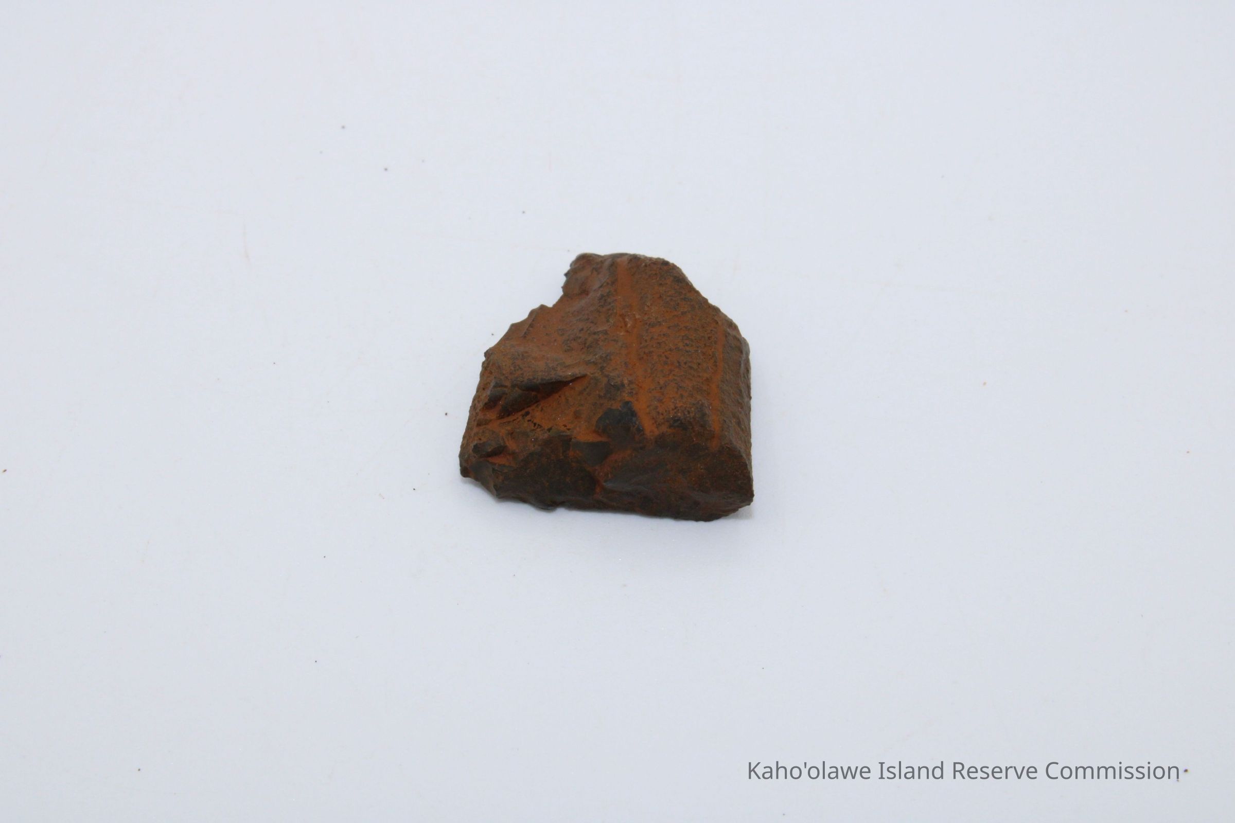 Small, semi-triangular flake of basaltic glass with one shiny black side and sharp point.Collection