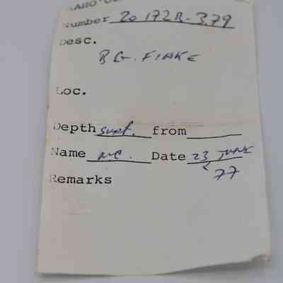 Small squarish flake of basaltic glass with two sharp edges with sharp points.Collection