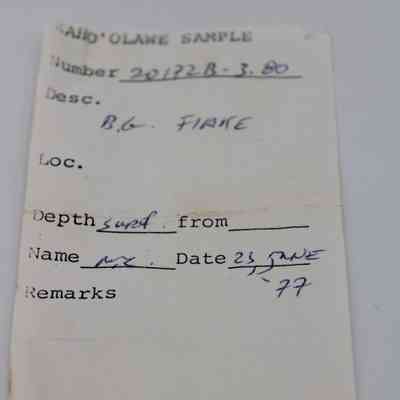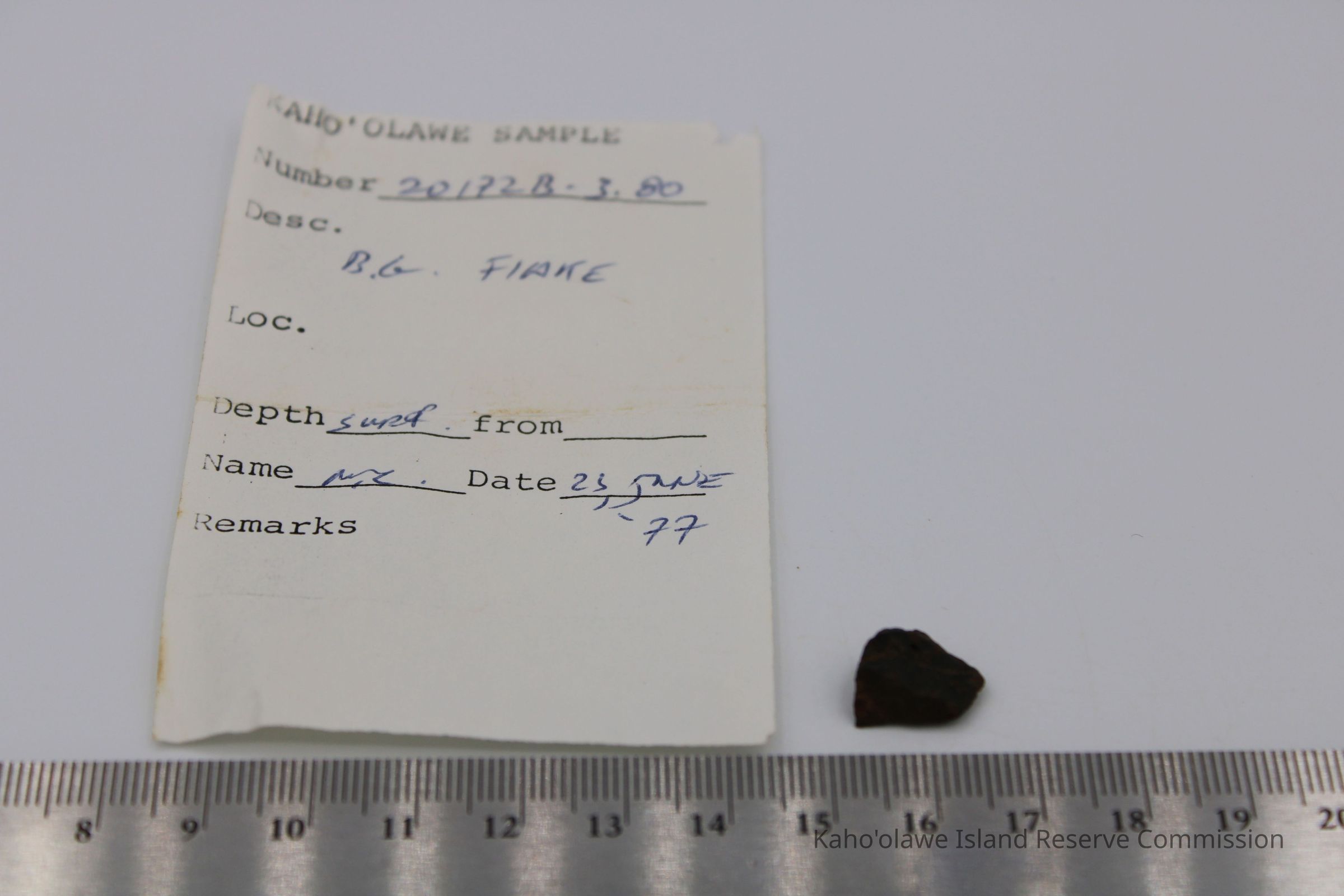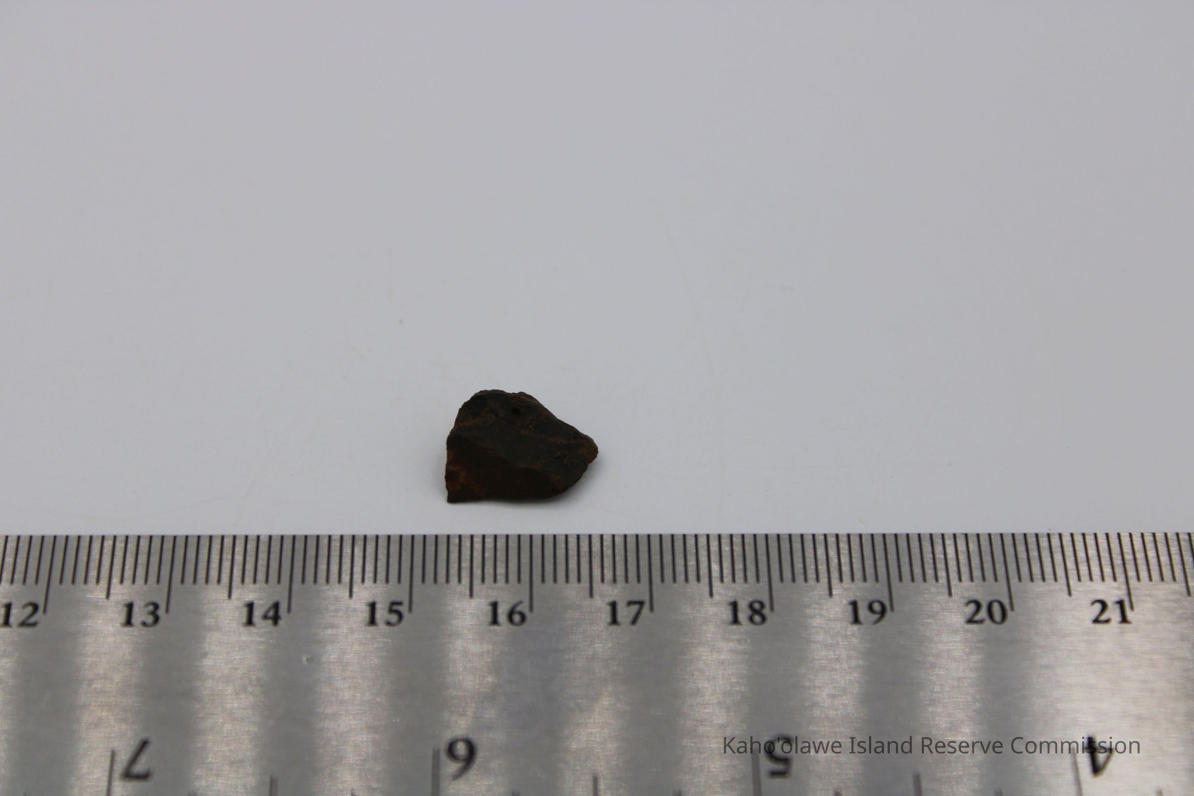 Tiny, irregularly shaped flake of basaltic glass.Collection