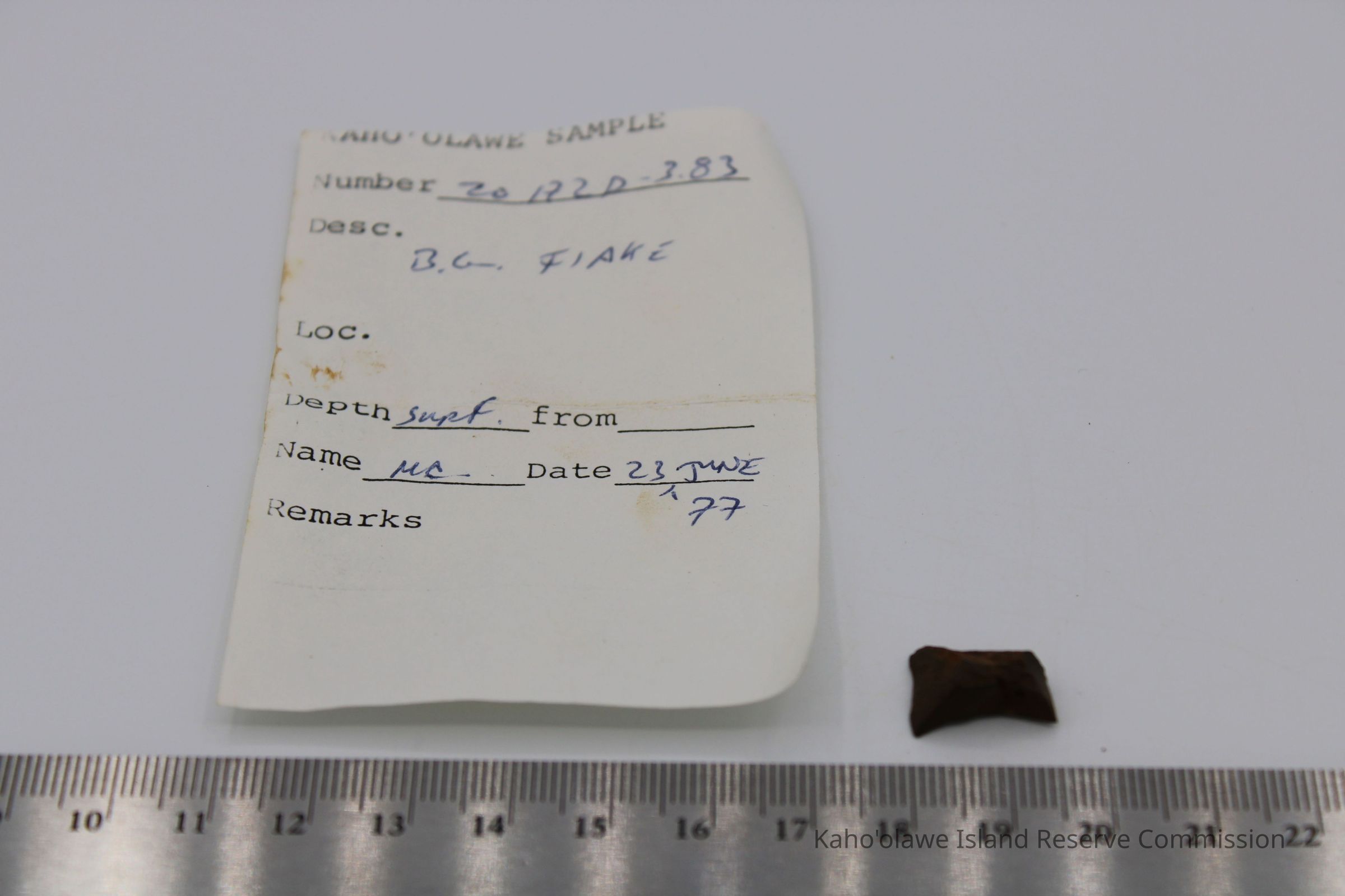 Tiny, irregularly shaped flake of basaltic glass with sharp edges.Collection