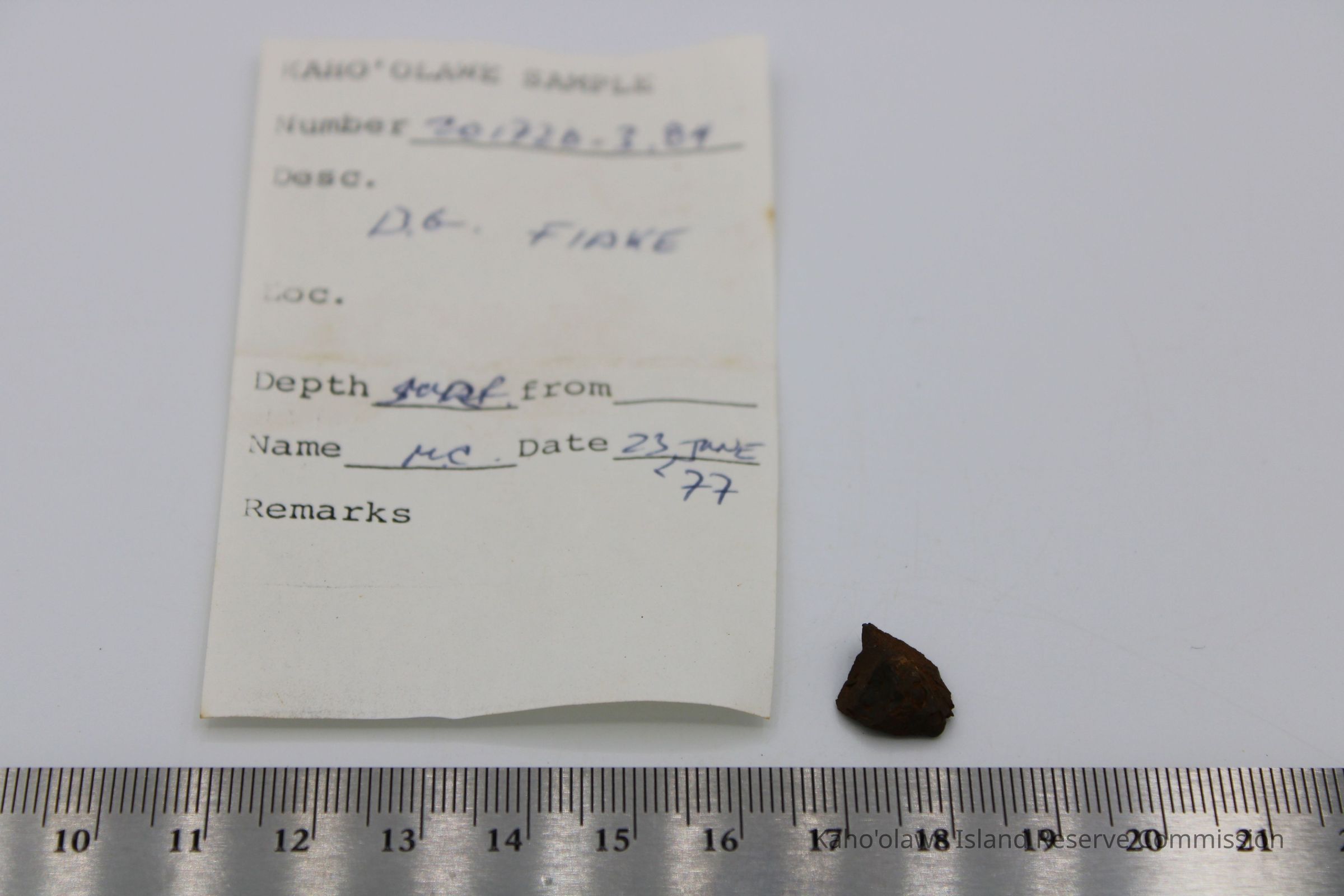 Tiny, irregularly shaped flake of basaltic glass.Collection