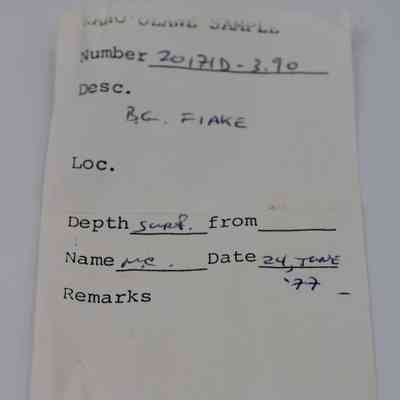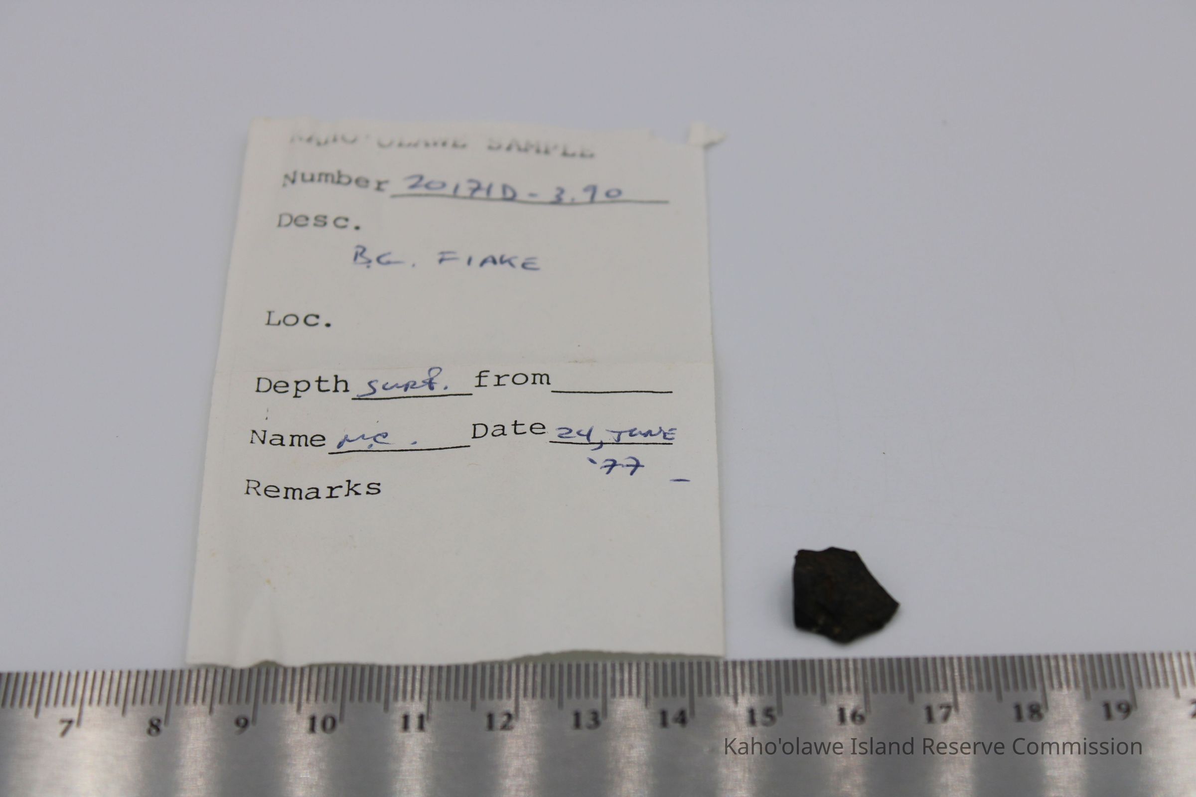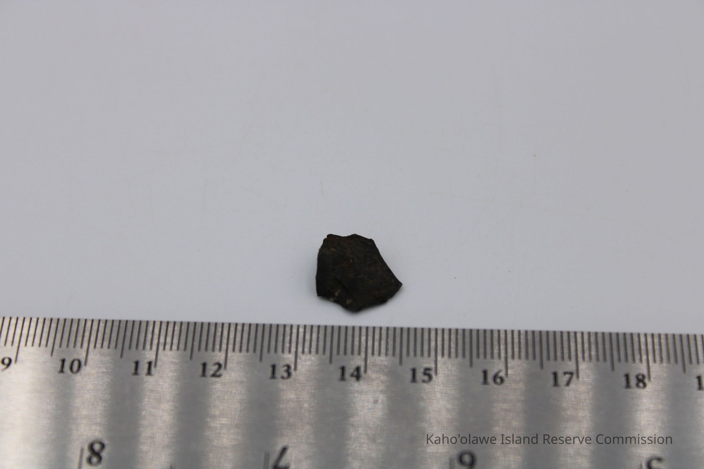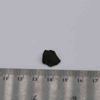 Tiny, irregularly shaped flake of basaltic glass.Collection