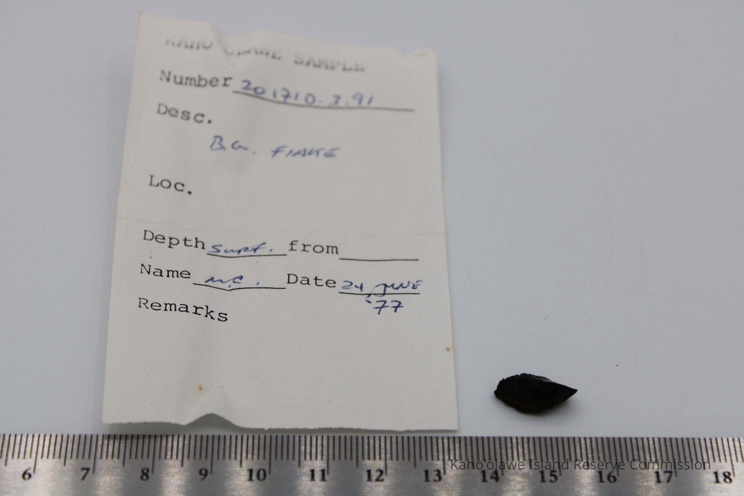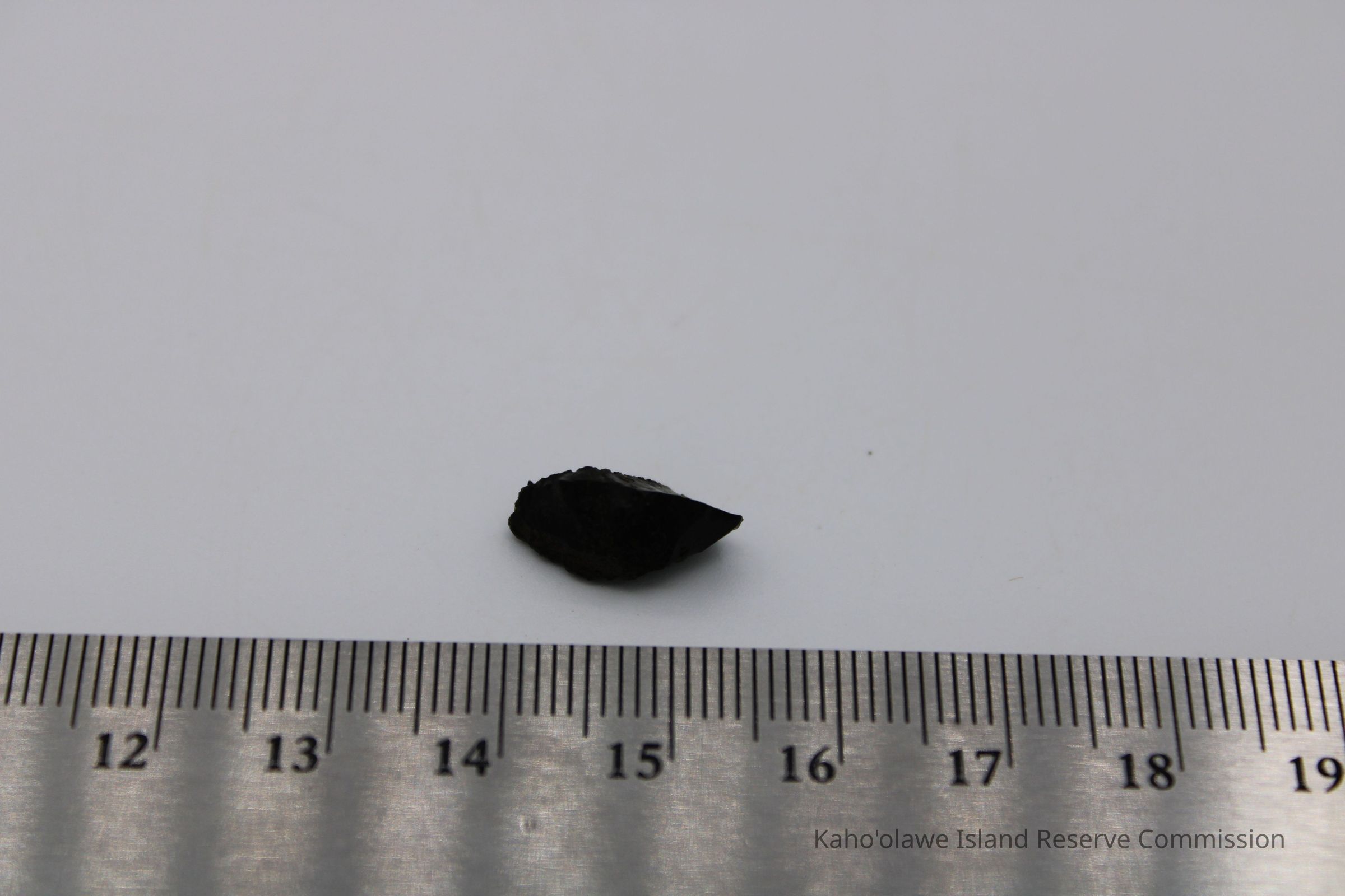 Tiny, sharp pointed flake of basaltic glass.Collection