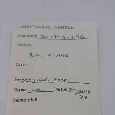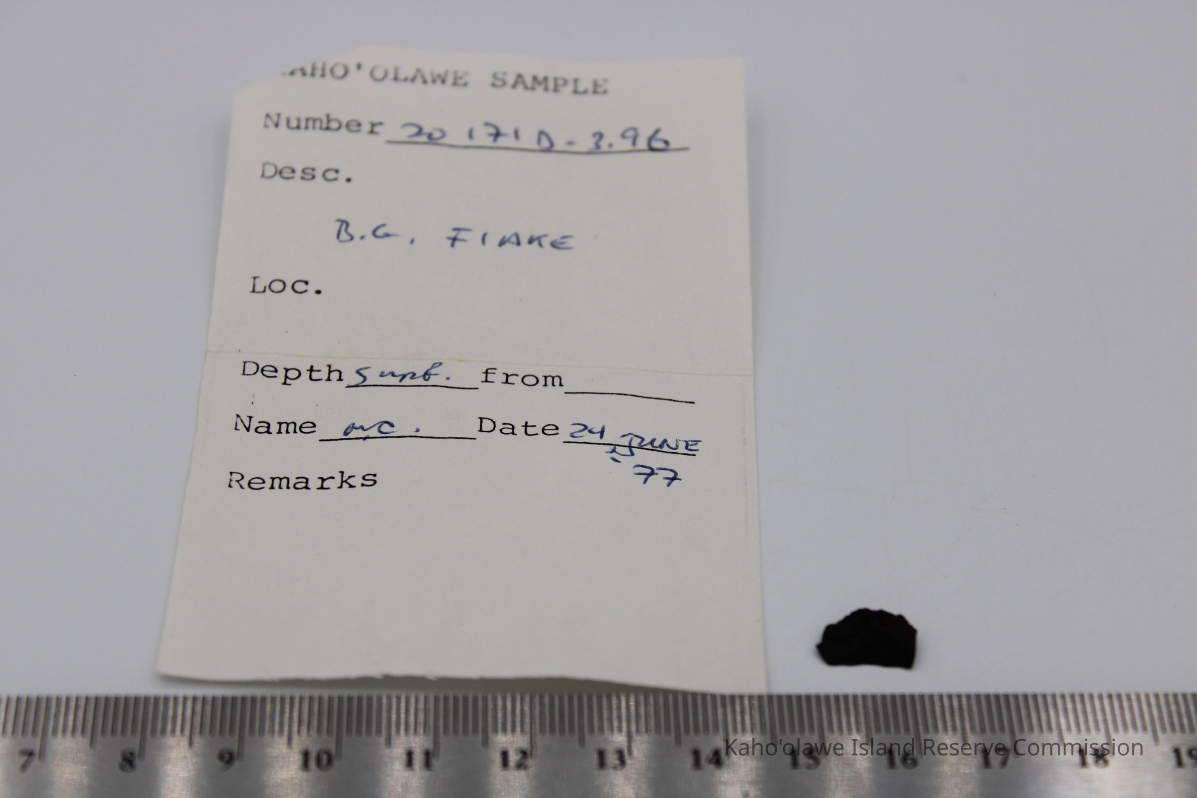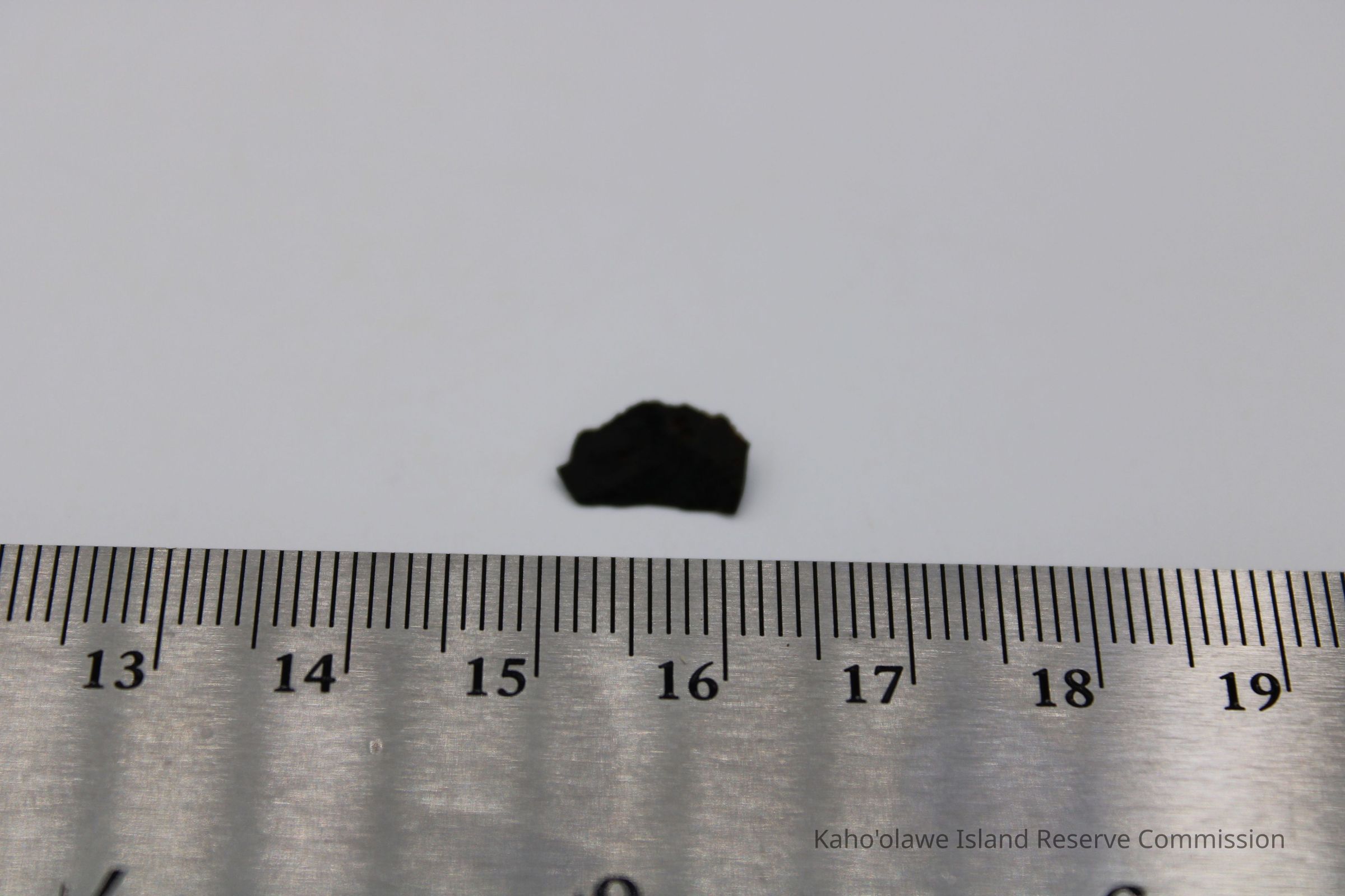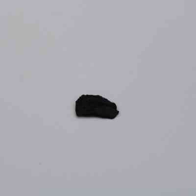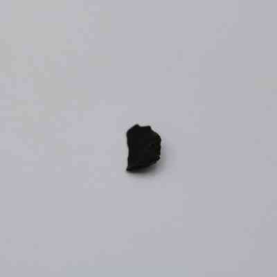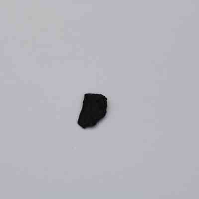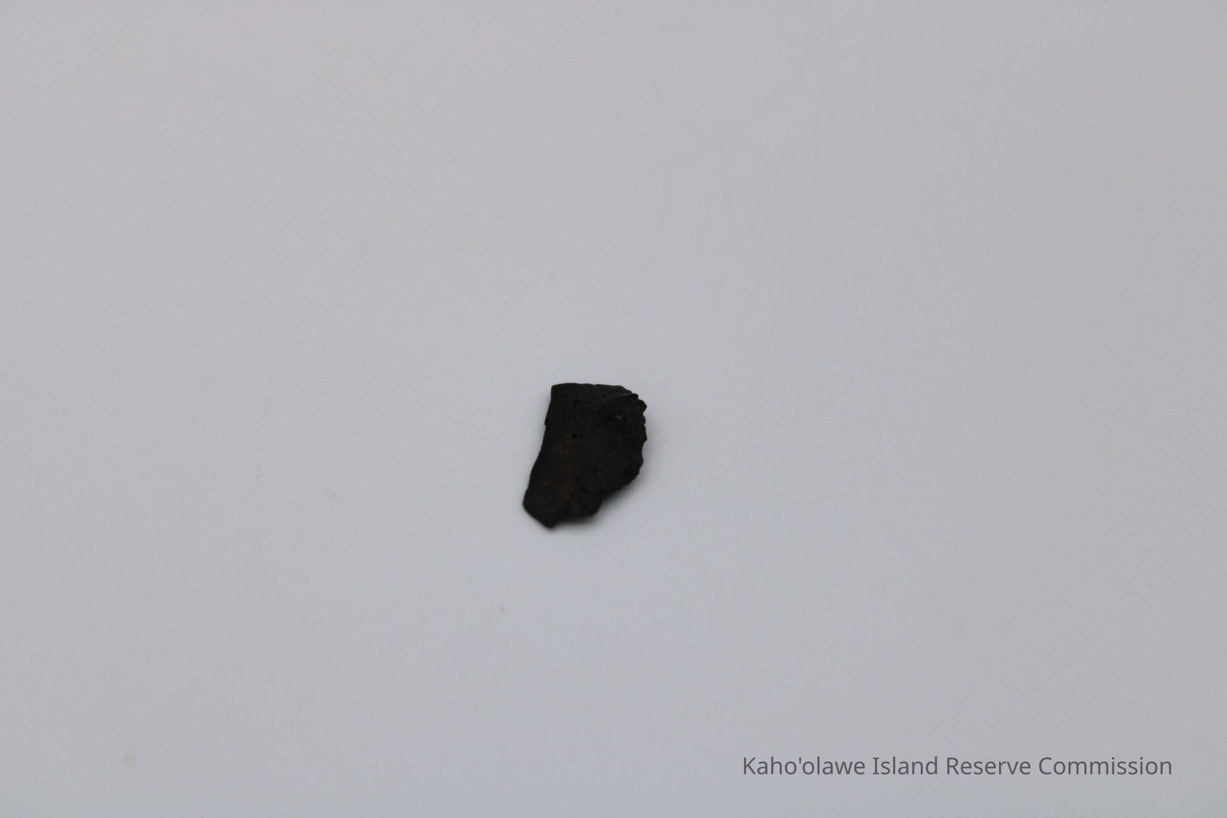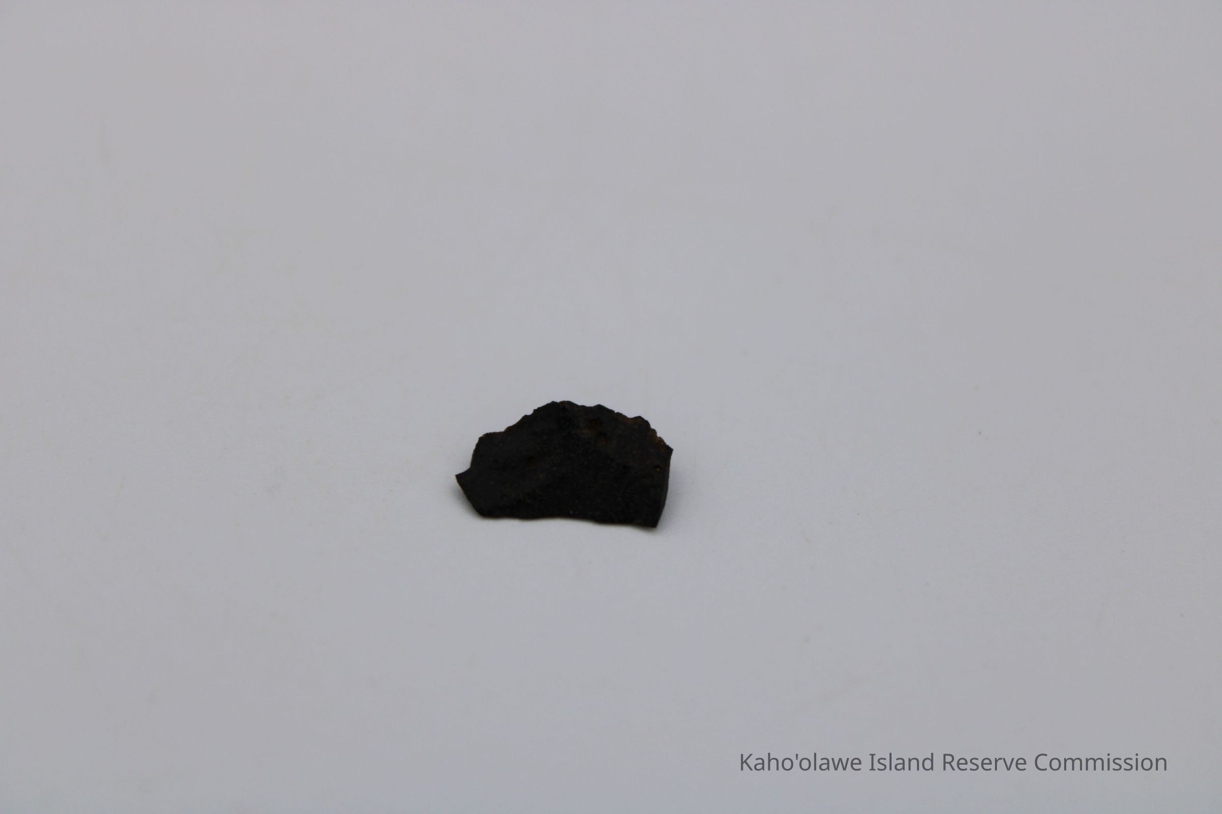 Very tiny half-crescent shaped flake of basaltic glass with jagged edges.Collection