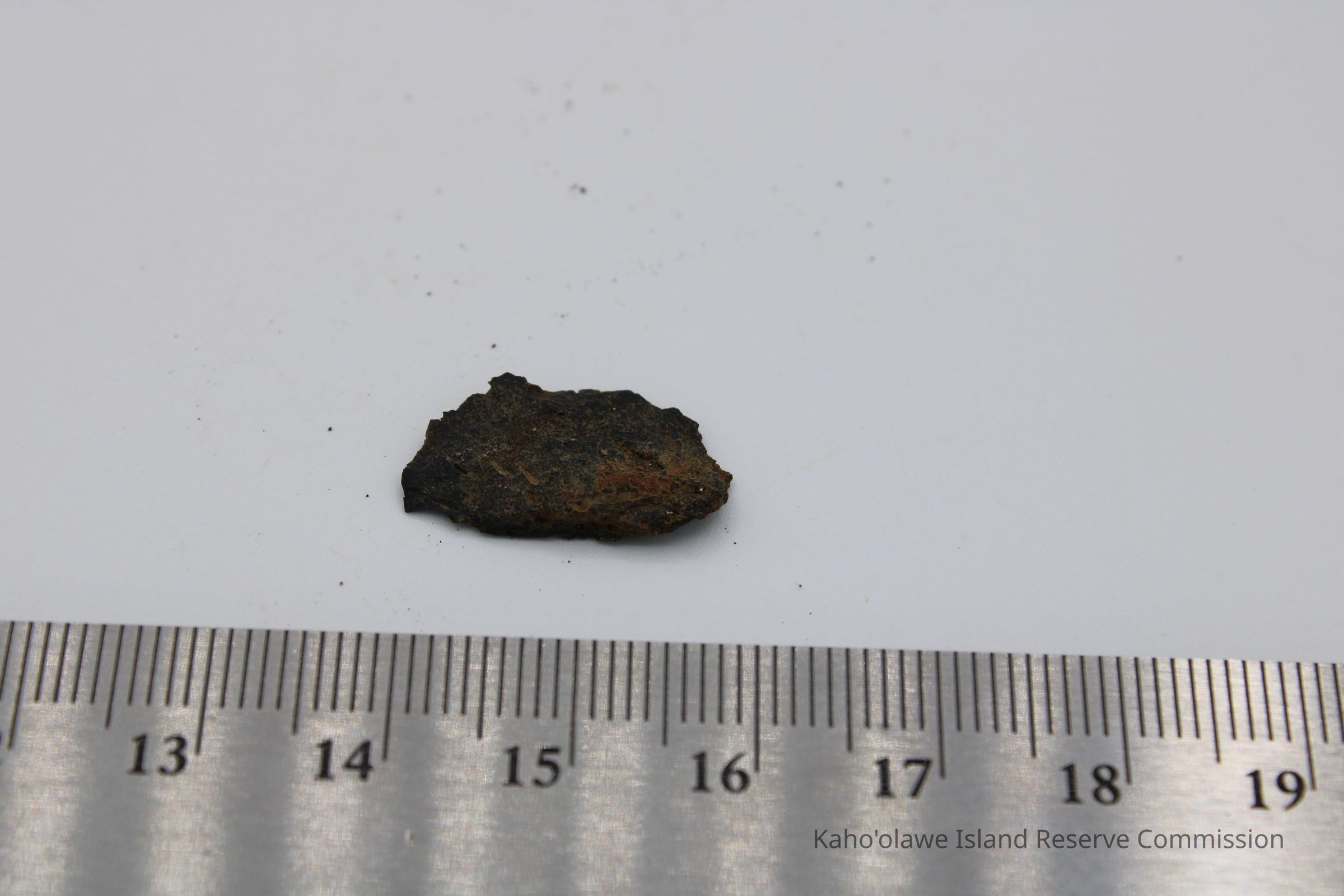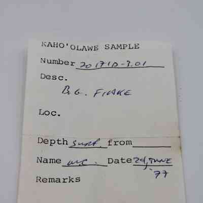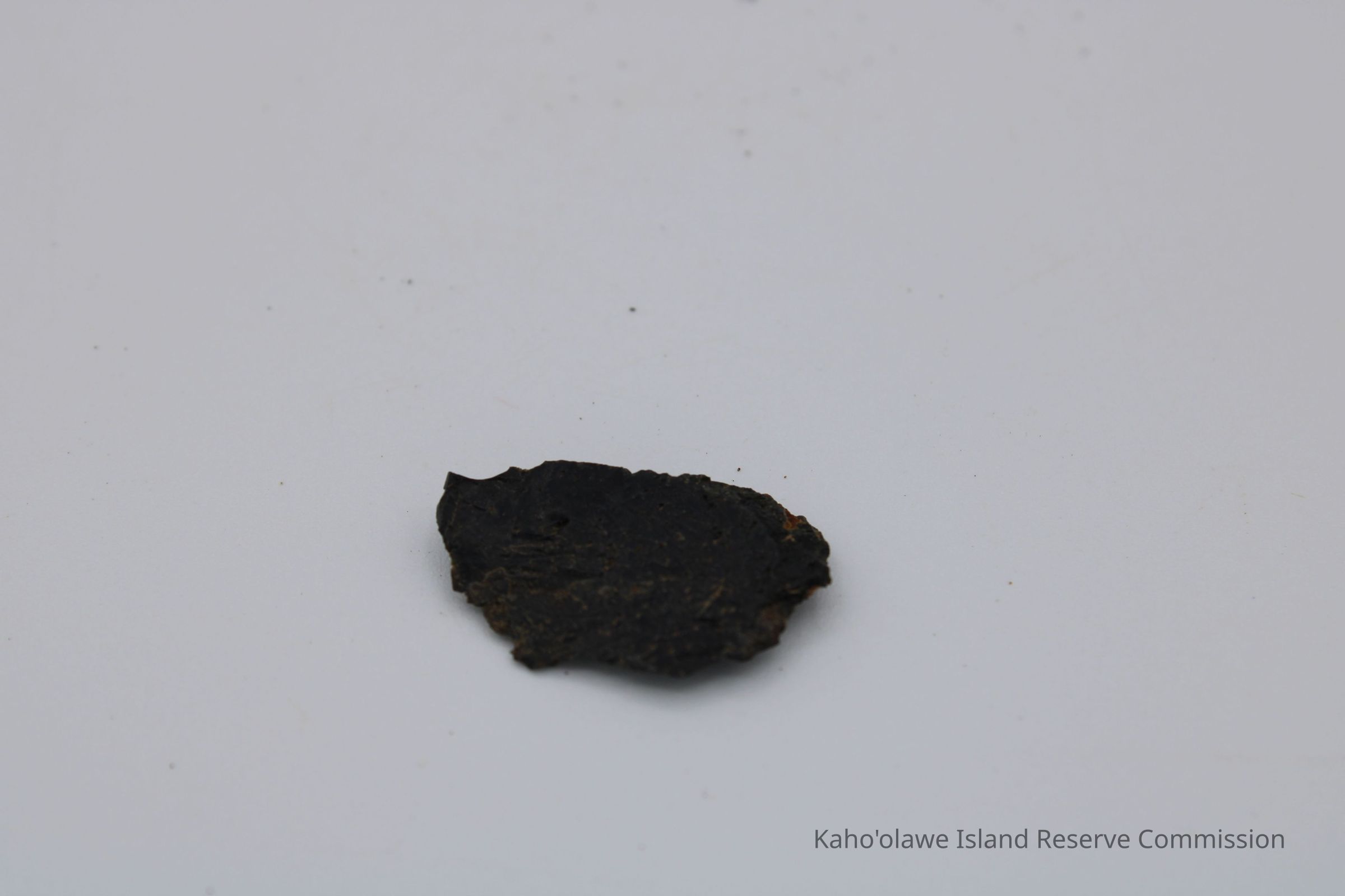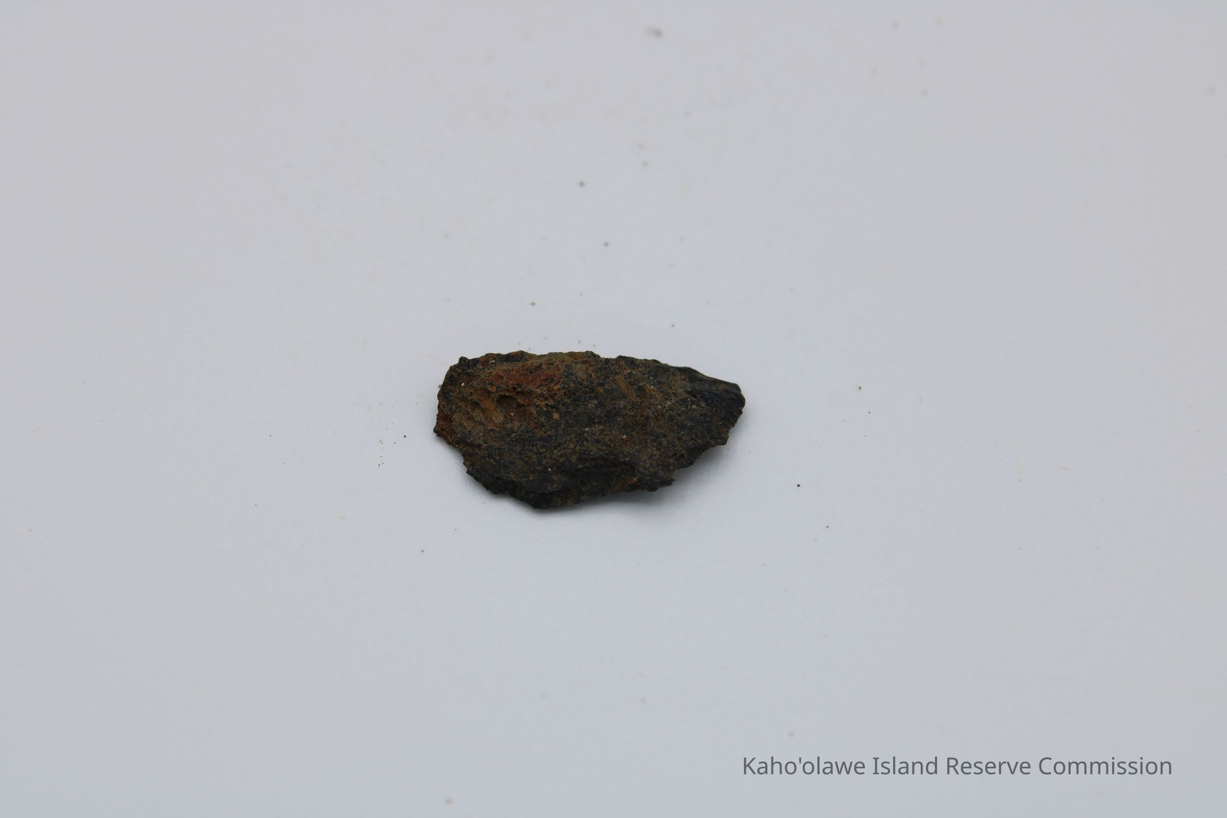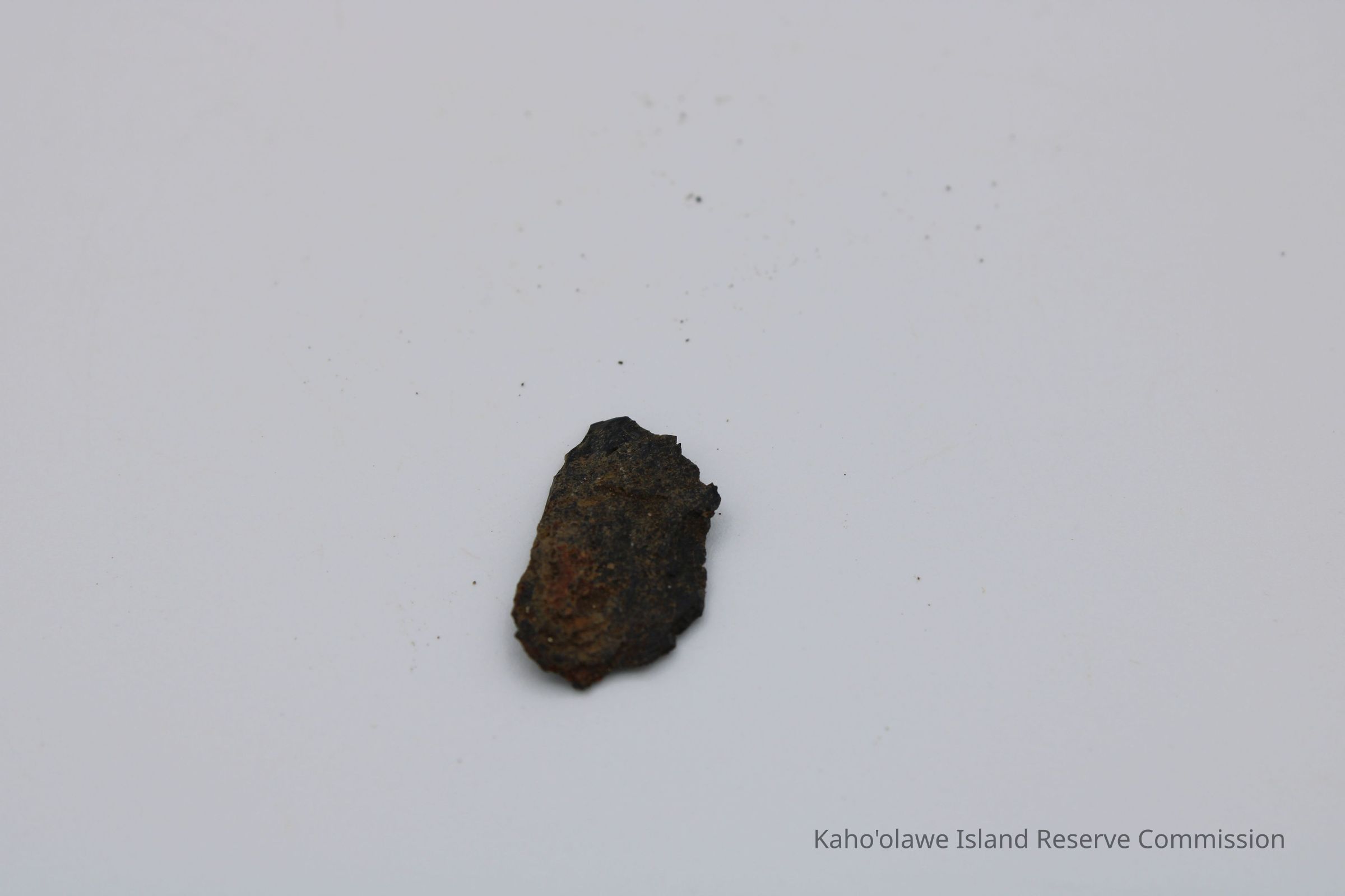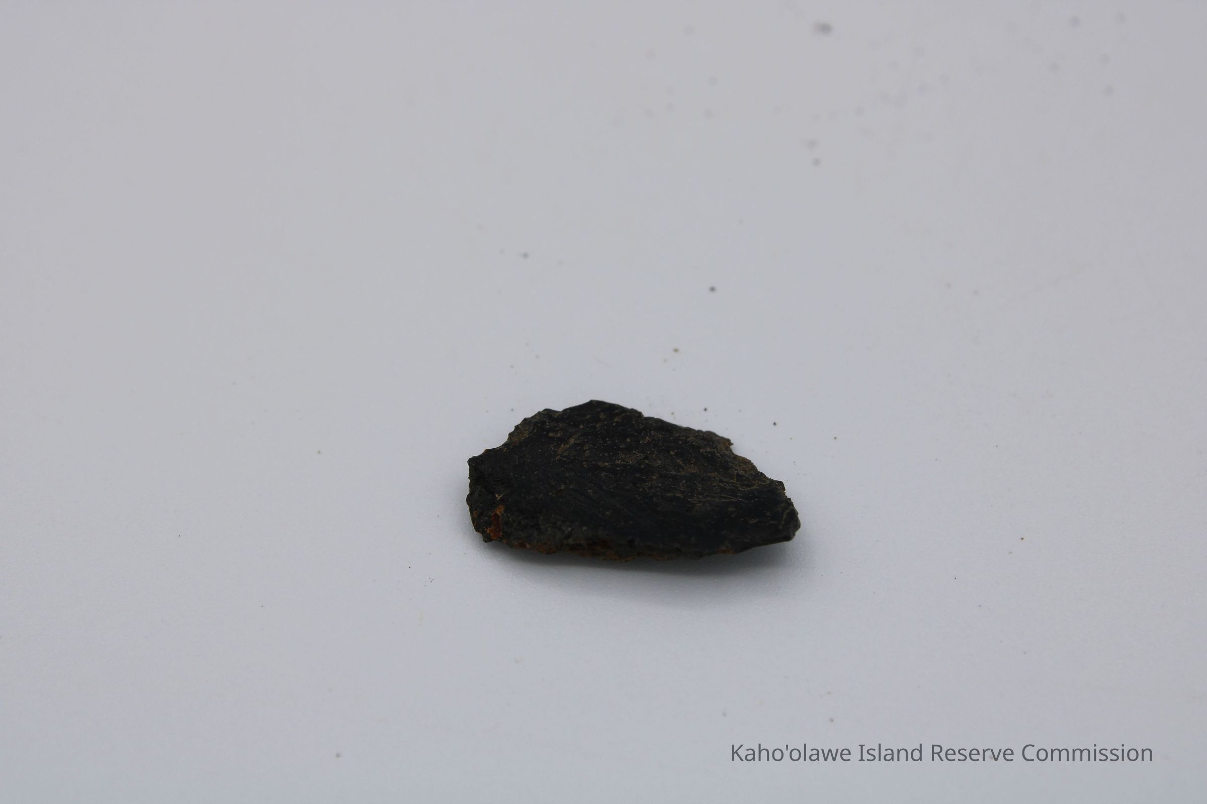 Small, irregularly-shpaed flake of basaltic glass with jagged edges and one smooth edge. Worked on one side. Flake may have been collected at D.H.P.11:00 am=25.5 degrees C per Sample Collection Record, [Hawai'i] State Historic Preservation Office.Collection