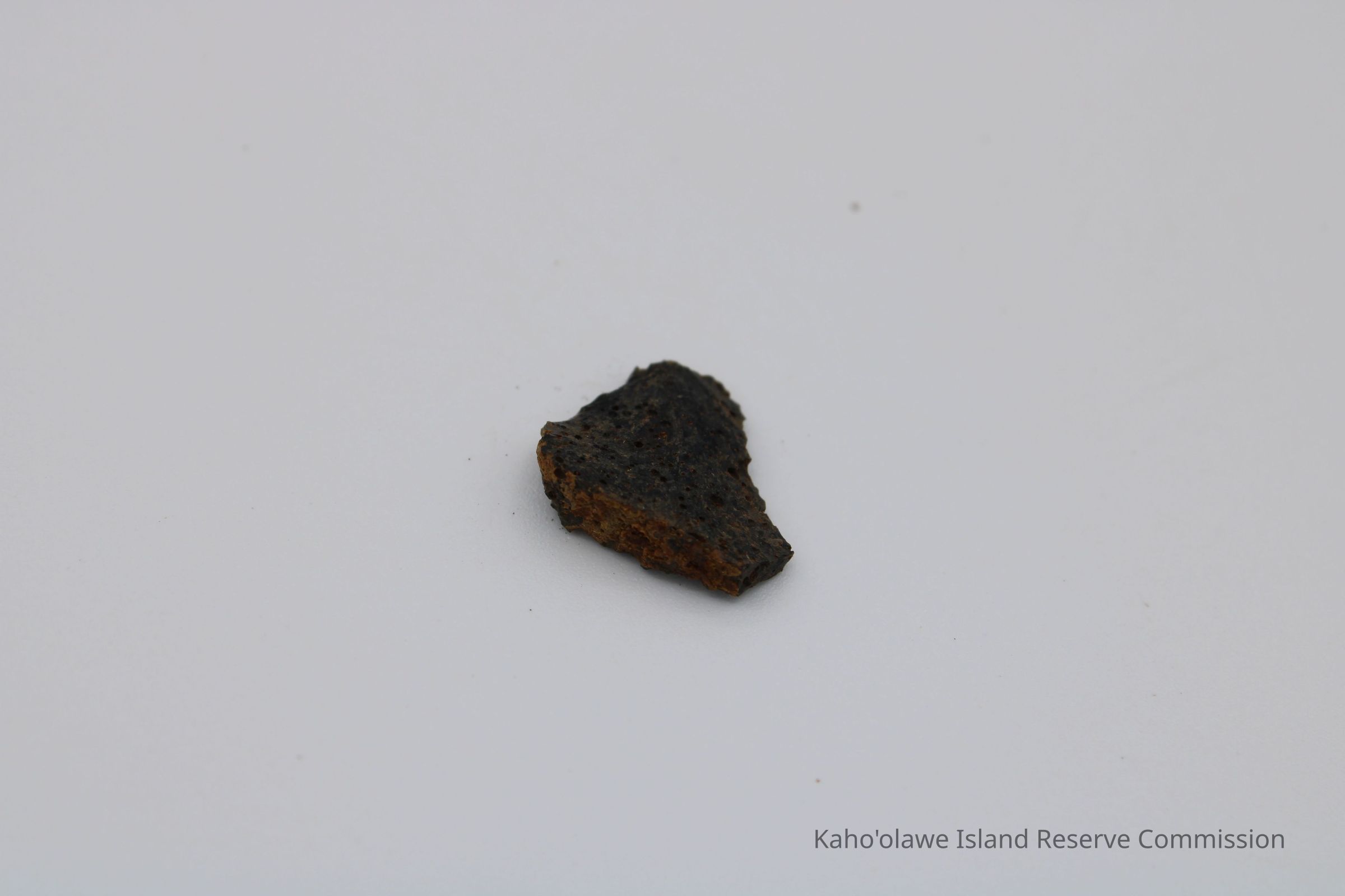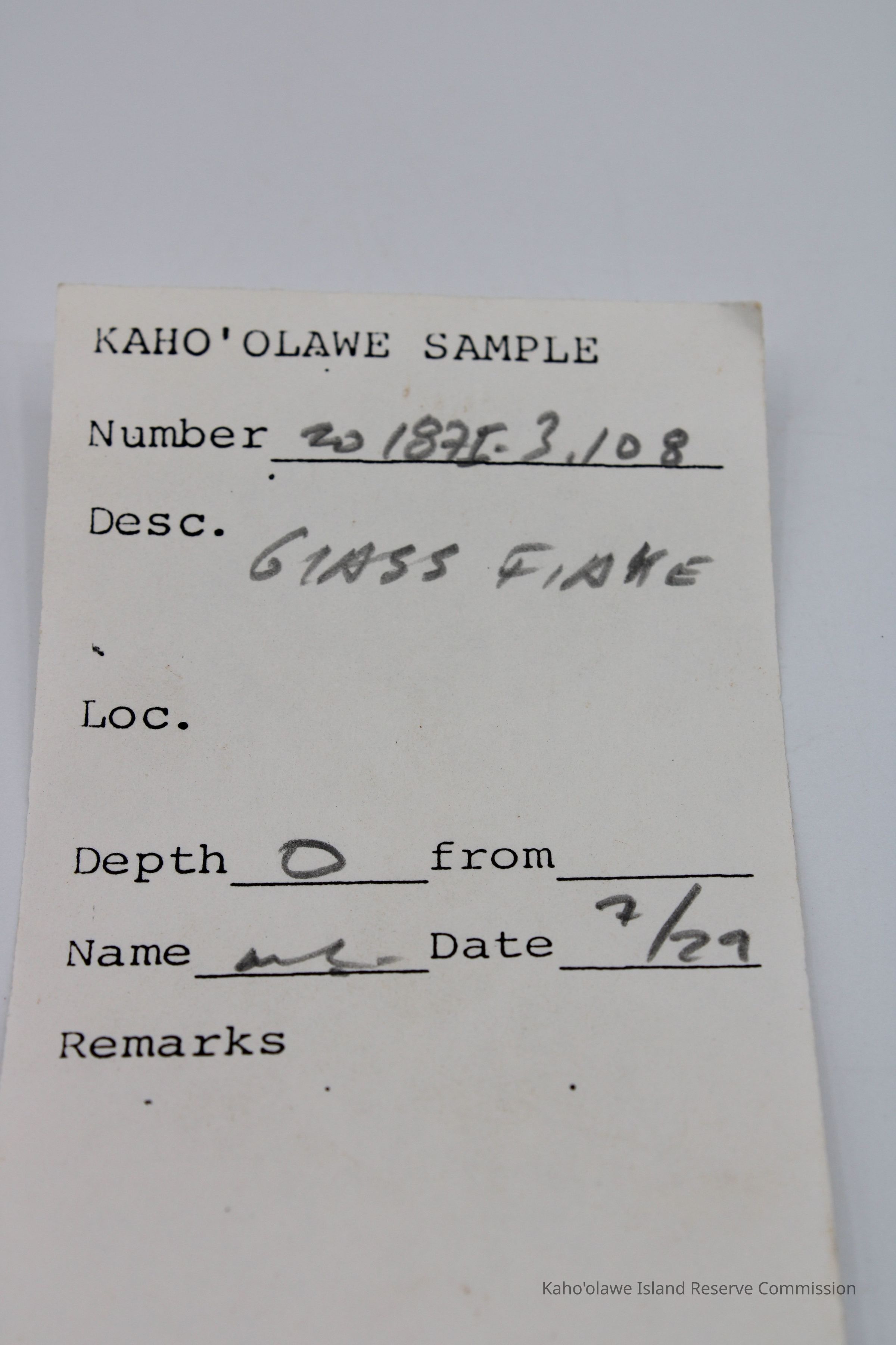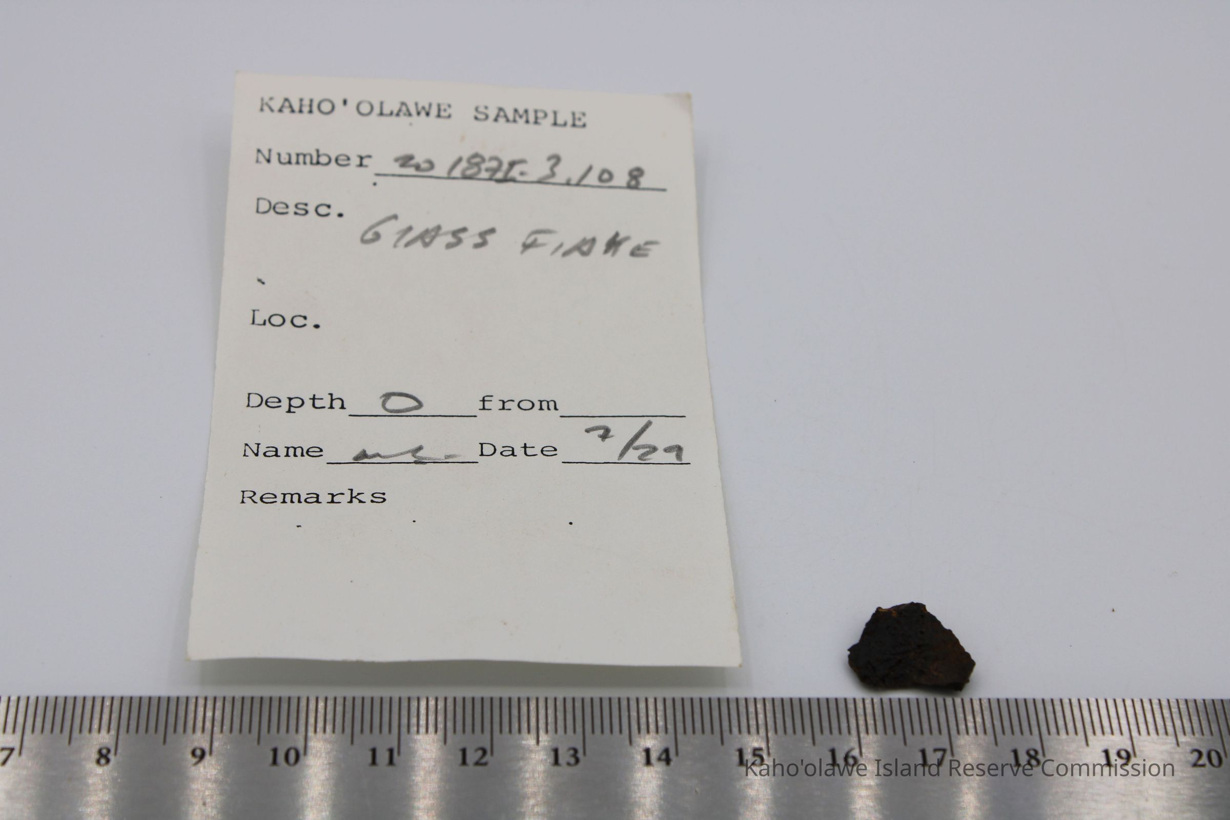 Small, semi-triangularly shaped flake of basaltic glass with one jagged edge.Collection