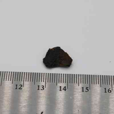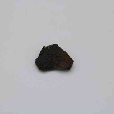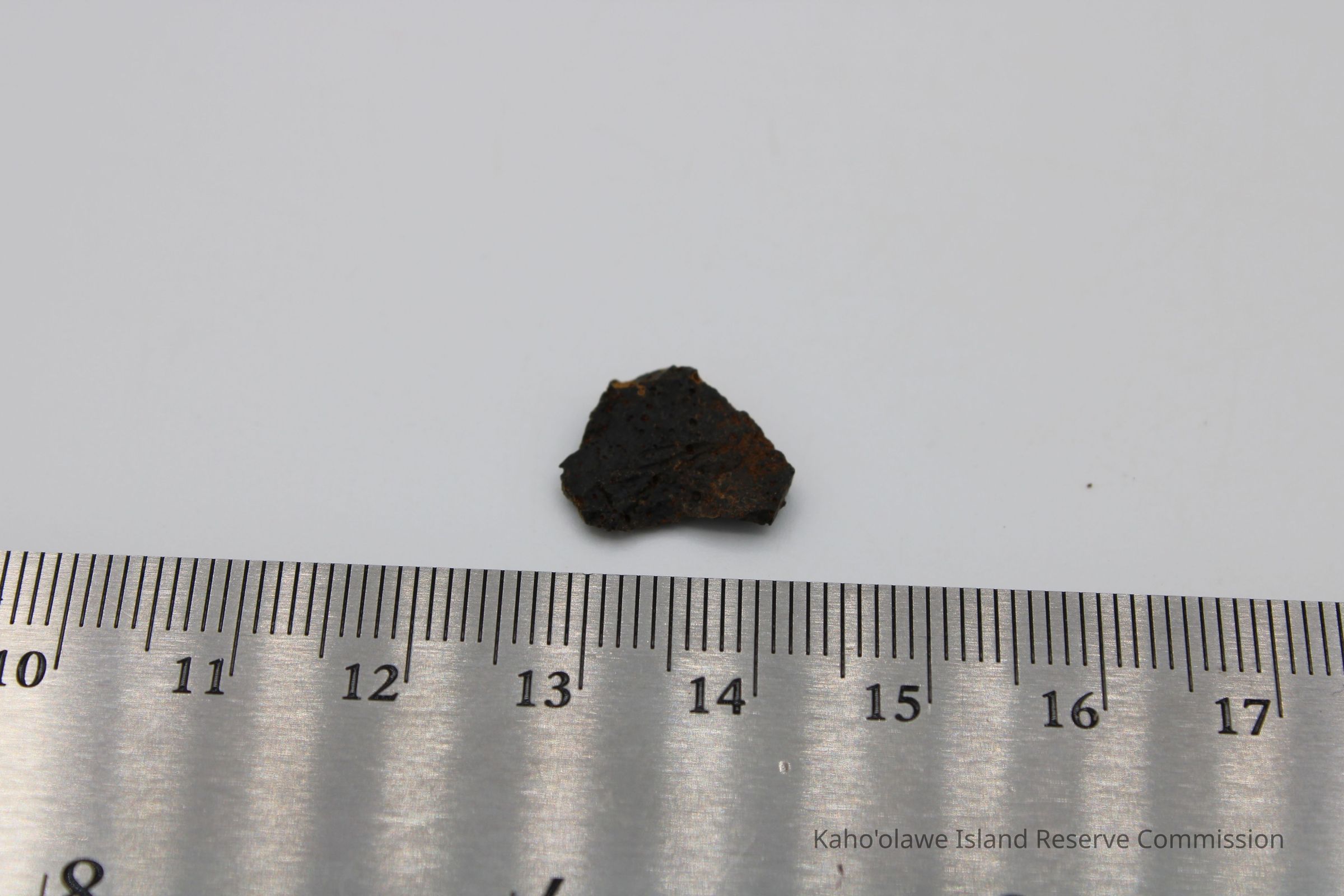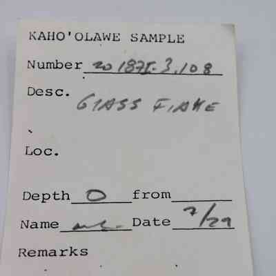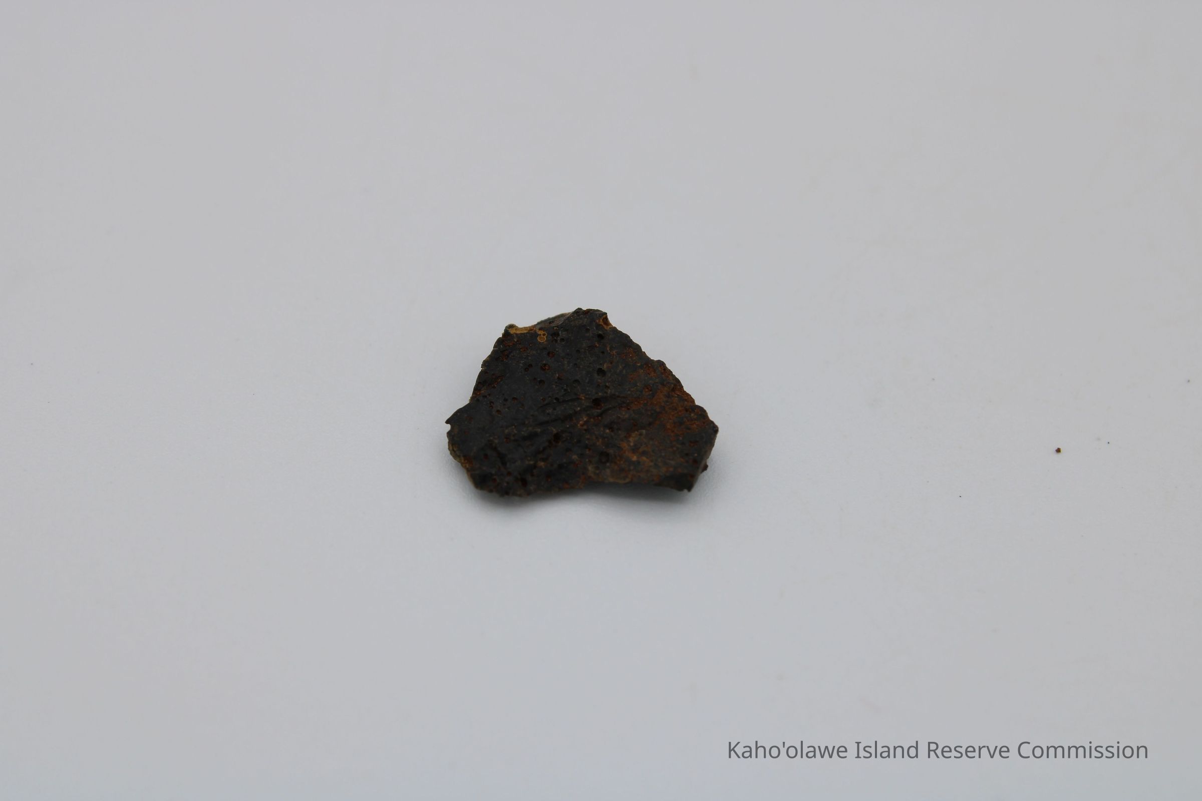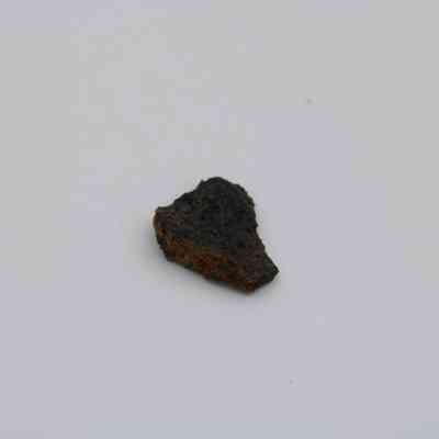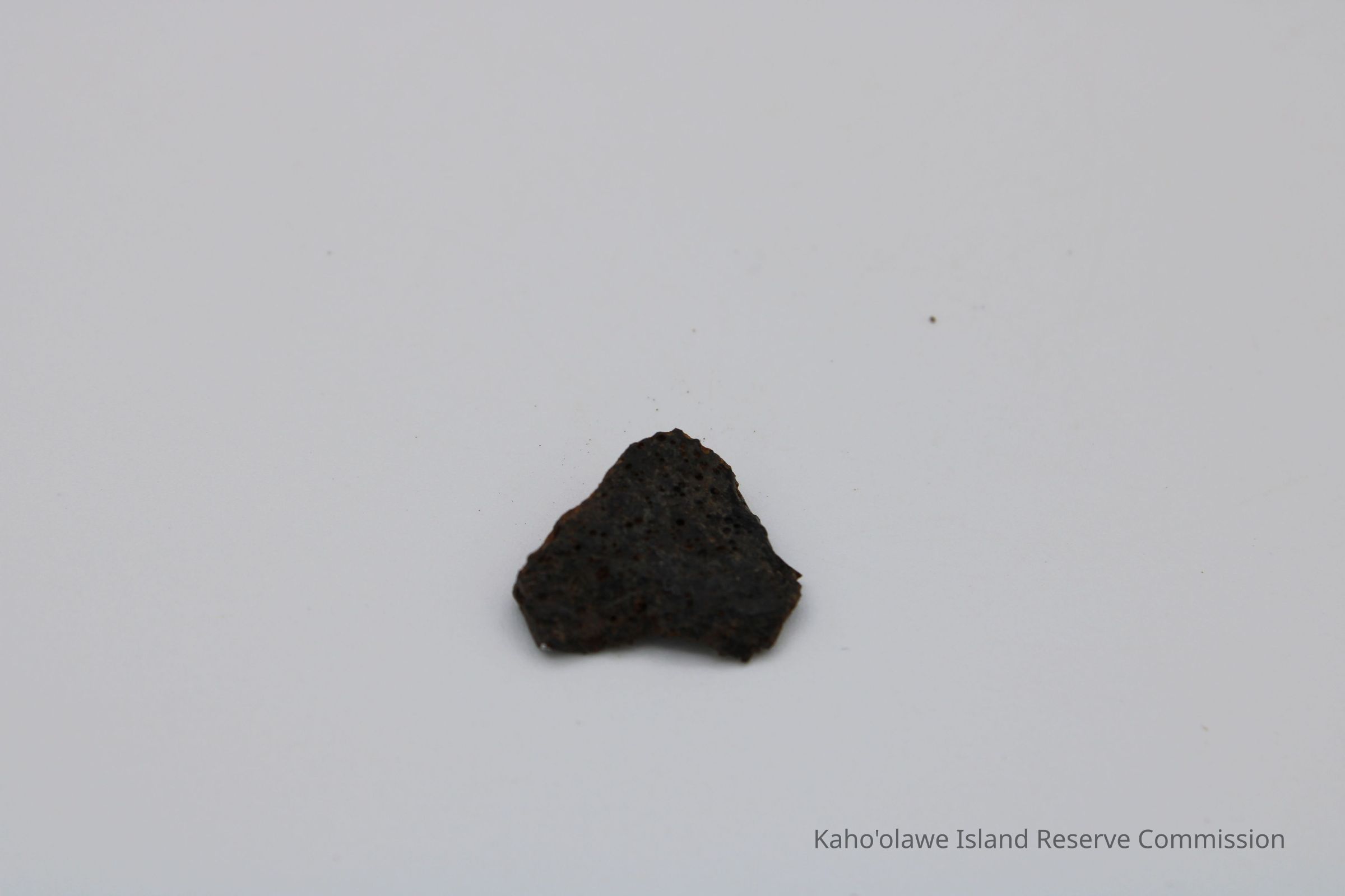Small, semi-triangularly shaped flake of basaltic glass with one jagged edge.Collection