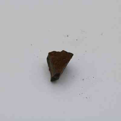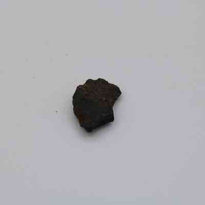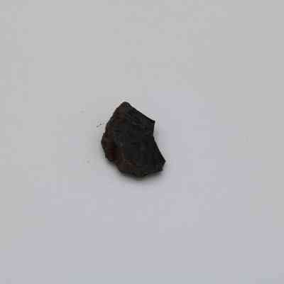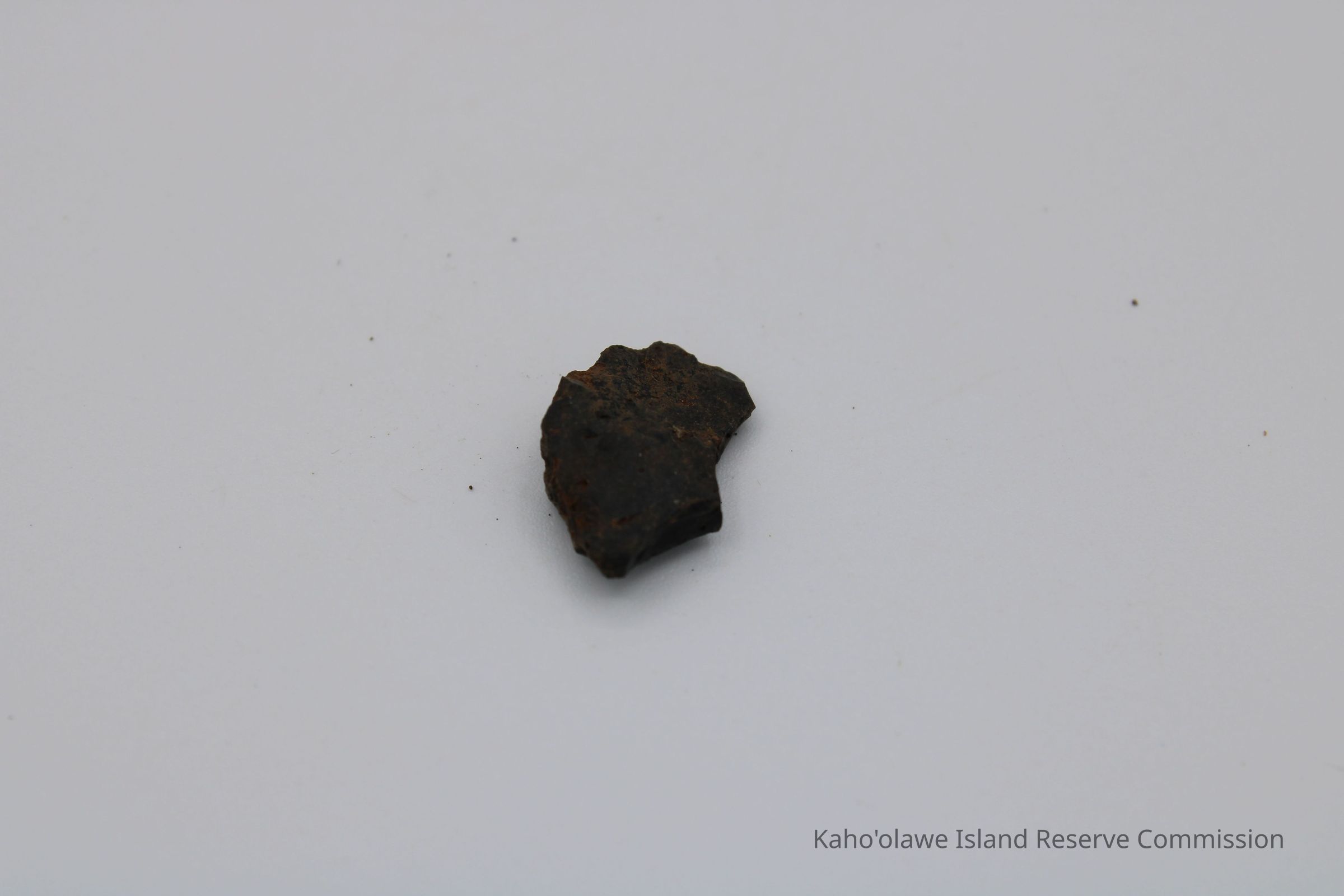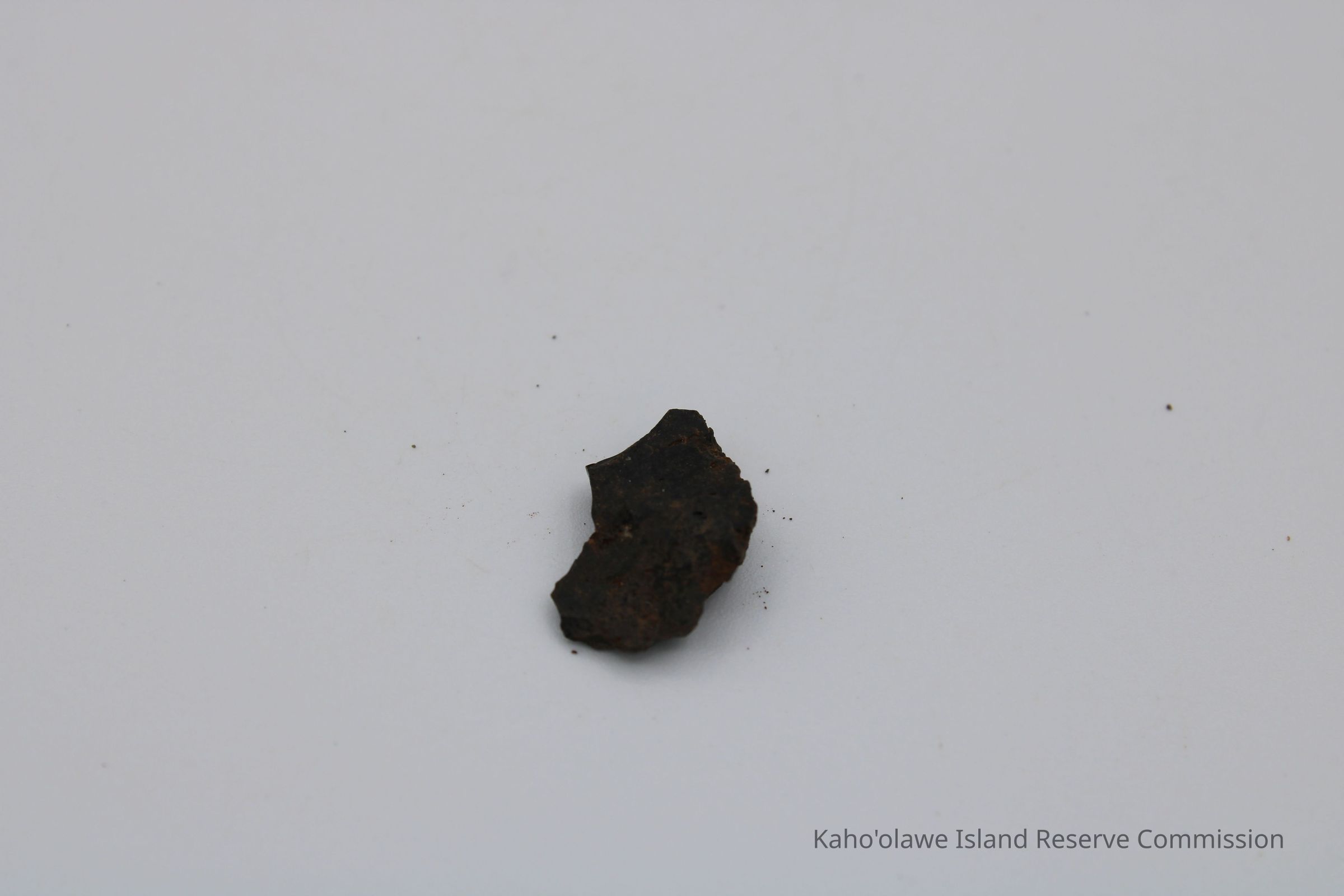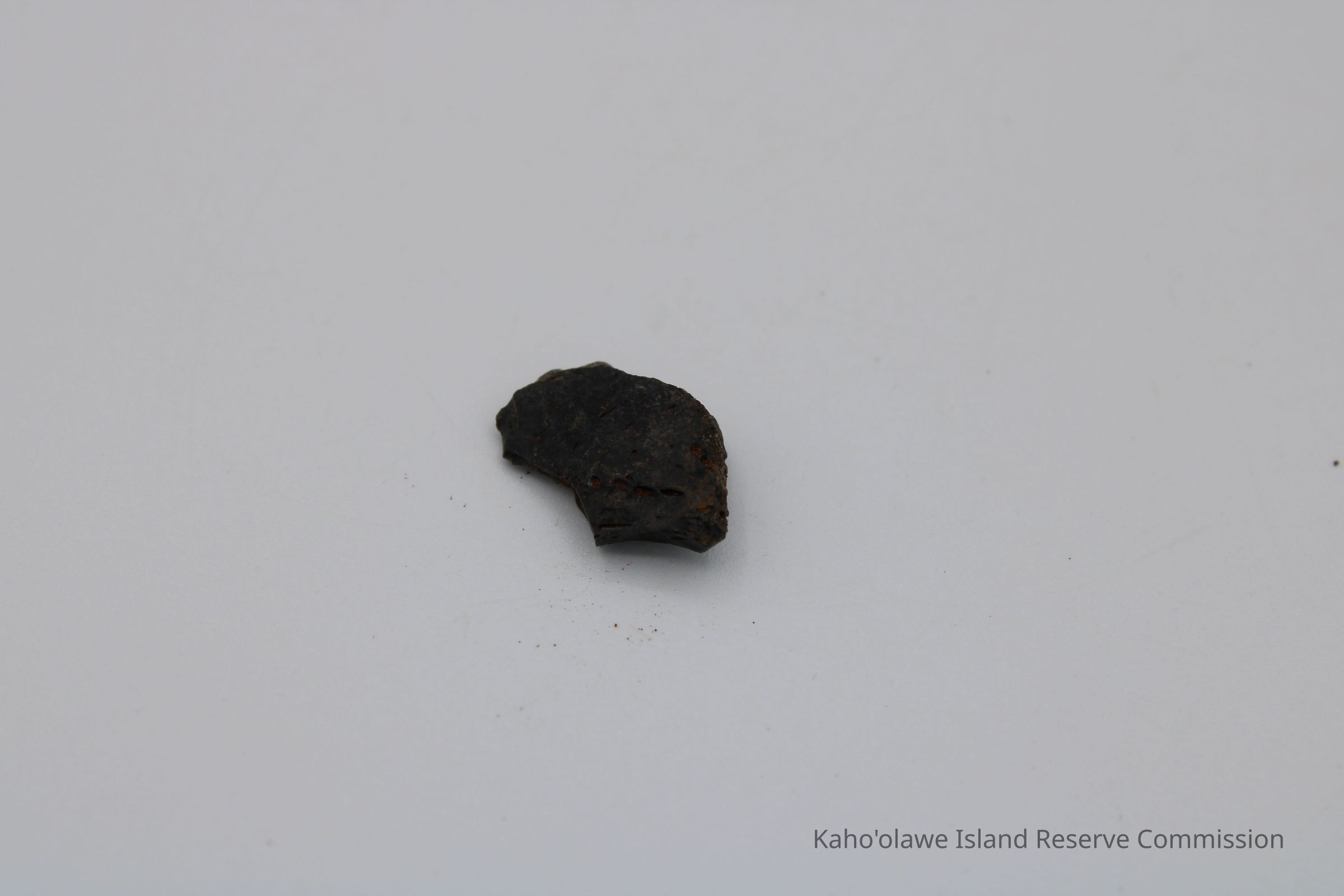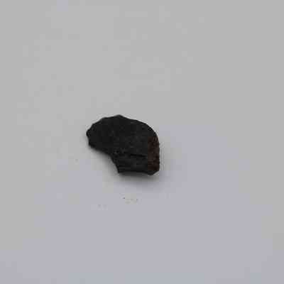 Tiny, semi-crescent shaped flake of basaltic glass with one jagged edge.Collection