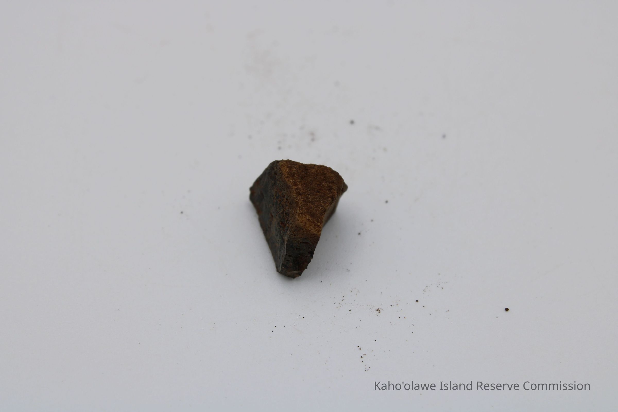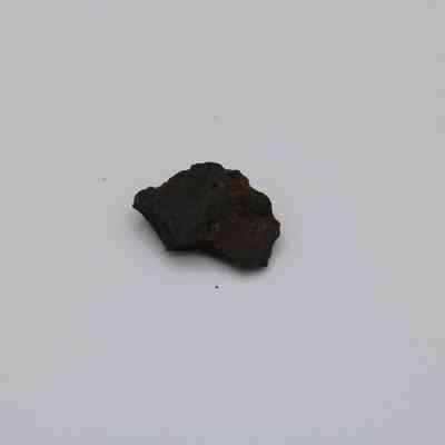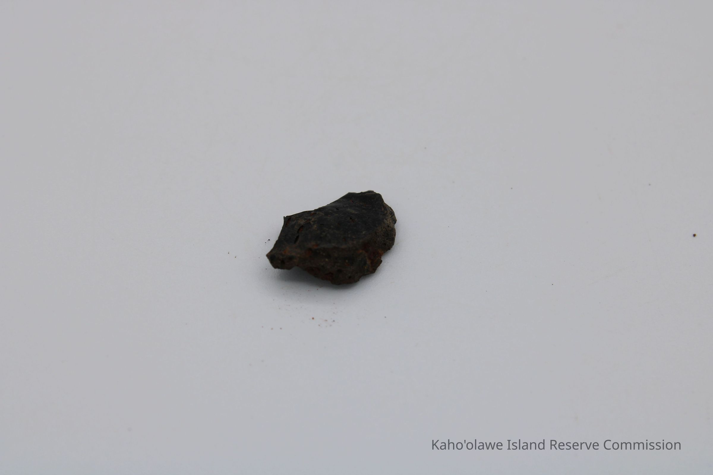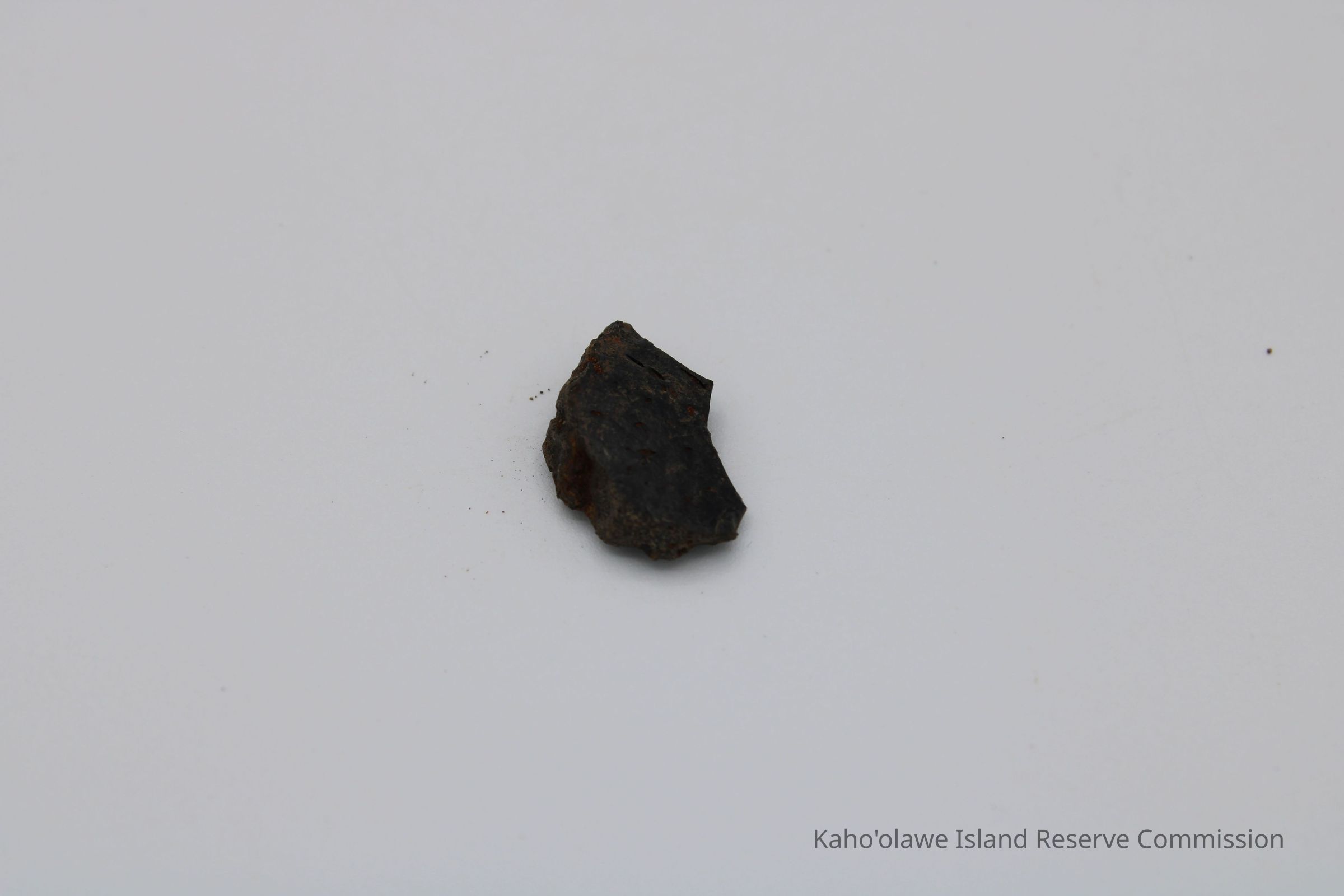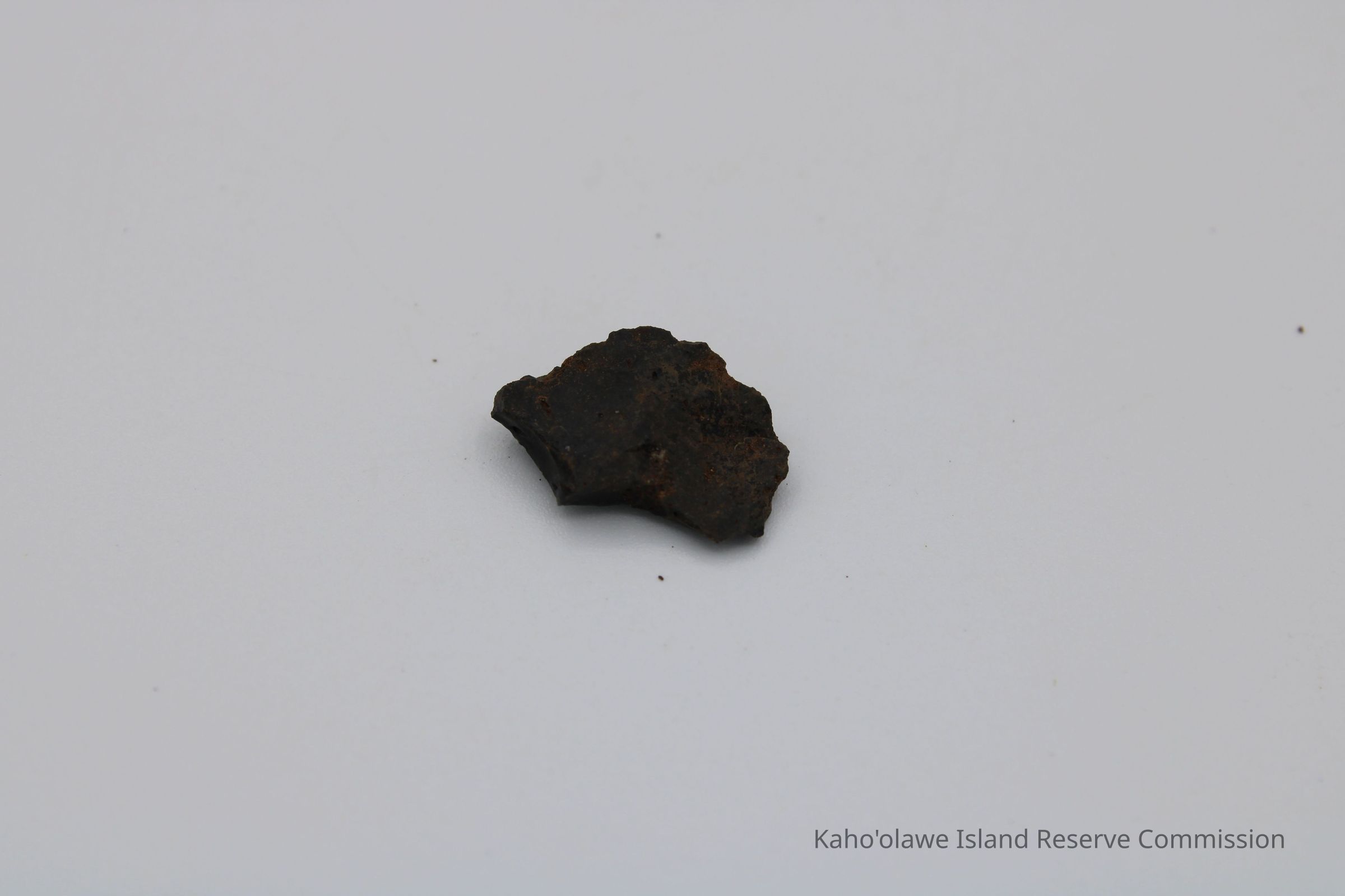 Tiny, semi-crescent shaped flake of basaltic glass with one jagged edge.Collection