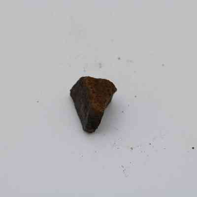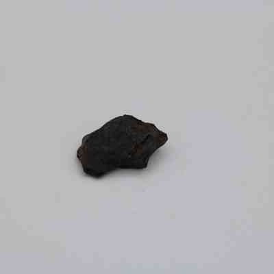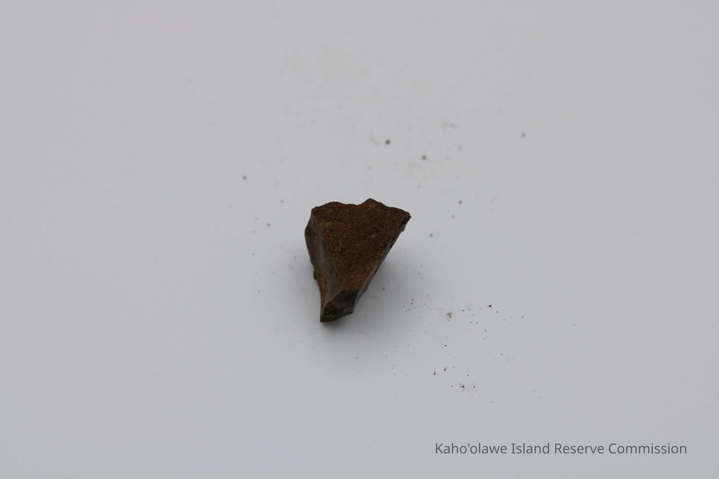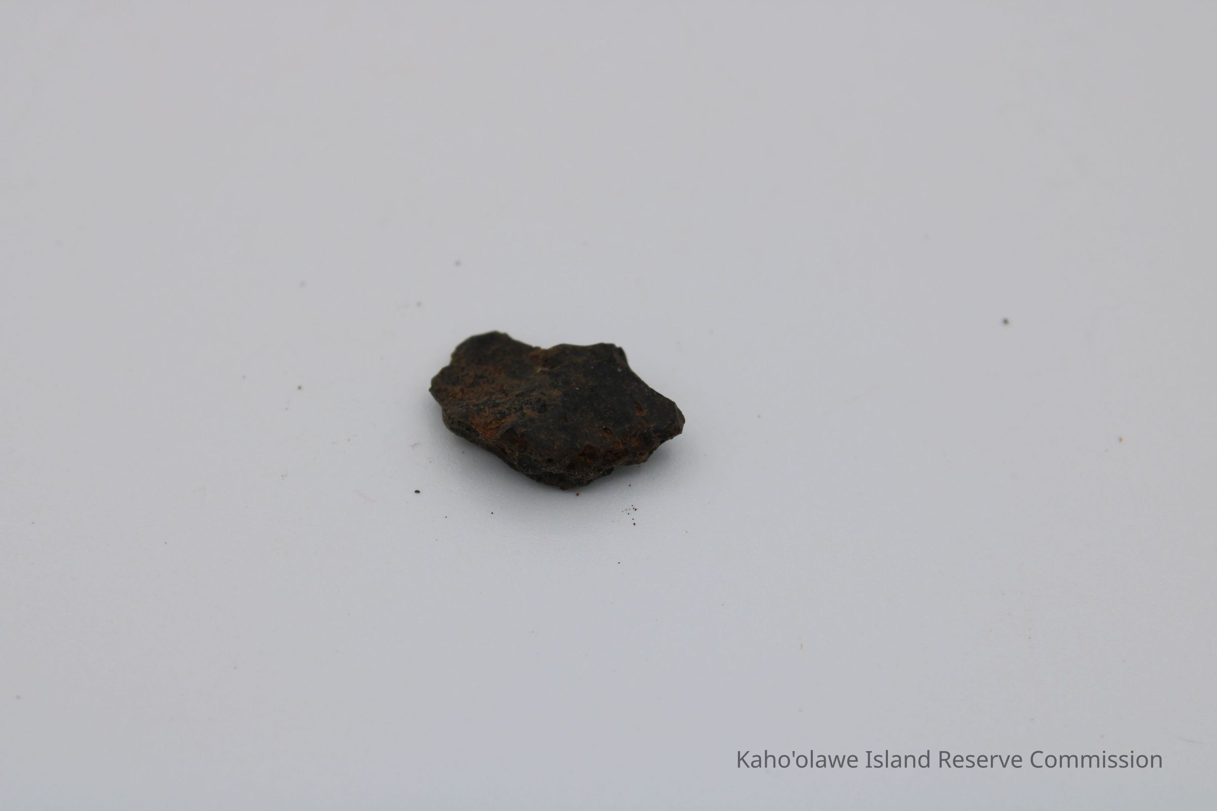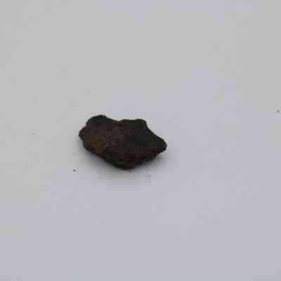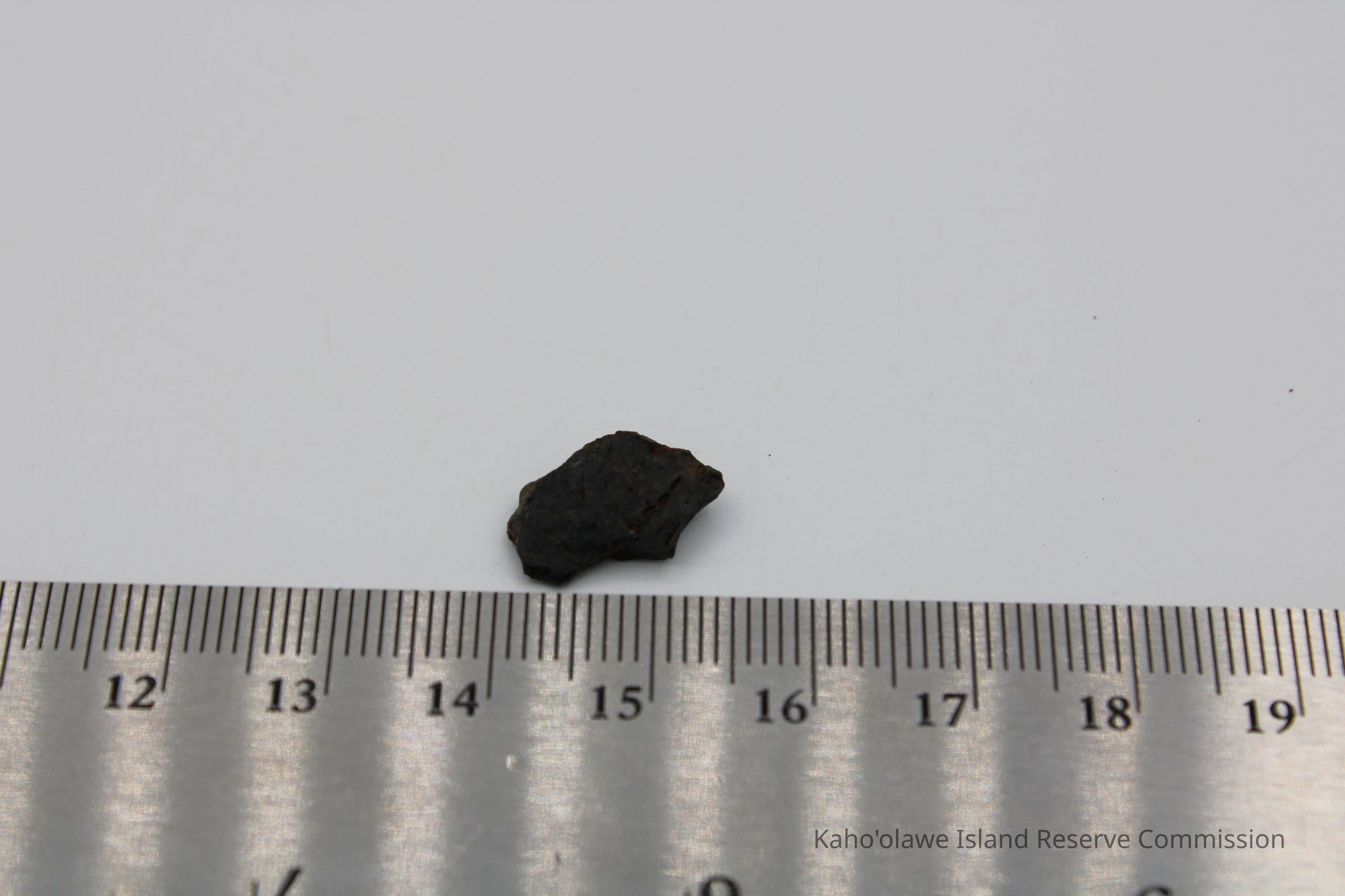 Tiny, semi-crescent shaped flake of basaltic glass with one jagged edge.Collection