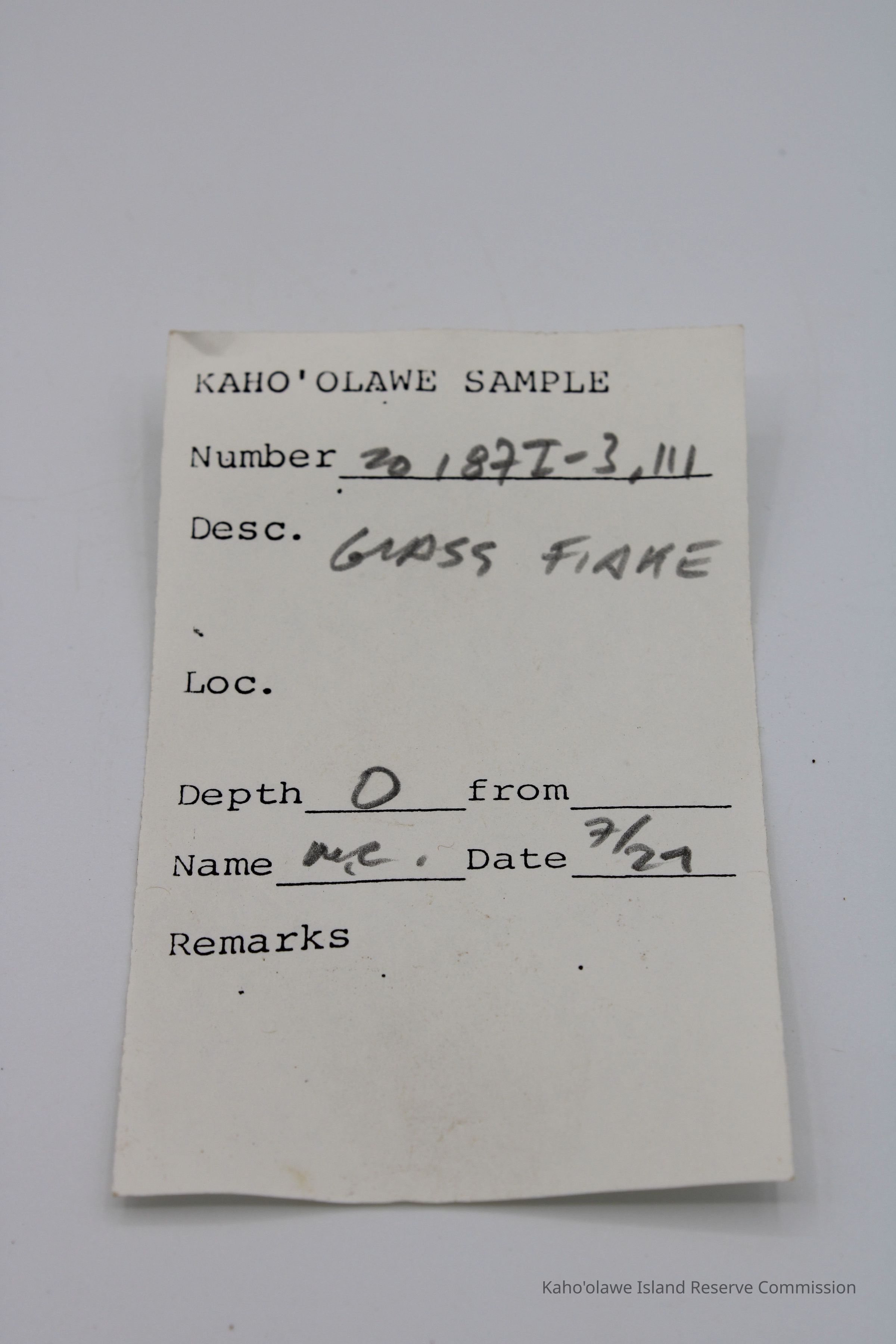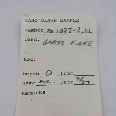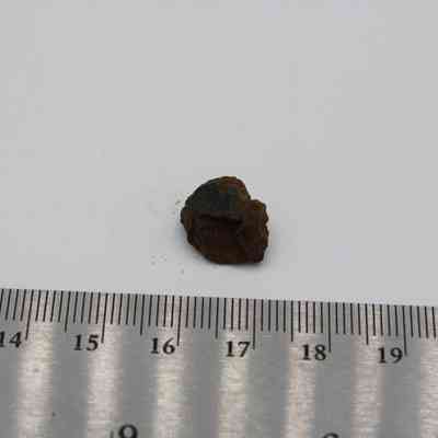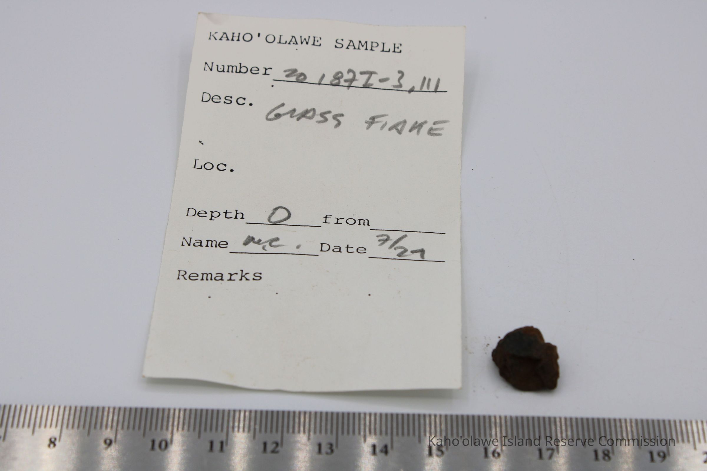 Tiny, semi-circular shaped flake of basaltic glass.Collection