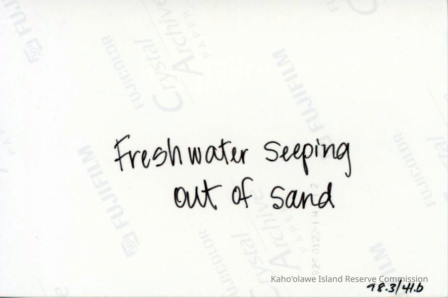 Photo of freshwater seeping out of sand along a beach, possibly in the Kuheia area.Collection
