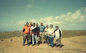 Film negative image of a group of people at Luamakika Crater: (left to right) Mark Tsuha, Russell Kaikamalie (front), Range Control person (back), Unidentified (back), Mike Mullen, unidentified, Hokulani Holt and Lei Ishikawa.Collection