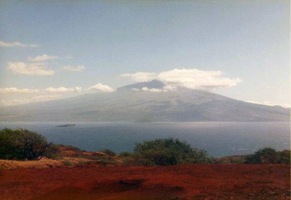 Color photo of Haleakala taken from Kaho'olawe at an unknown location. Photo taken during Legal Aid Society (Moloka'i) access.