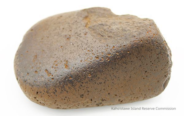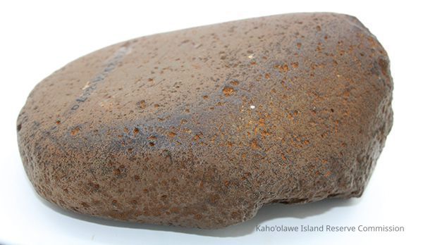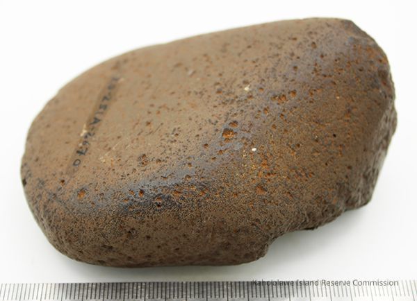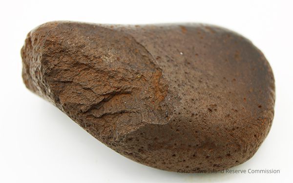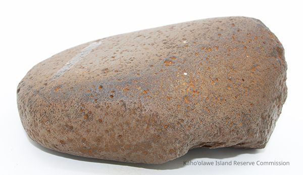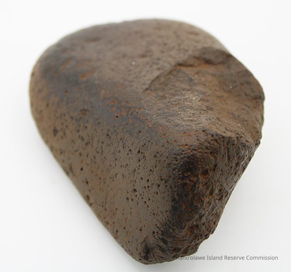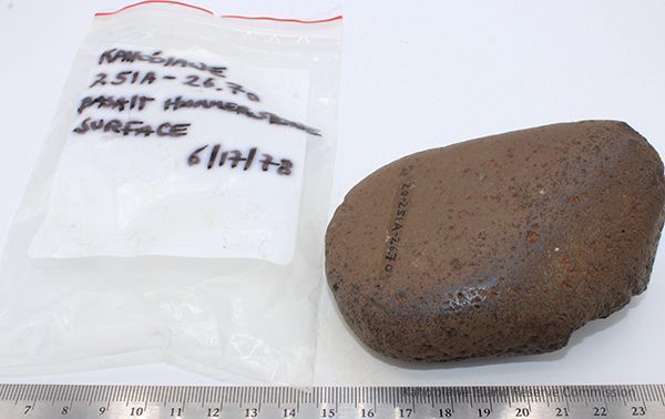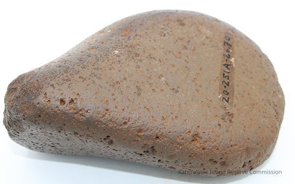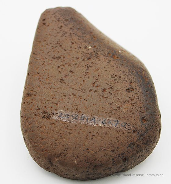 Intact dark brown basalt oval shaped hammerstone. One side is fairly flattened due to continuious striking. Alternate id number is handwritten in black ink on one side.Collection