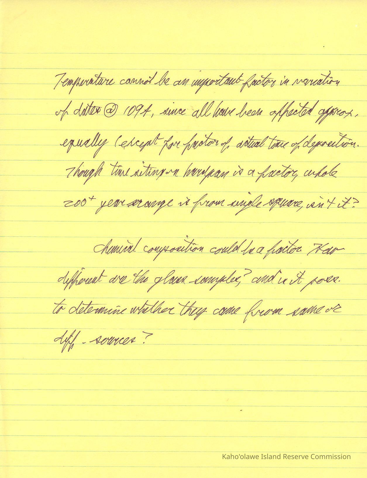 One page of hand written notes regarding the dates at Site 109 Feature A. One graph sheet for Site 109C showing unknown data.Creator