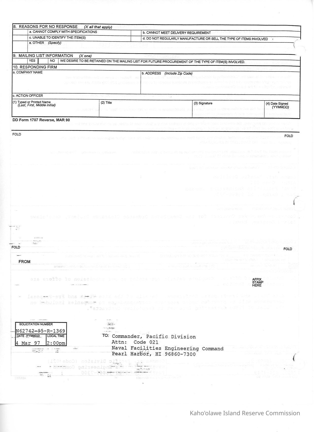 Information to Offerors or Quoters for the Cost-Plus-Award-Fee Contract for the Unexploded Ordnance Clearance Project, Kahoolawe Island Reserve, Hawaii. Also contains glossary and documents regarding PACDIV Organization. Four archivally safe folders containing 2 documentsCreator
