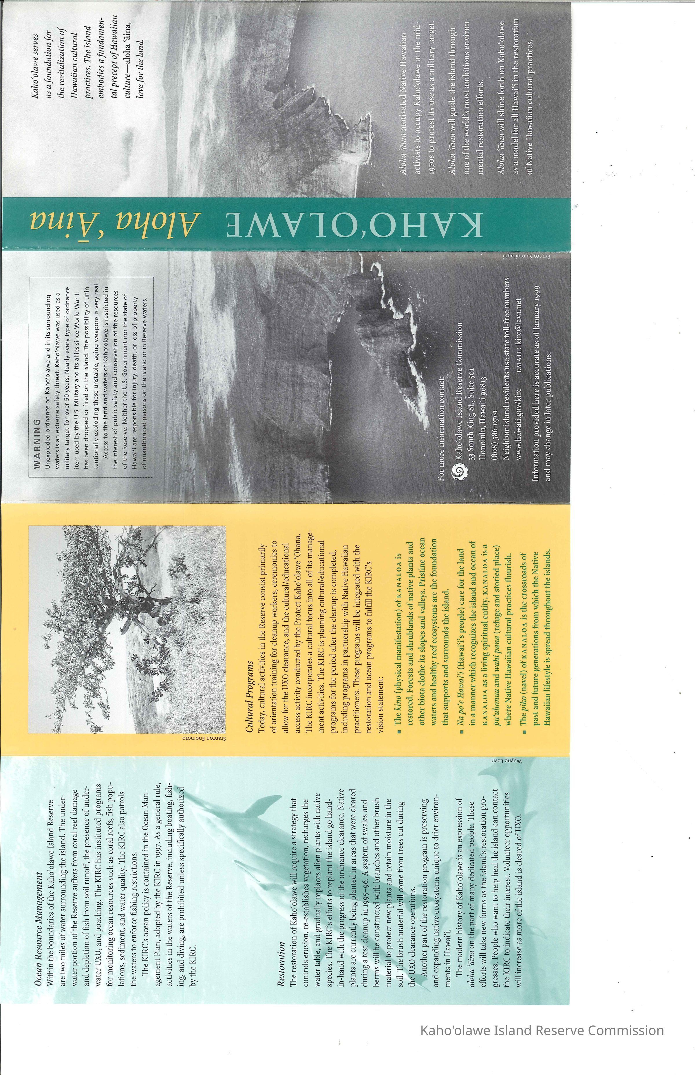 Pamphlet titled "Kaho'olawe: Aloha 'Aina."Creator