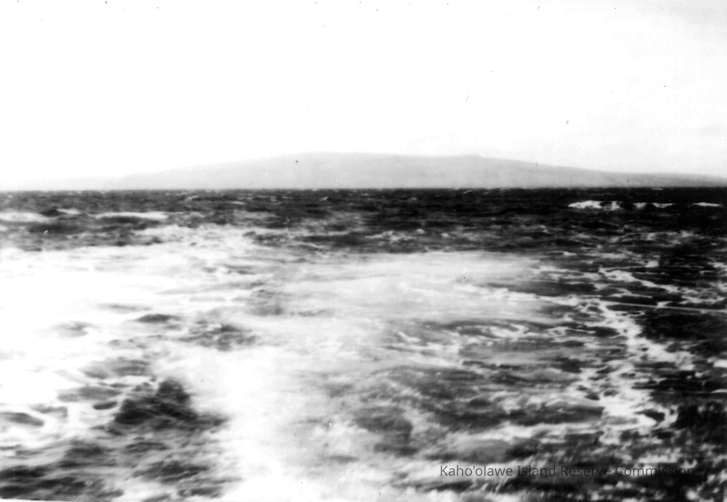 Digital image of black & white print of ocean with Kahoolawe in the background.