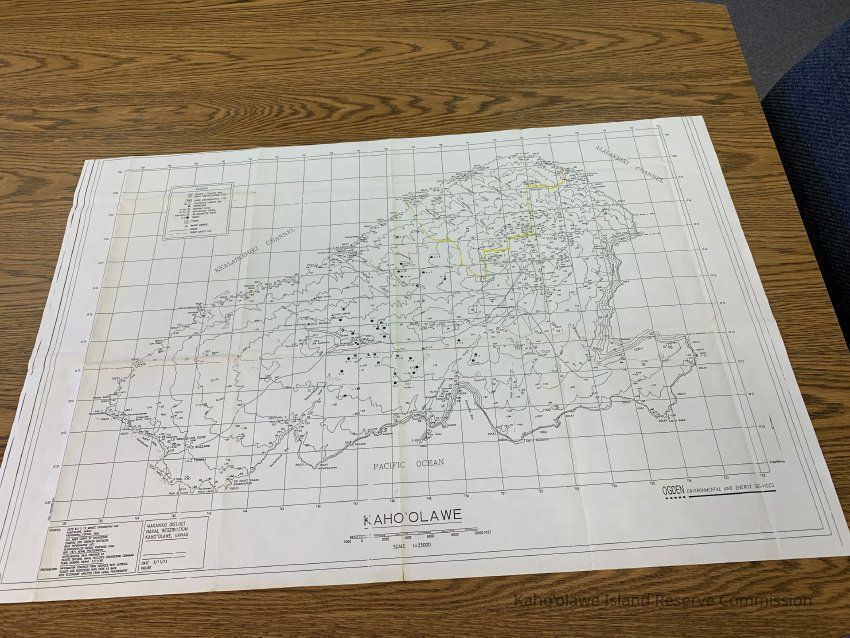 Map of Kahoolawe with yellow highlight drawn around section on northern side of island.Creator