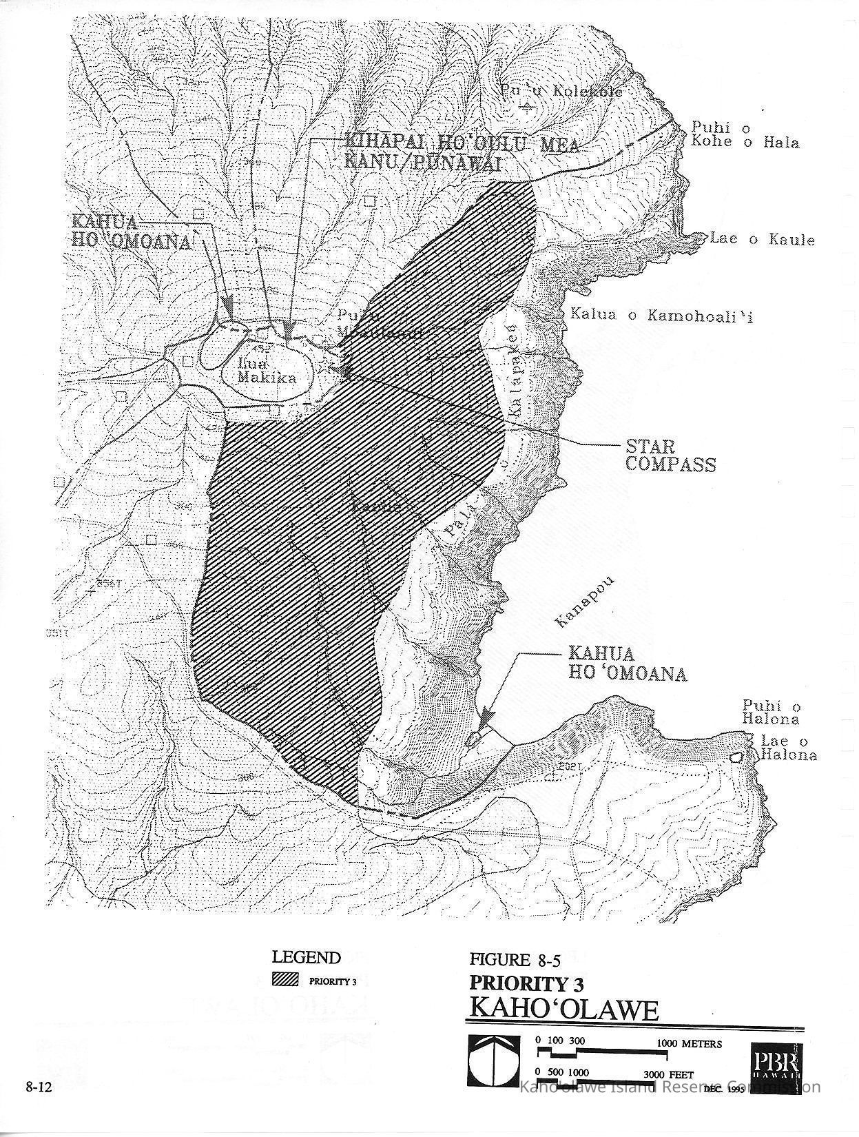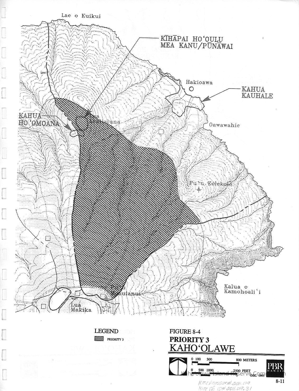 Maps of Kaho'olawe, Priority 3. Two maps of Kaho'olawe labeled Figure 8-4 & 8-5 for an unknown publication. They contain places names.Collection