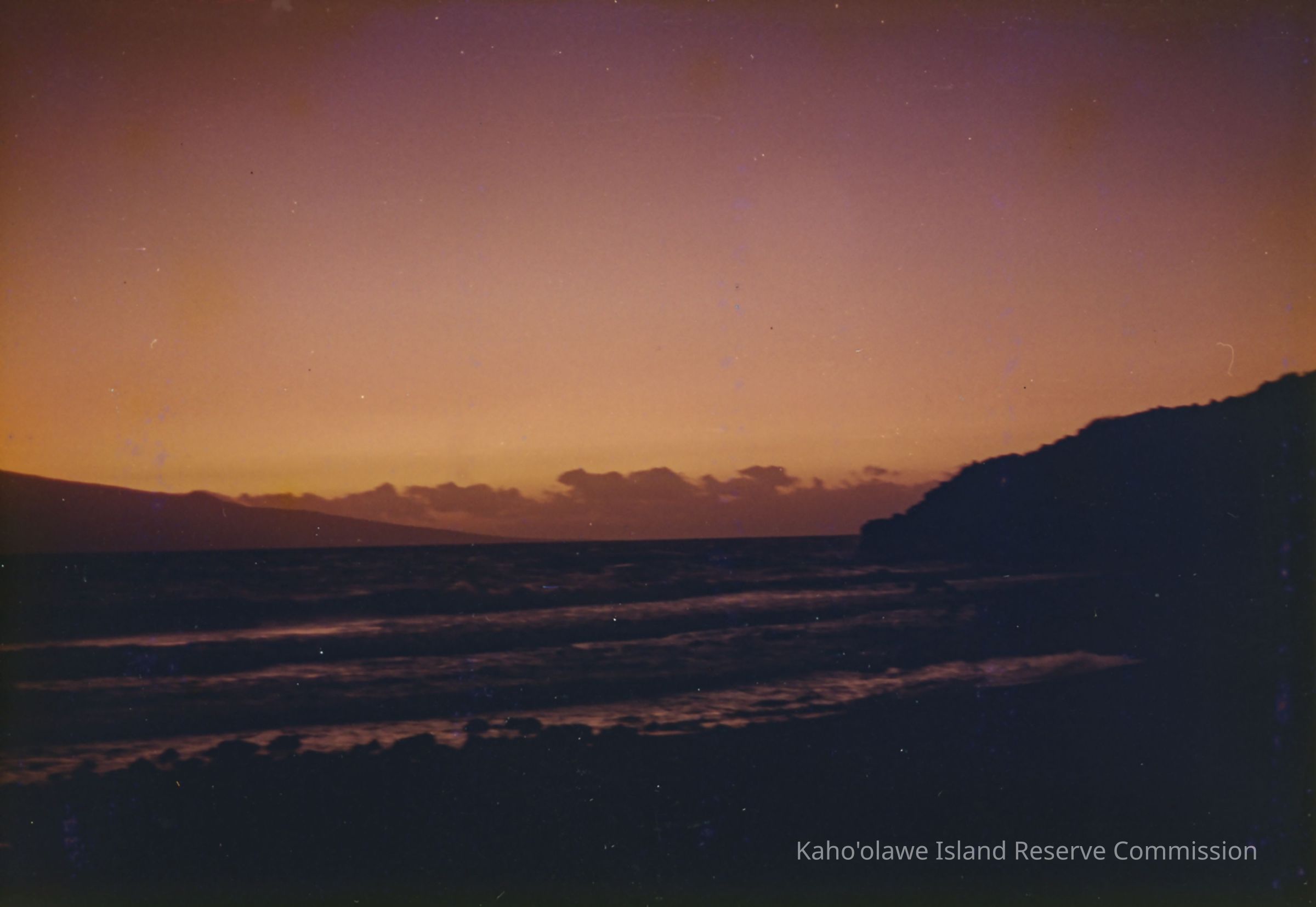 Colorful sunrise with Maui in the background as seen from Kaho'olawe.