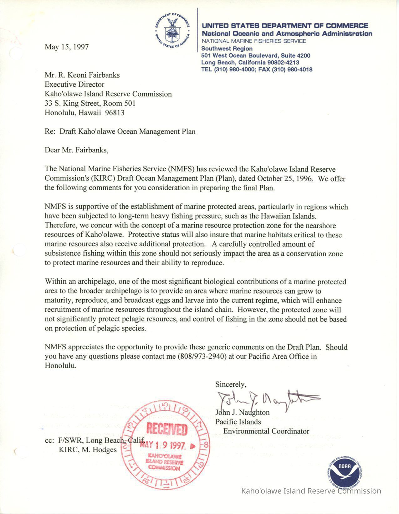 Fishing, Government & Politics, Marine, administrative records, comments, public, correspondence, management plans, marine resources, NOAA, ocean resources, Ocean Resources Management Program (ORMP), Ola I Ke Kai O Kanaloa, resource management