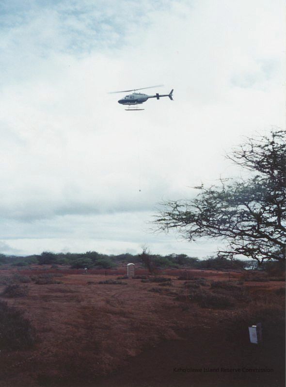 A photo of a helicopter long lining, possibly in the Lua 'O Kealialalo area.