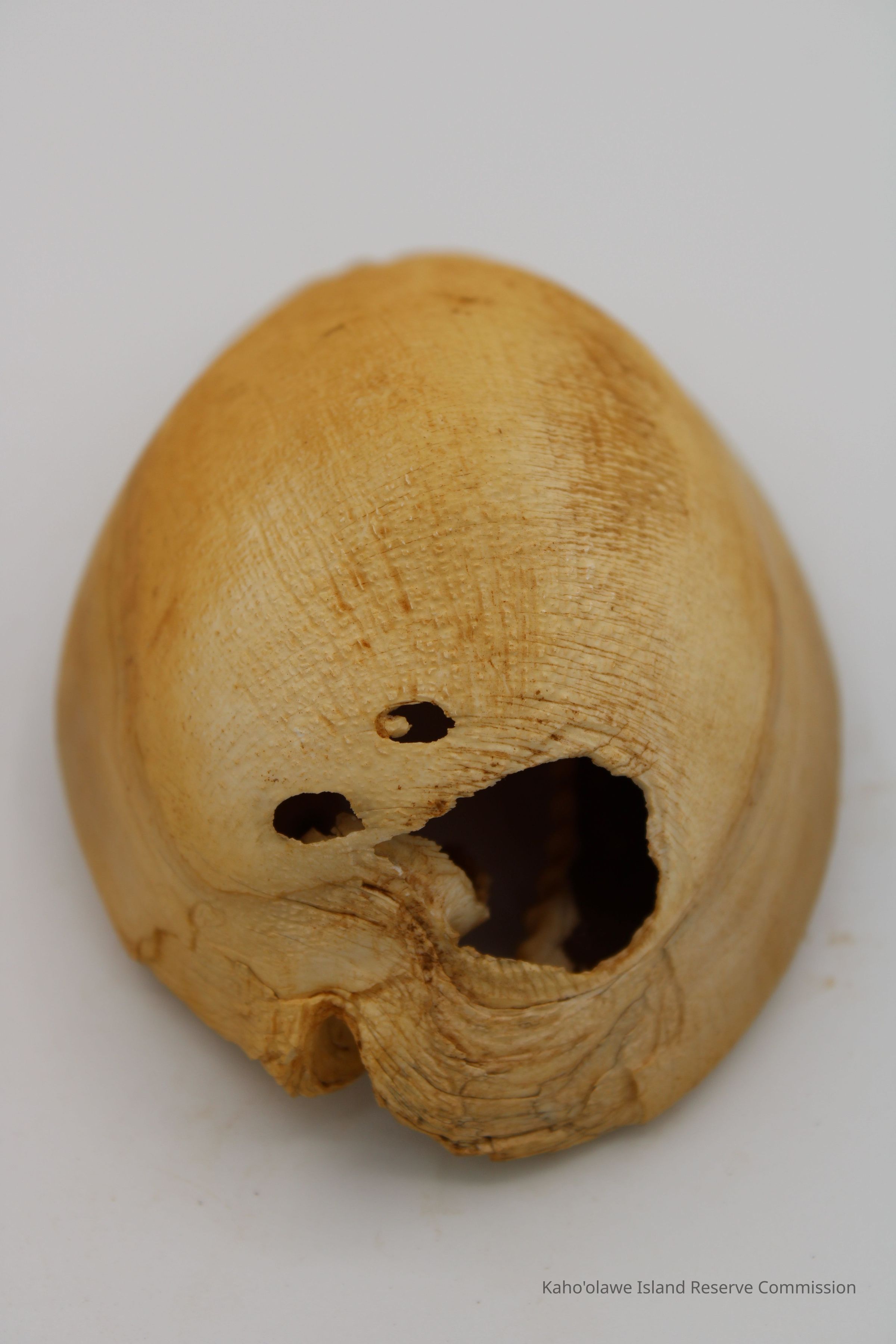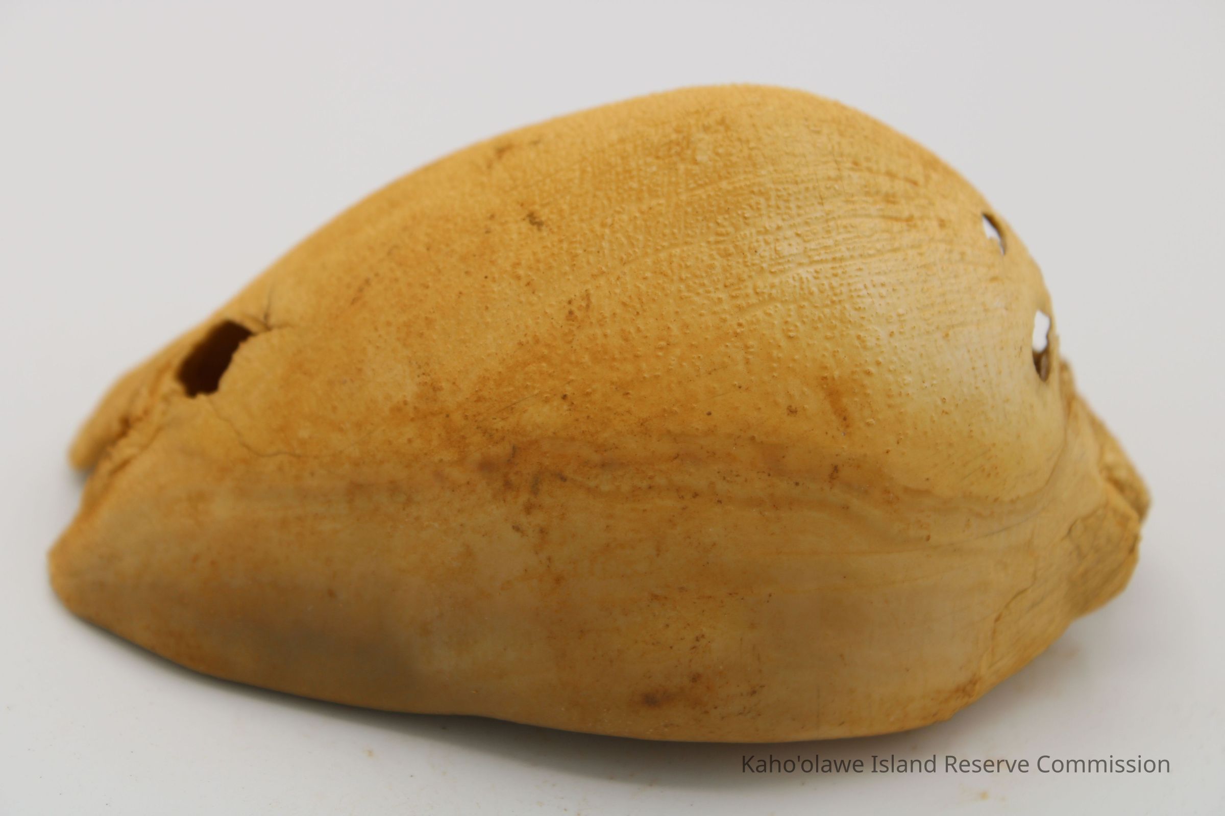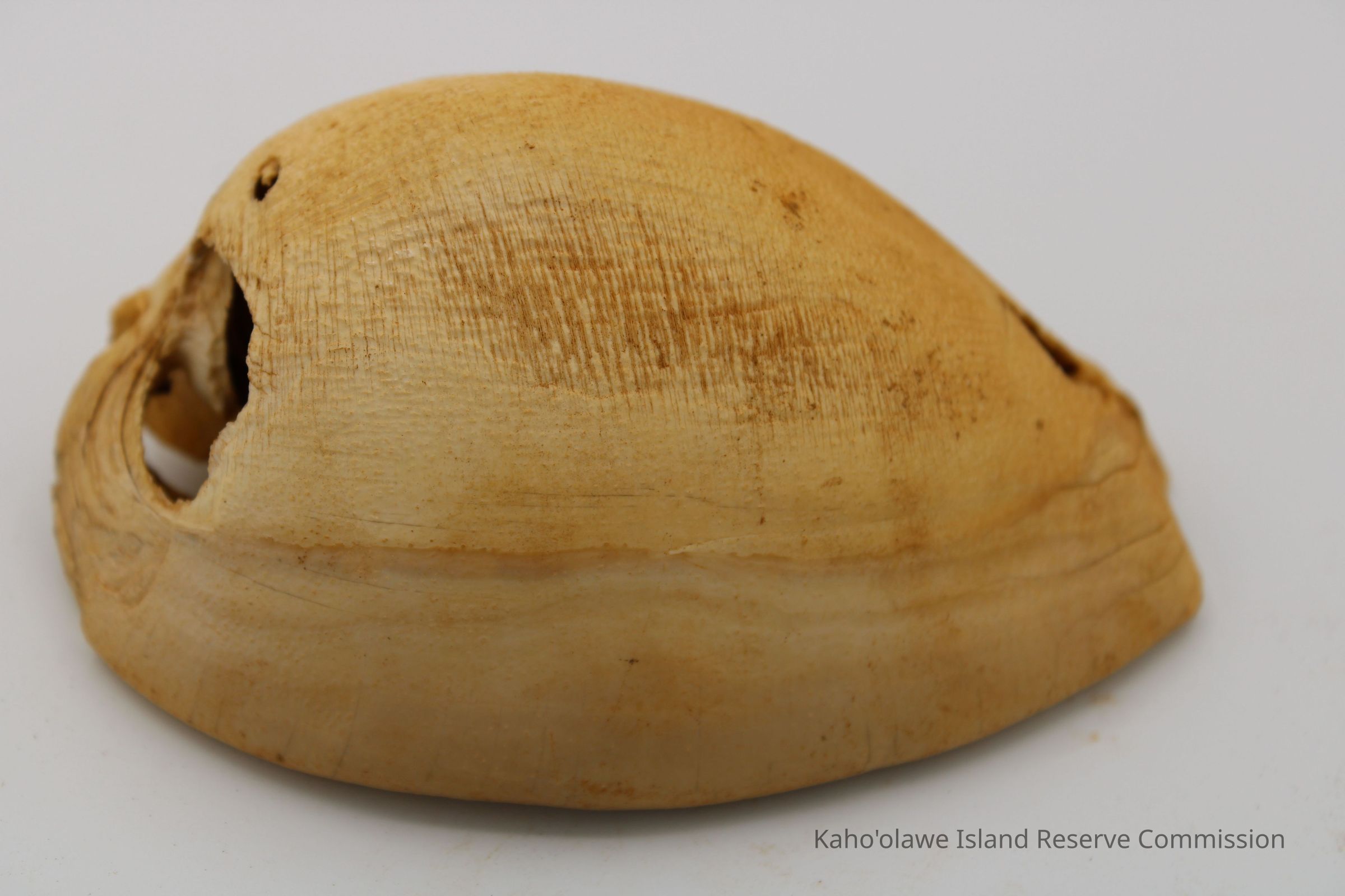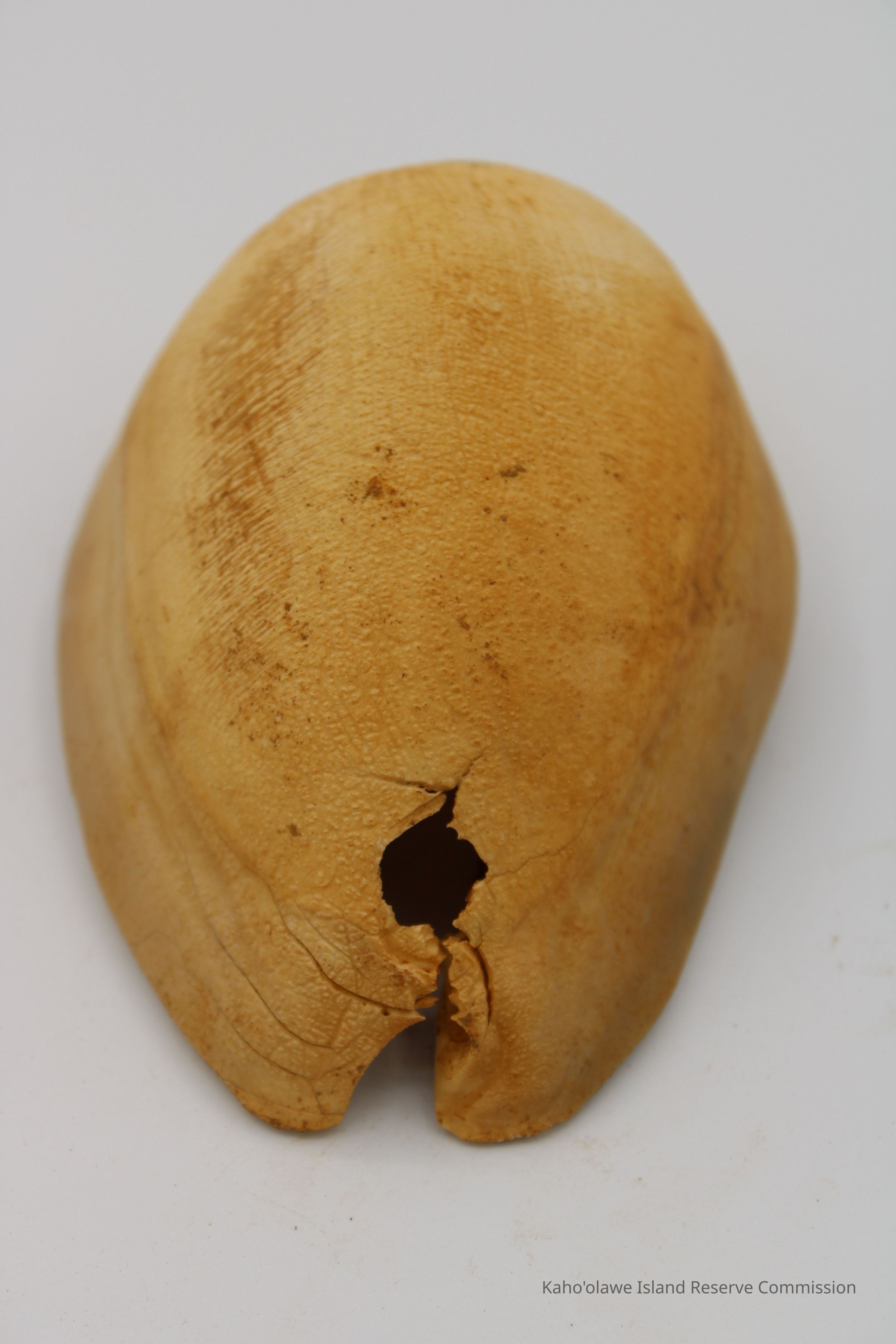 The image shows a cowrie shell lure next to a ruler for scale and an accompanying form detailing sample information and collection date.