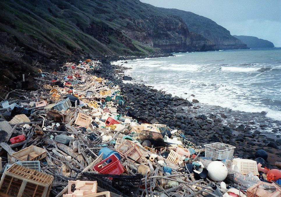 Color photo of marine debris along the north shore of Kanapou Bay.