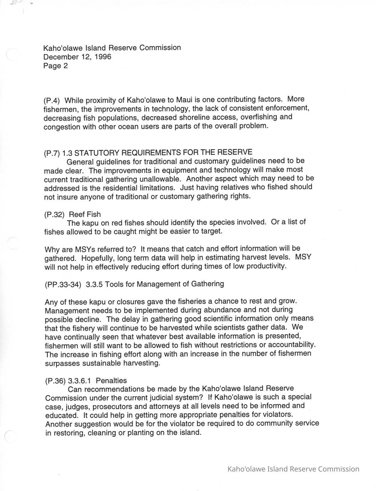 Memorandum from Skippy Hau to the Kaho'olawe Island Reserve CommissionDescription