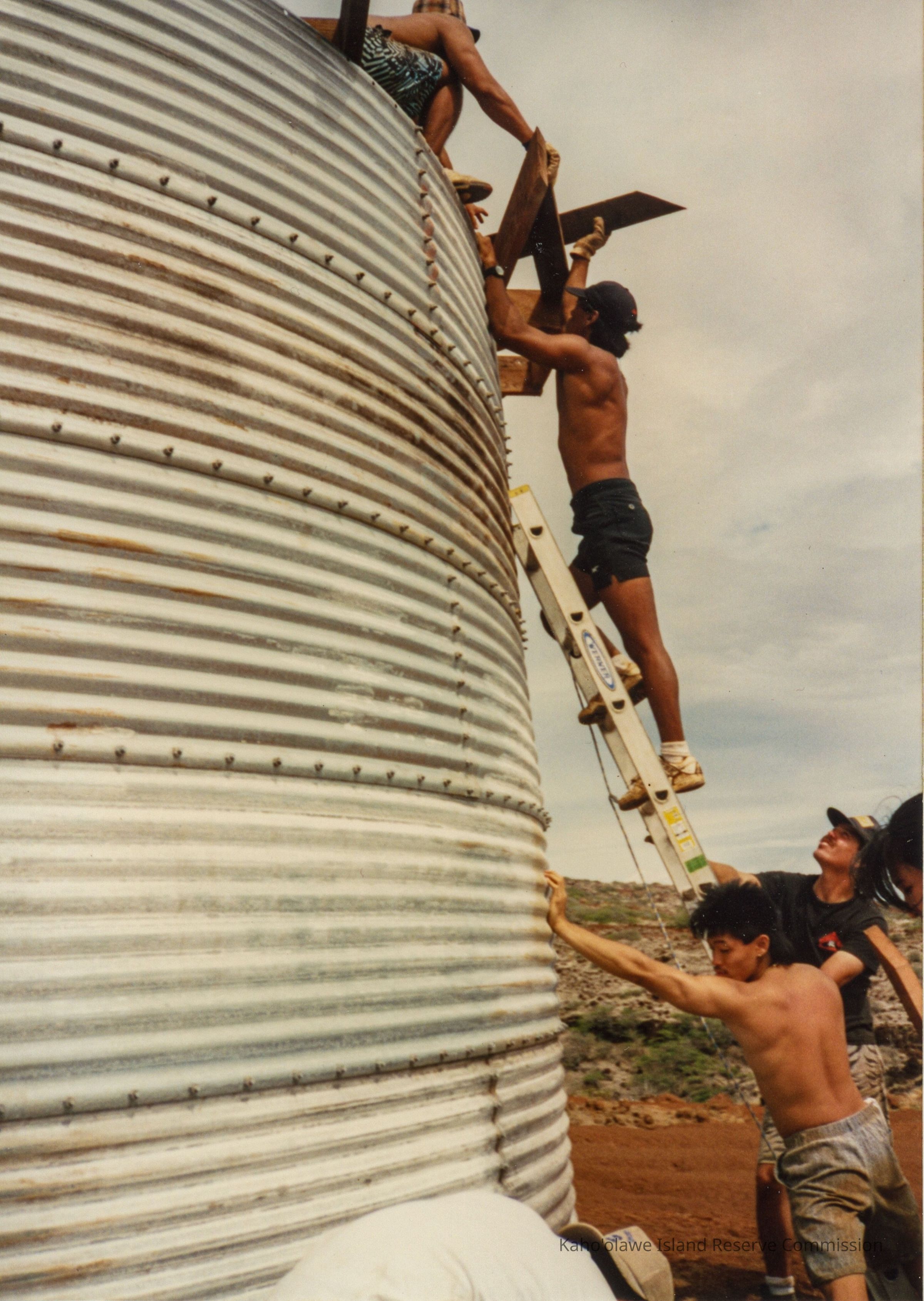 Color photographs, Construction, People, Volunteer work, Water tanks, Conservation & restoration