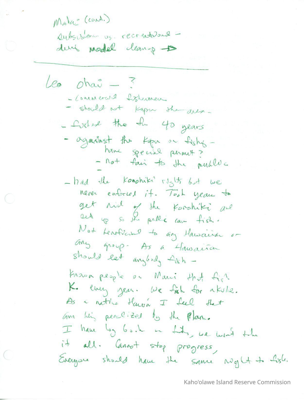MH's (Marc Hodges) notes on comments of Maknani Atwood-11/26/96 O'ahu KOMP (Kahoolawe Ocean Management Plan) Public MeetingCreator