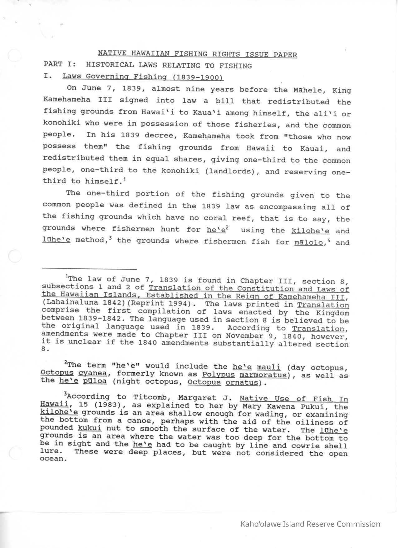 Copy of Native Hawaiian Fishing Rights Issue Paper, final draft.Creator